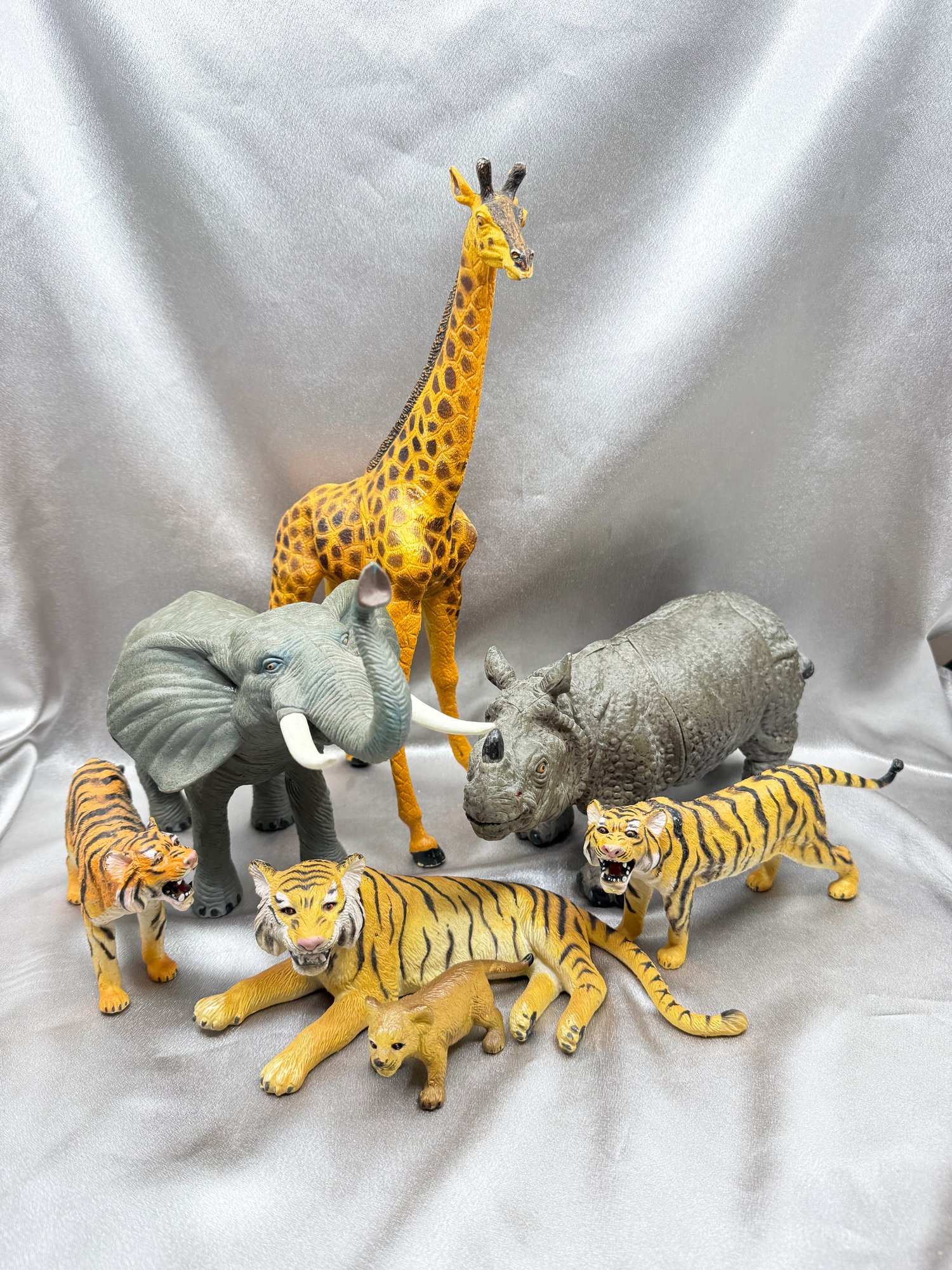 (A-89) VINTAGE SET OF 7 PLASTIC SAFARI WILD ANIMAL MODELS