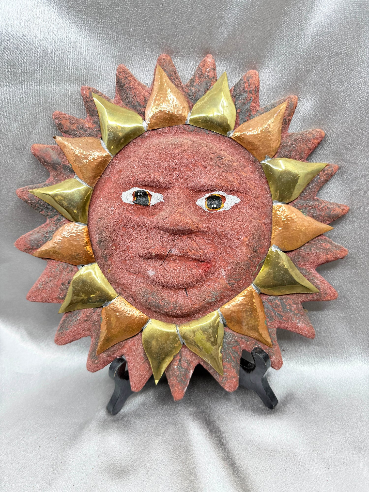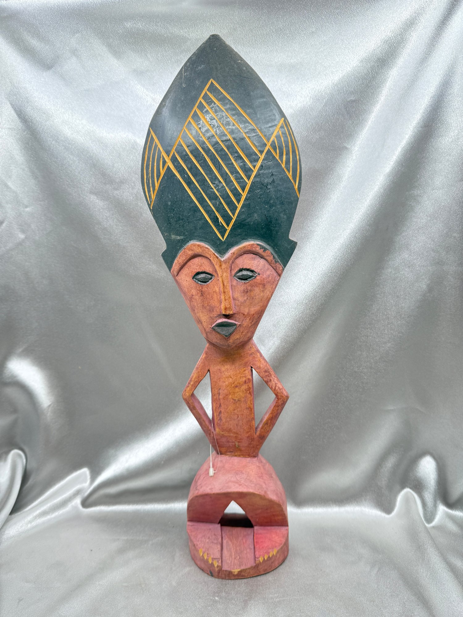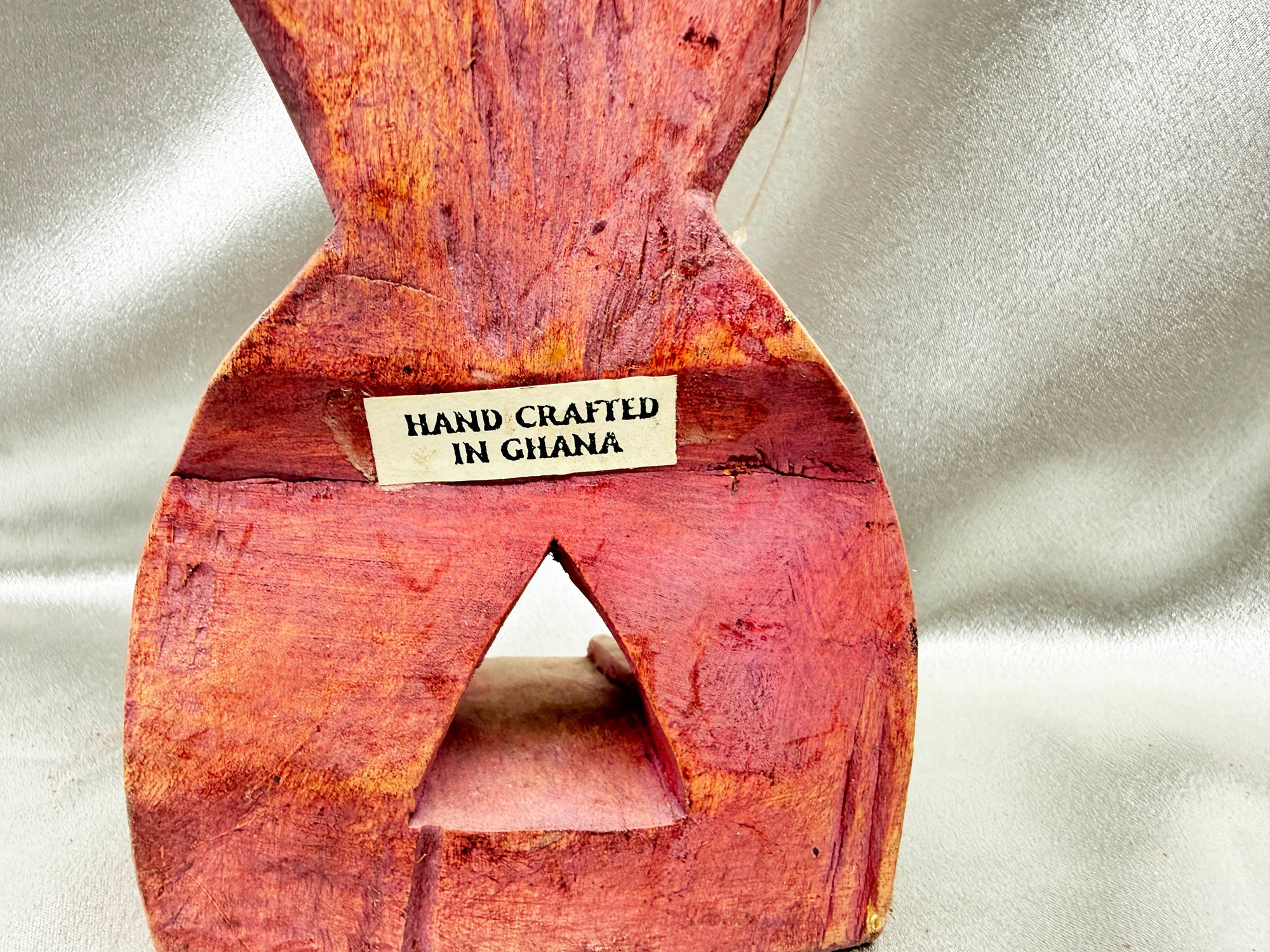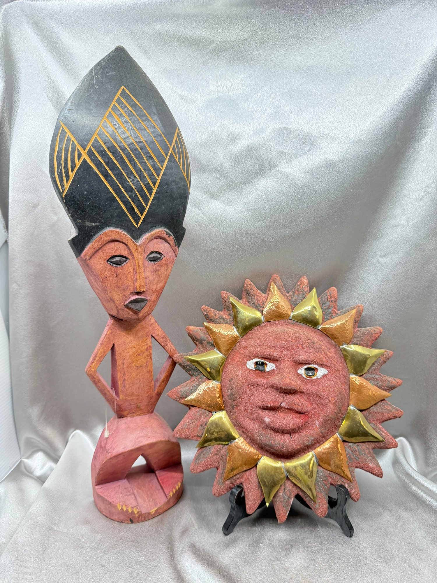 (A-93) VINTAGE PAIR OF HAND CARVED ITEMS- DOLL & WALL PLAQUES-FERTILITY AKUABA AND SUN