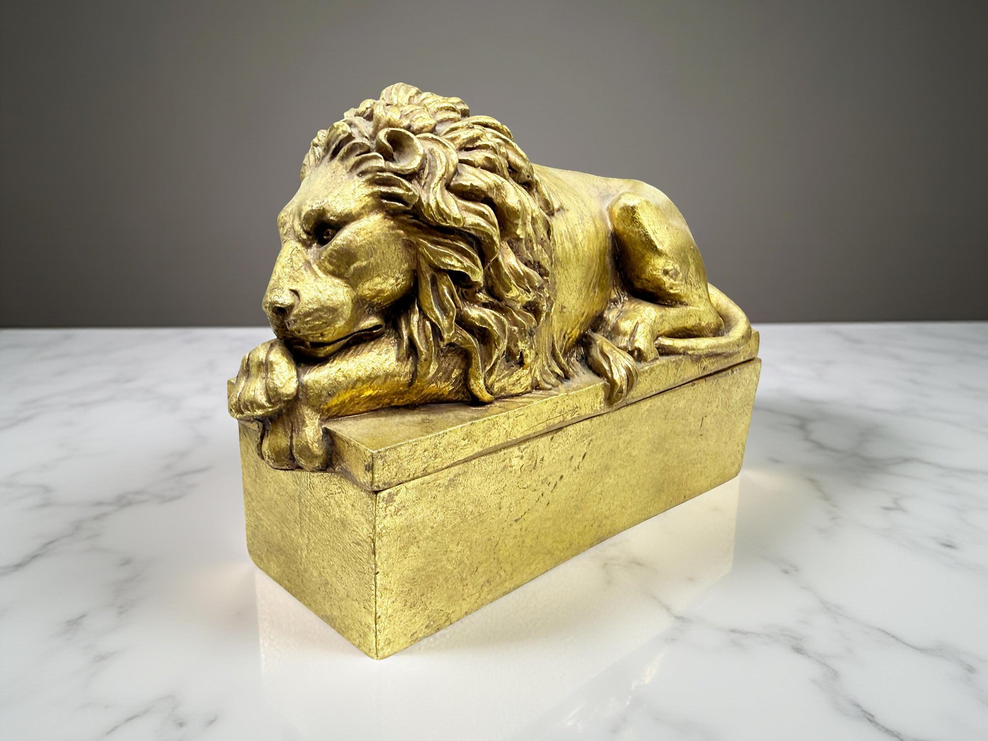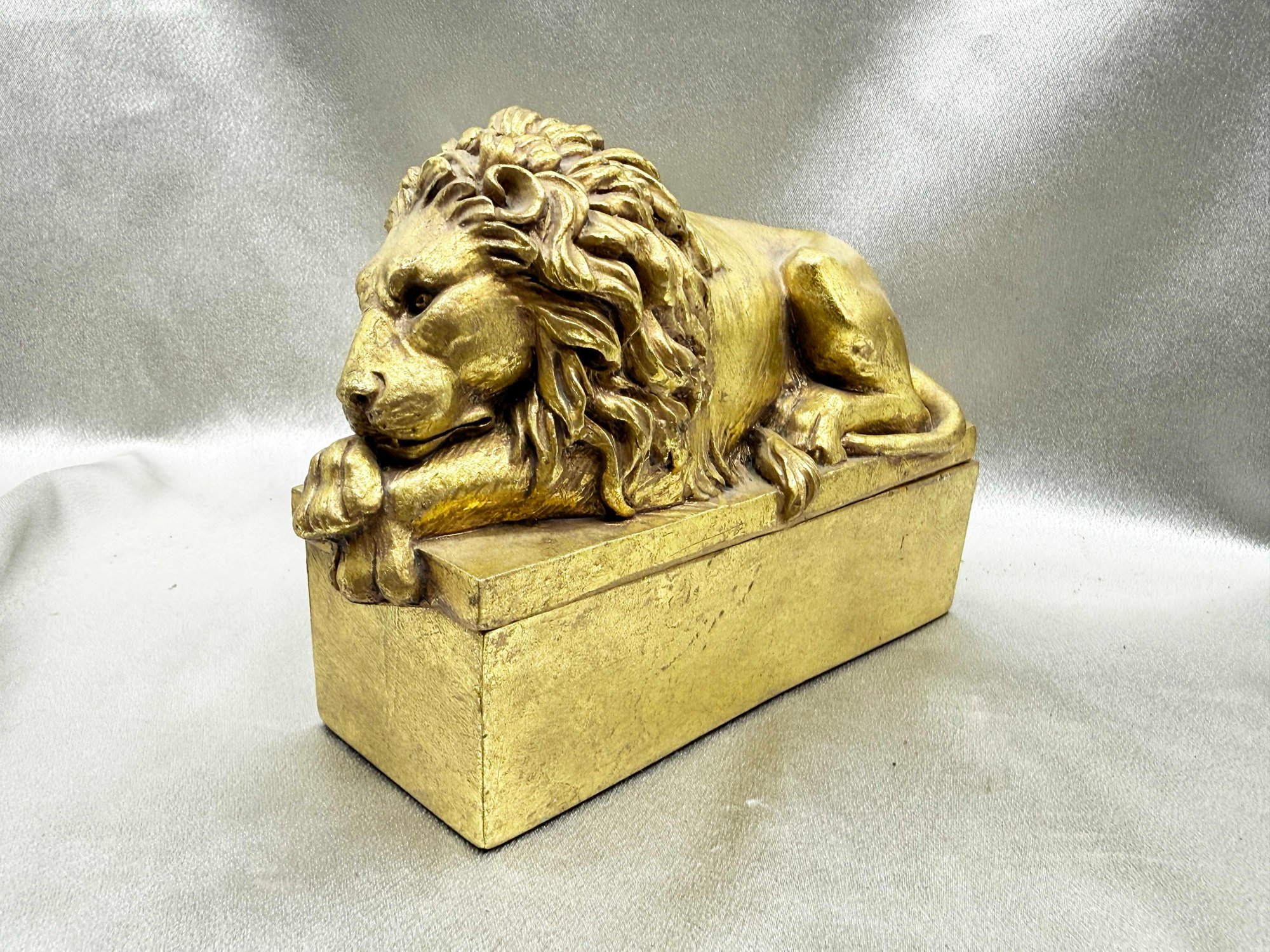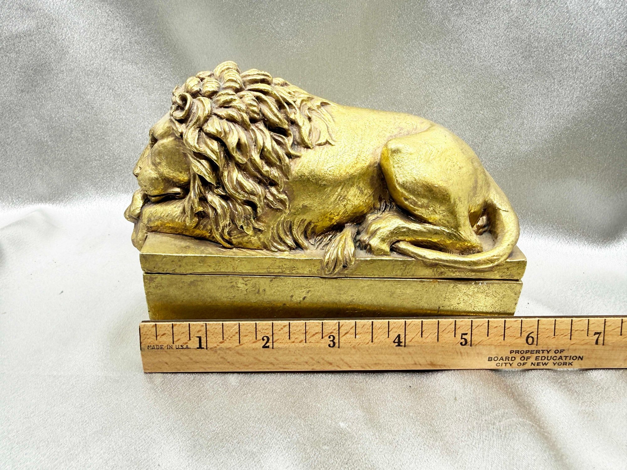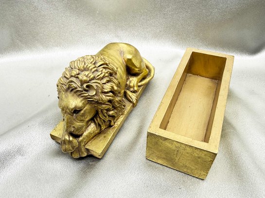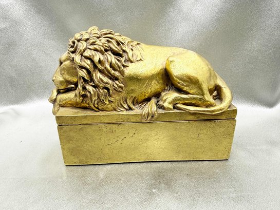 (A-96) VINTAGE GOLD N.Y. PUBLIC. LIBRARY LION TRINKET BOX