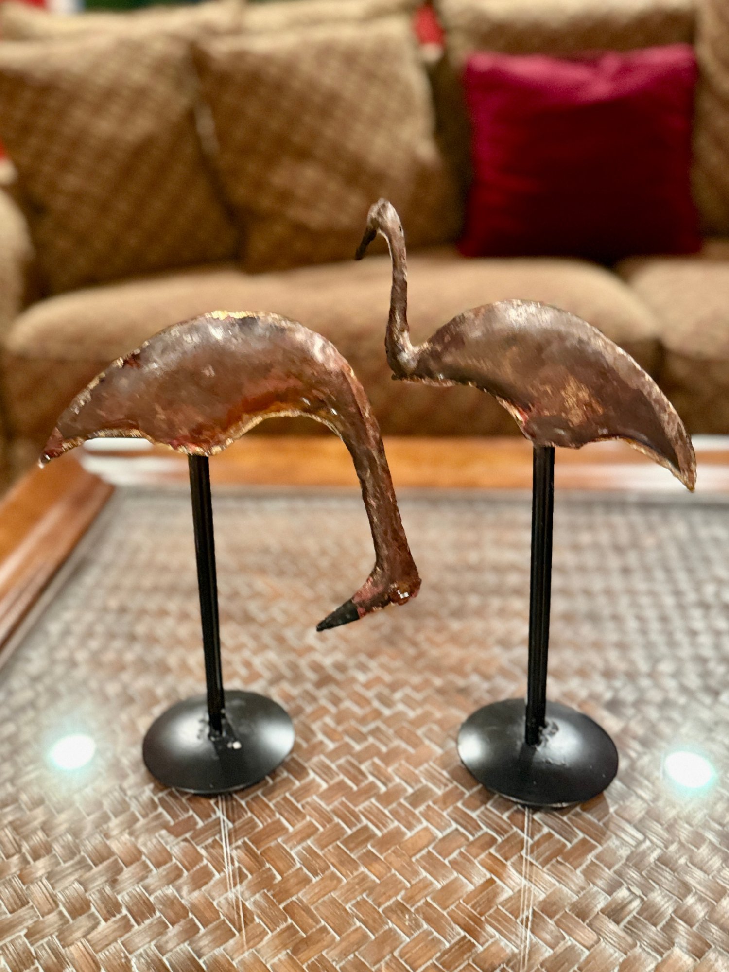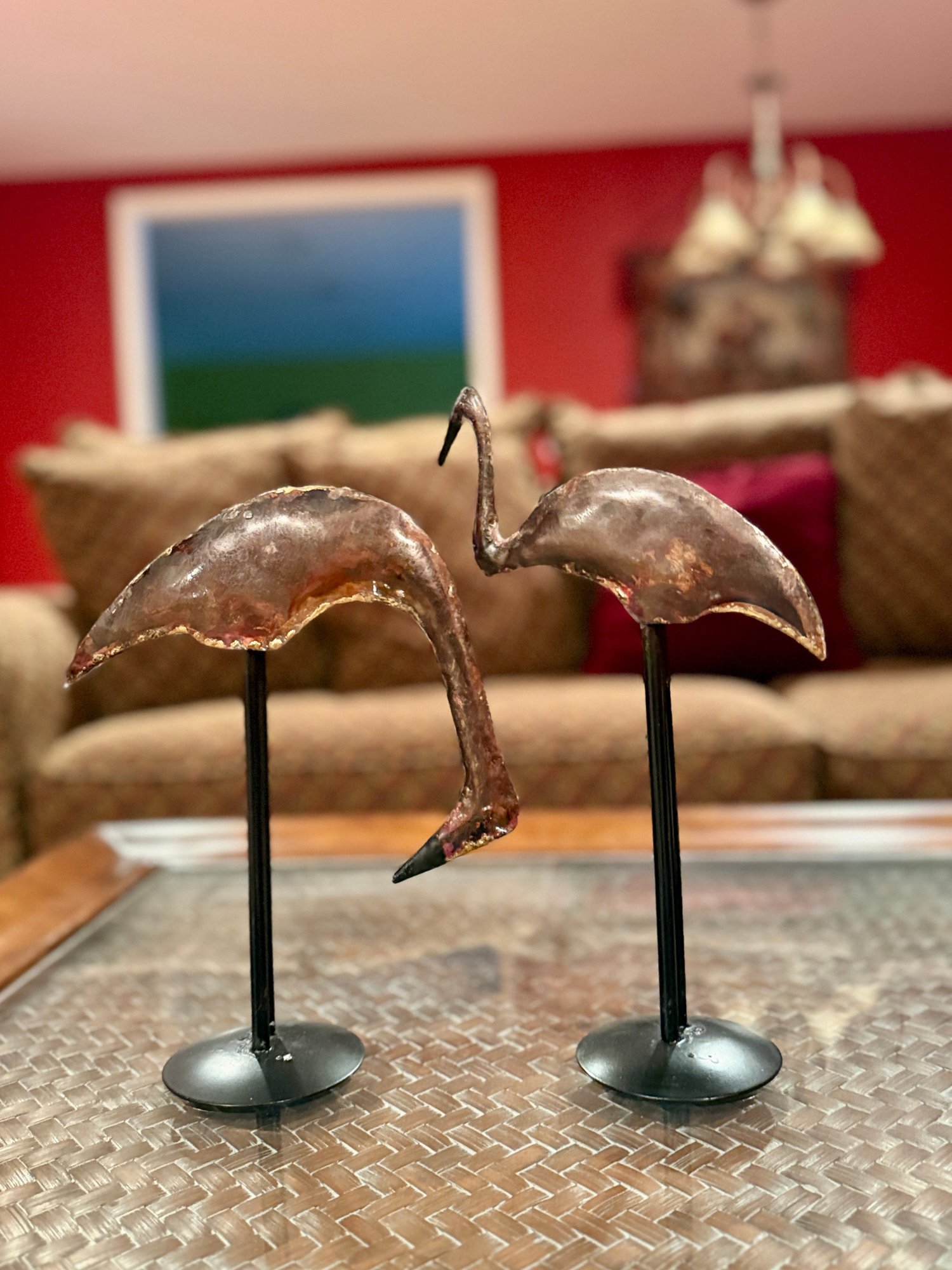 (B-3) PAIR OF DECORATIVE METAL BIRDS ON STANDS - 11"