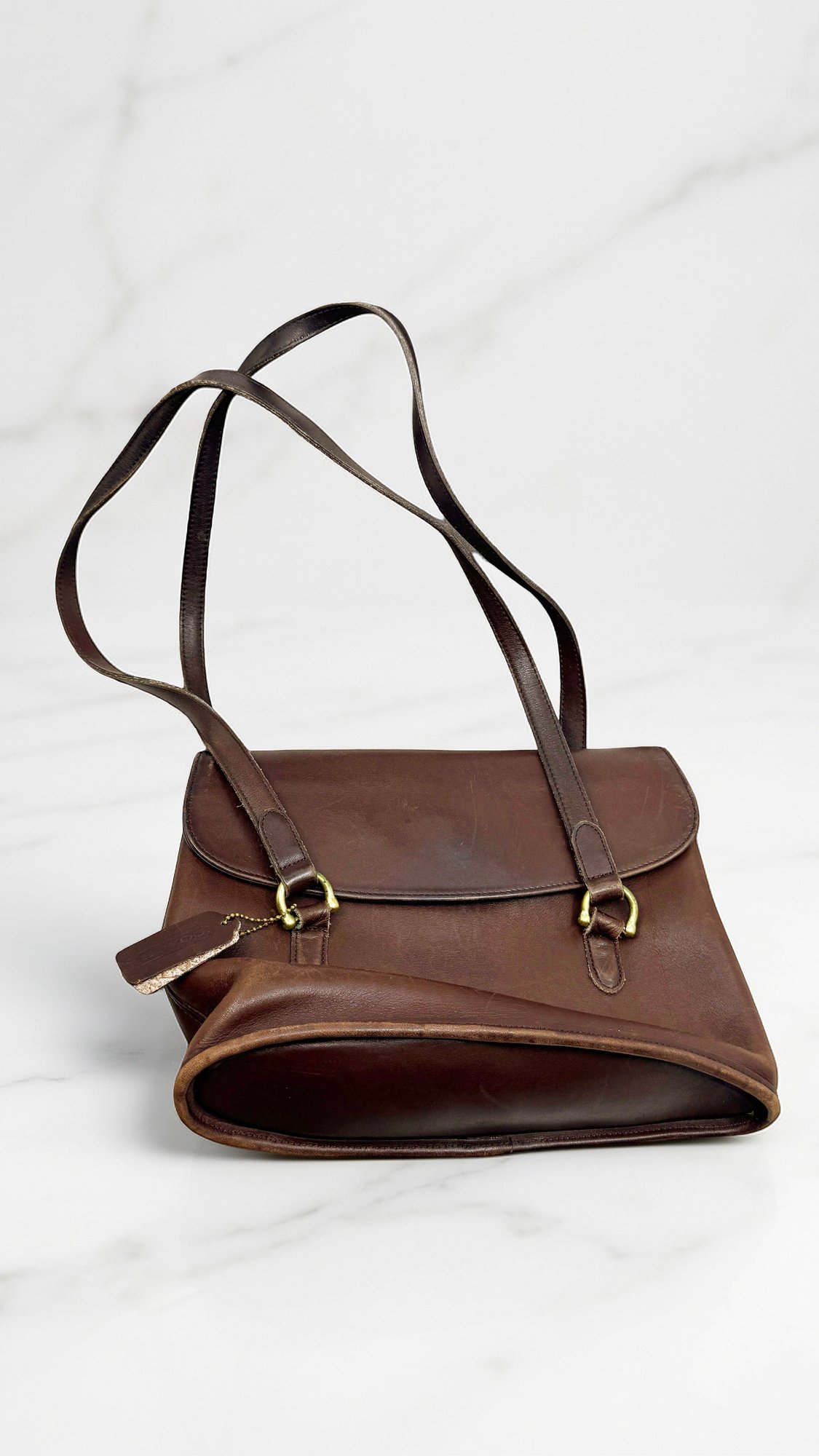 (PB-3) PRE OWNED COACH 9808 BROWN EQUESTRIAN FLAP SHOPPER BAG /BROWN/TOFFEE