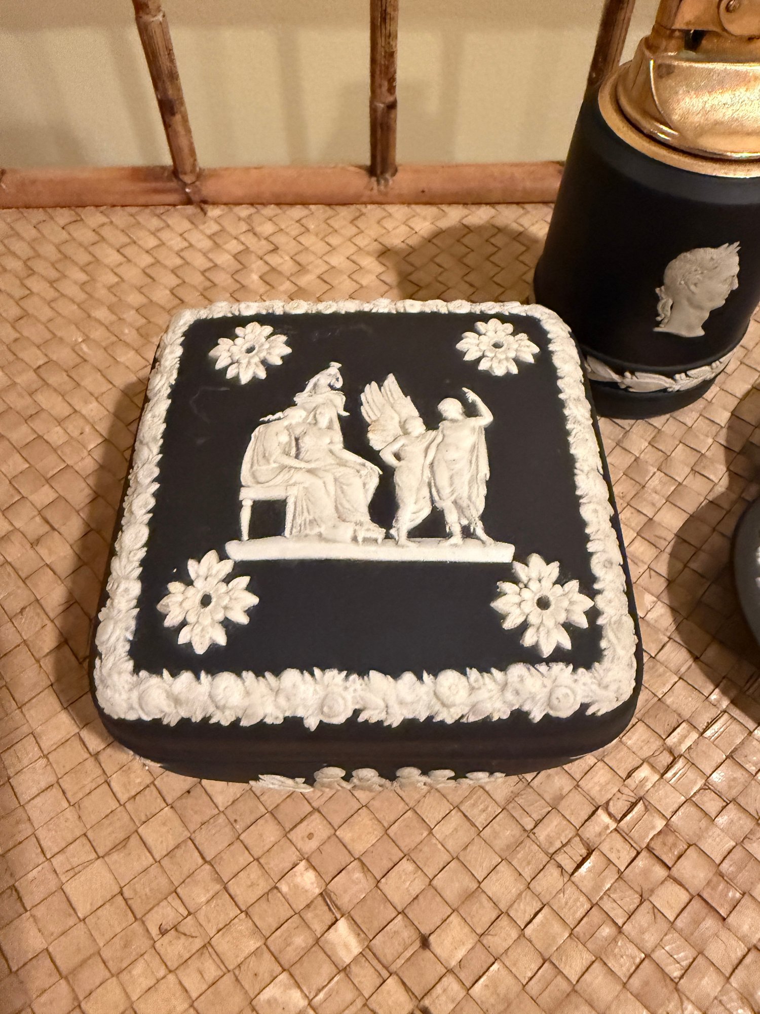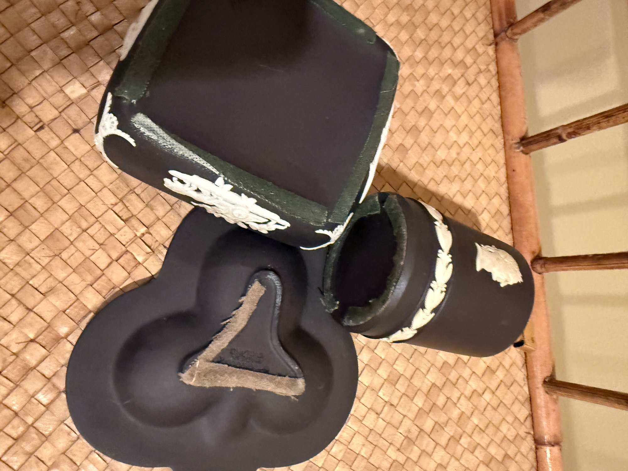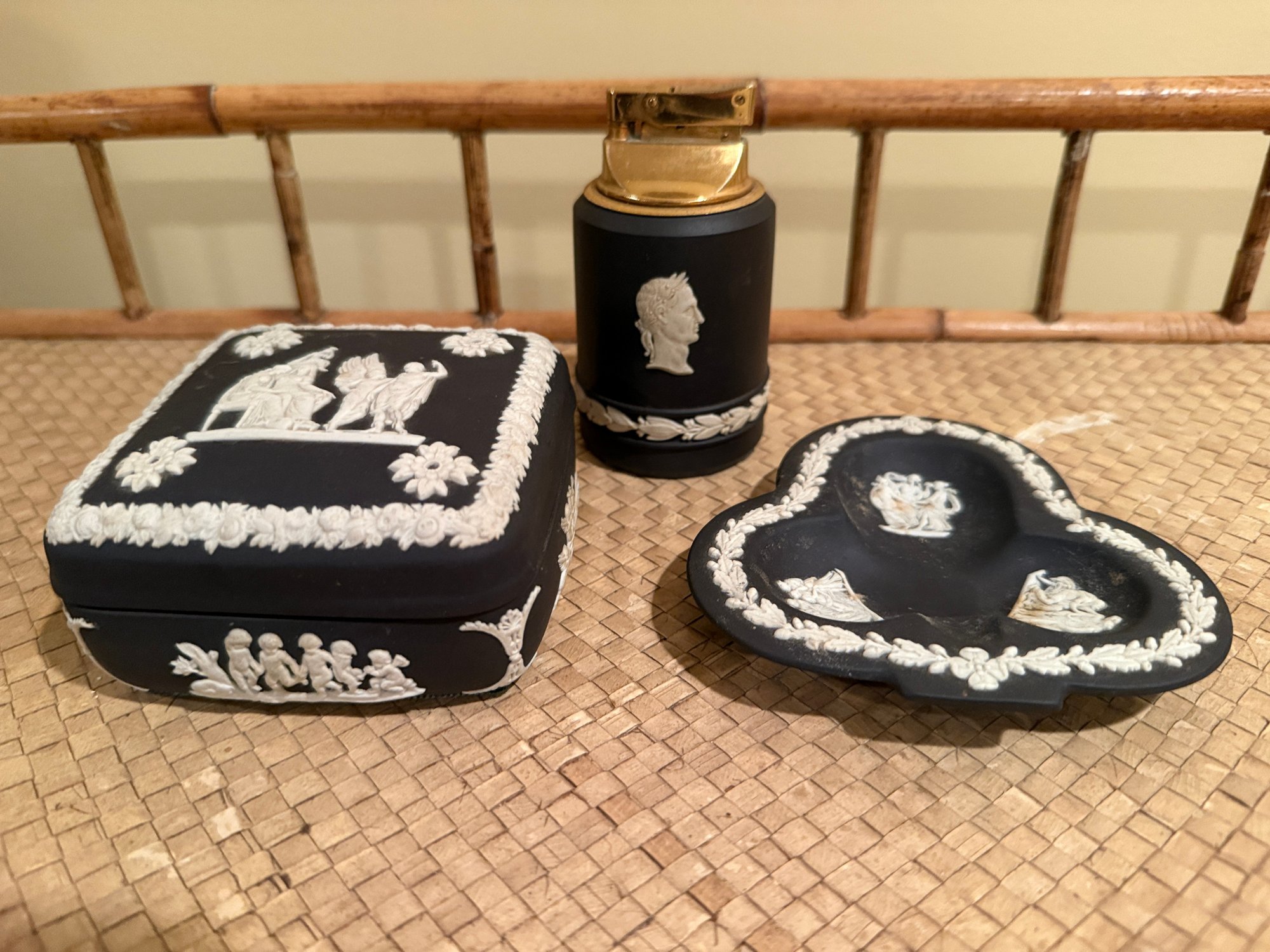 (BA-20) THREE VINTAGE PIECES OF BLACK WEDGWOOD - 4"-5"