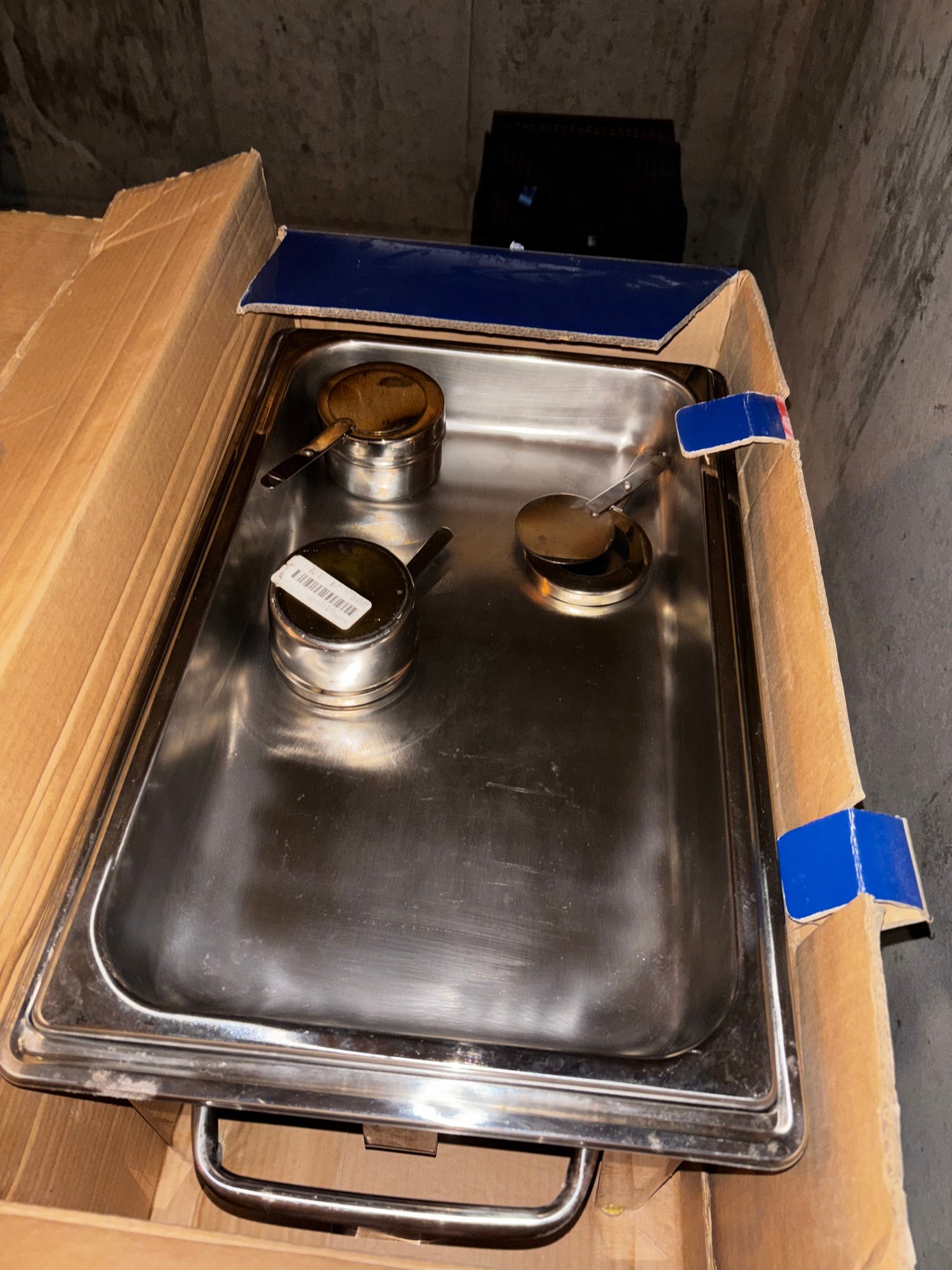 (BA) CULINARY ESSENTIALS STAINLESS STEEL, 9 QUART CHAFING DISH GENTLY USED IN BOX