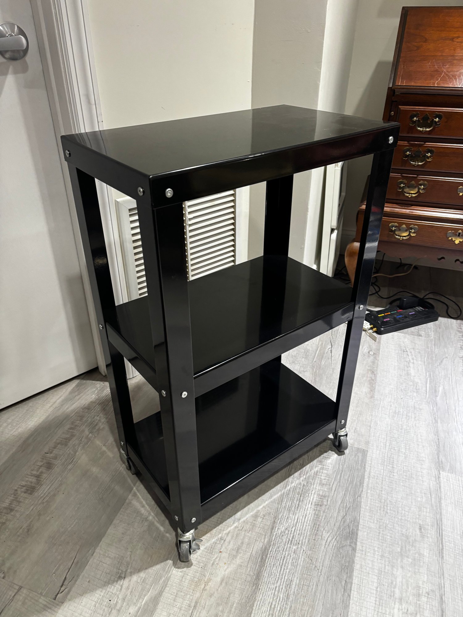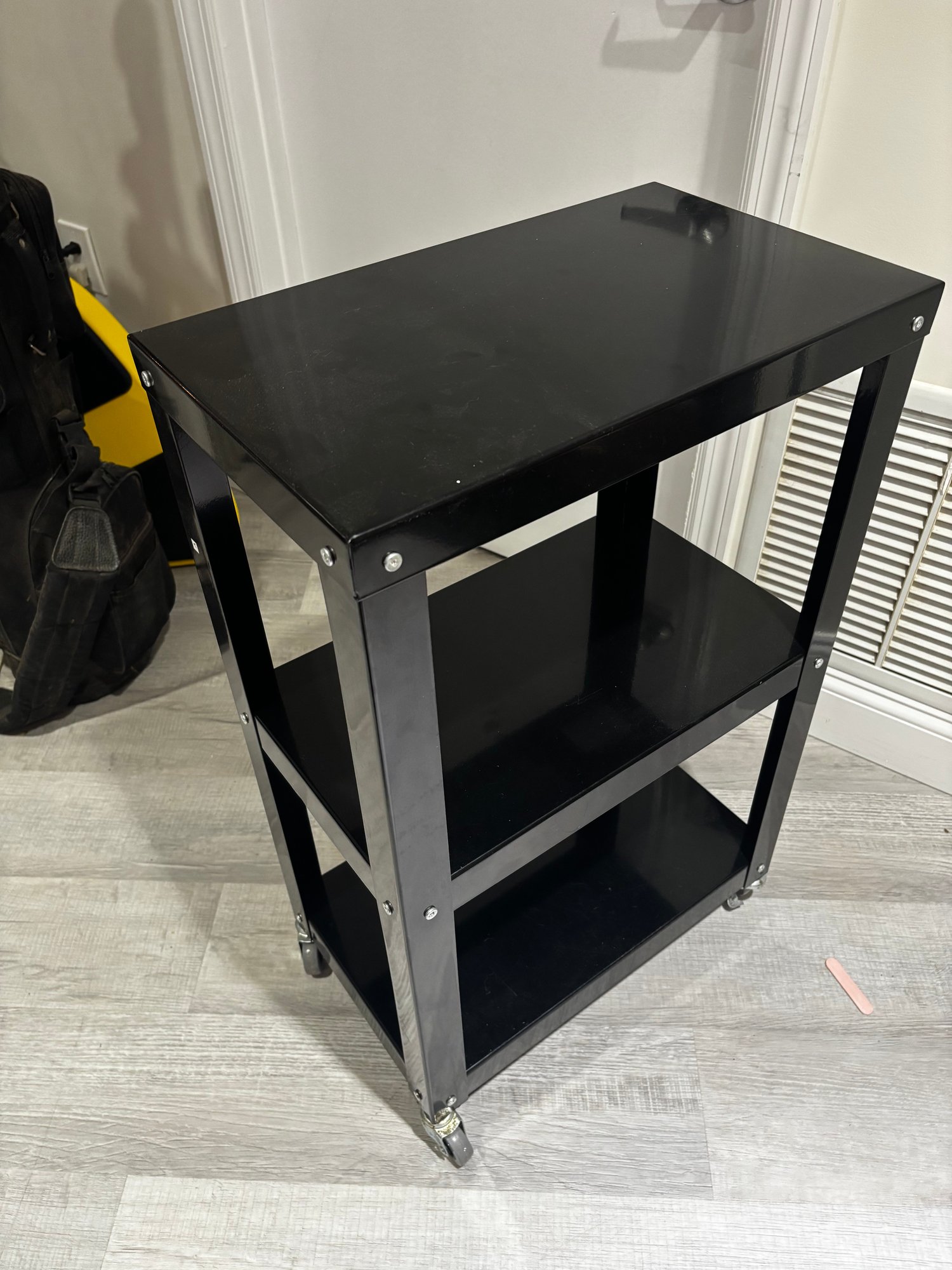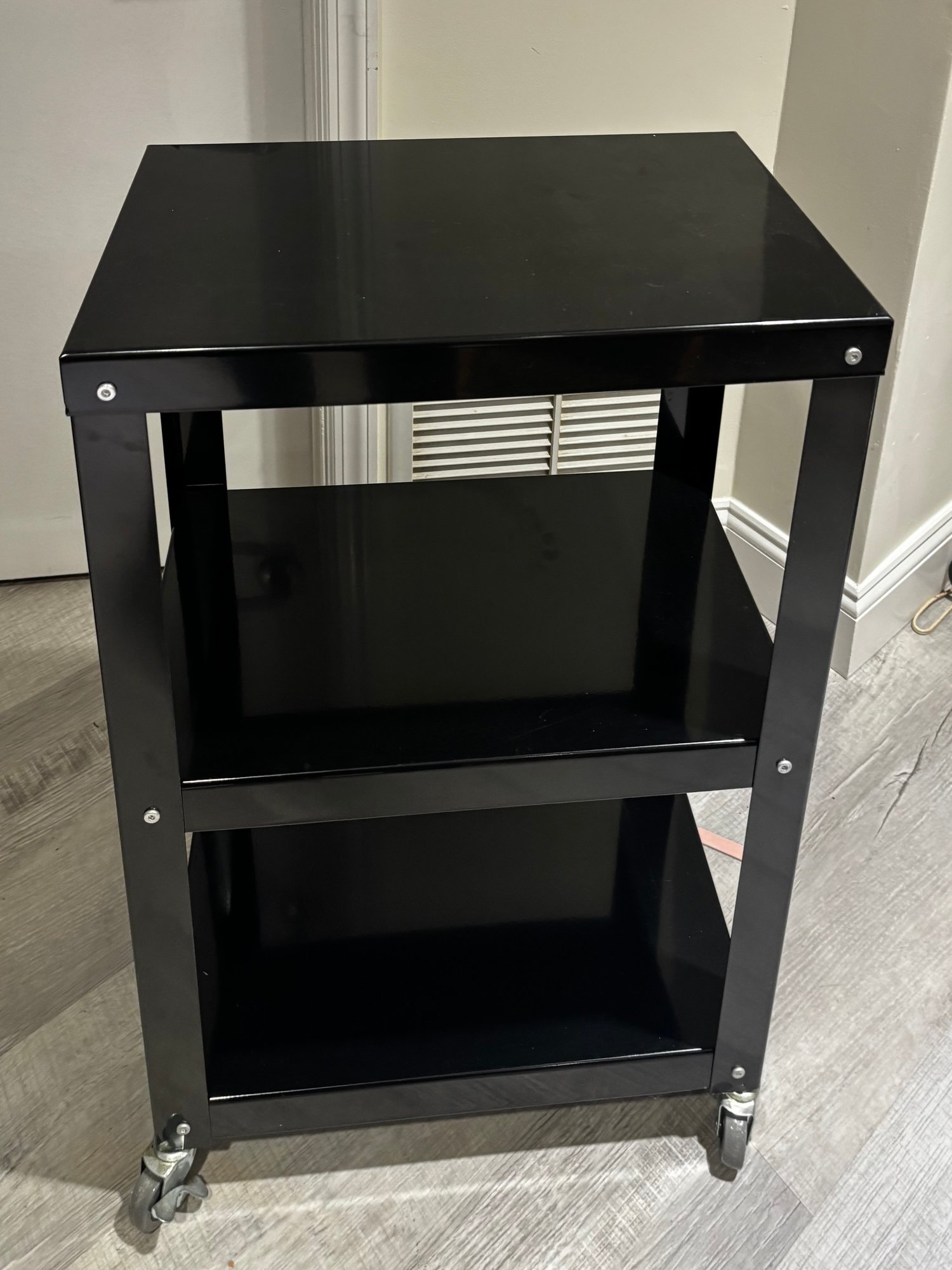(Base-19) ROLLING THREE SHELF METAL UTILITY SHELF - 32" BY 20" BY 12"