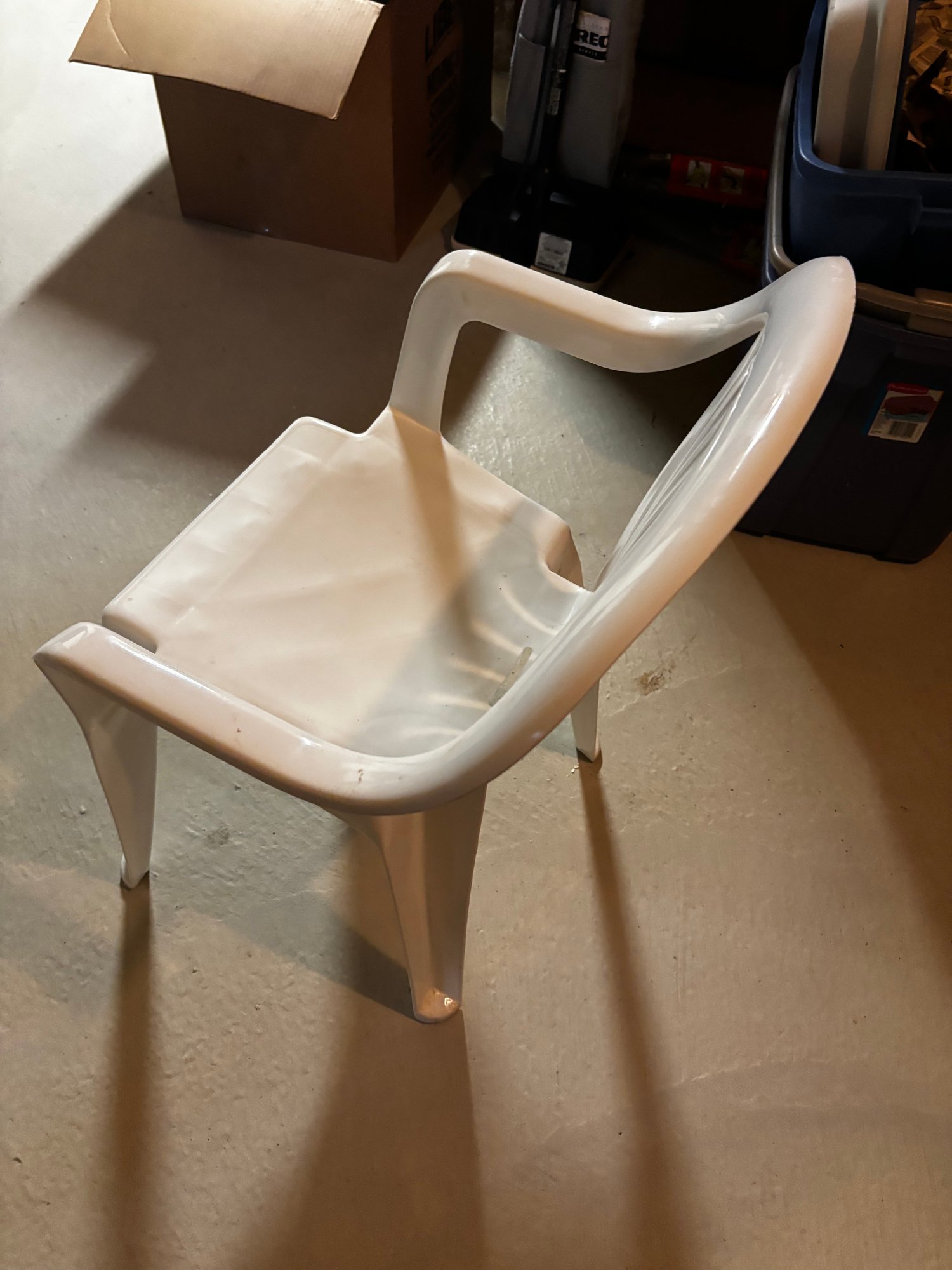 (BASE) SET OF 14 WHITE PLASTIC STACKABLE ARMCHAIRS