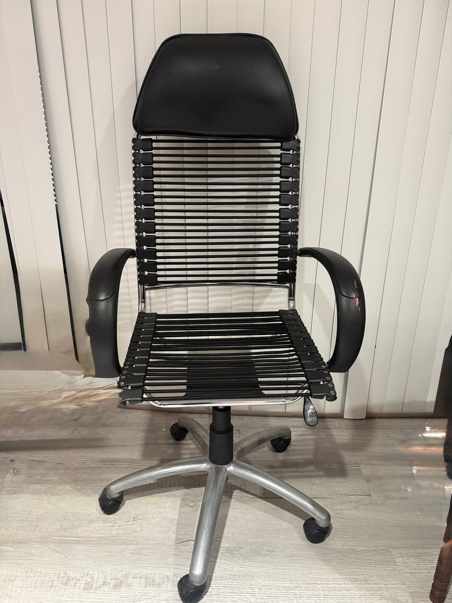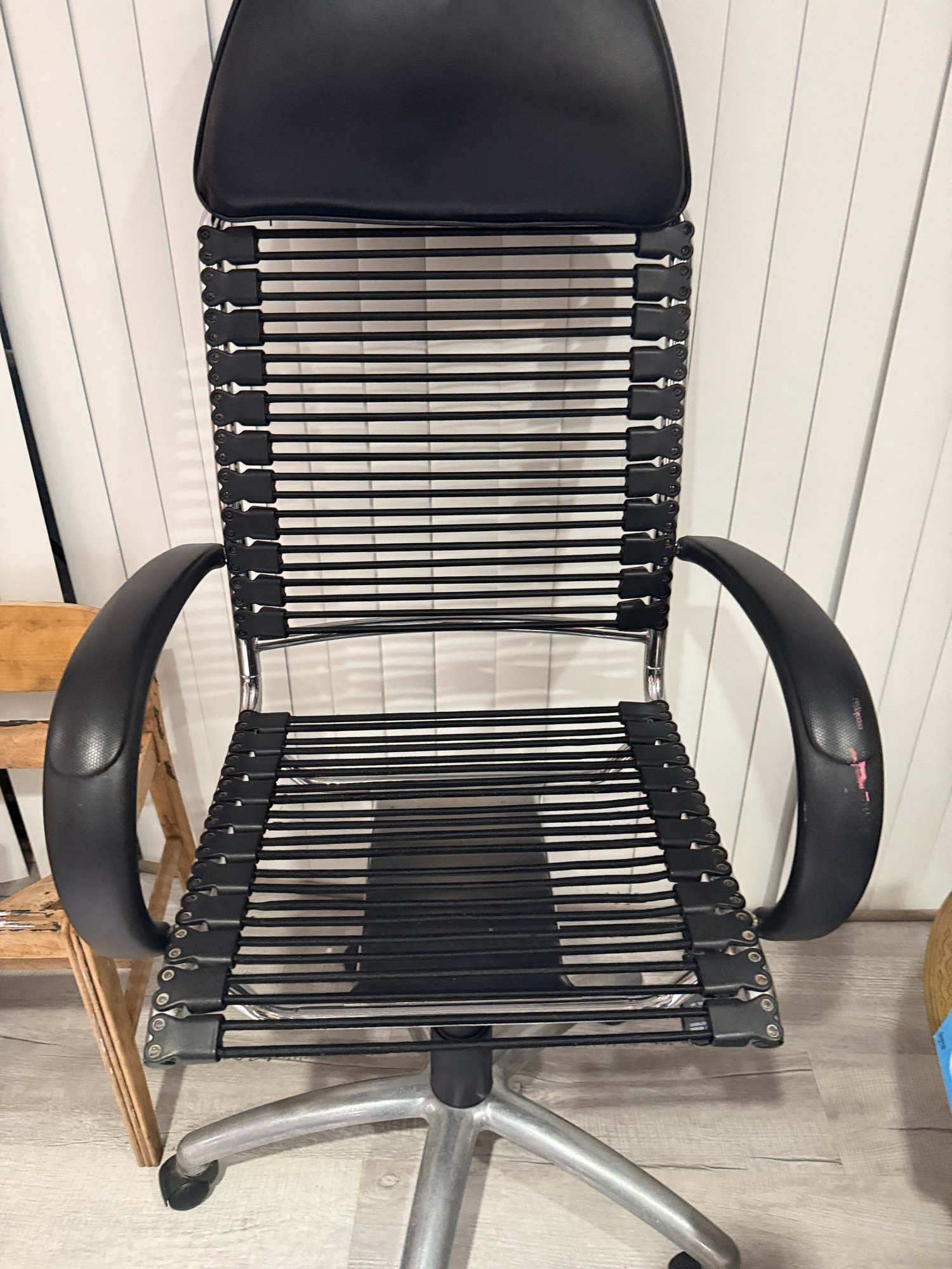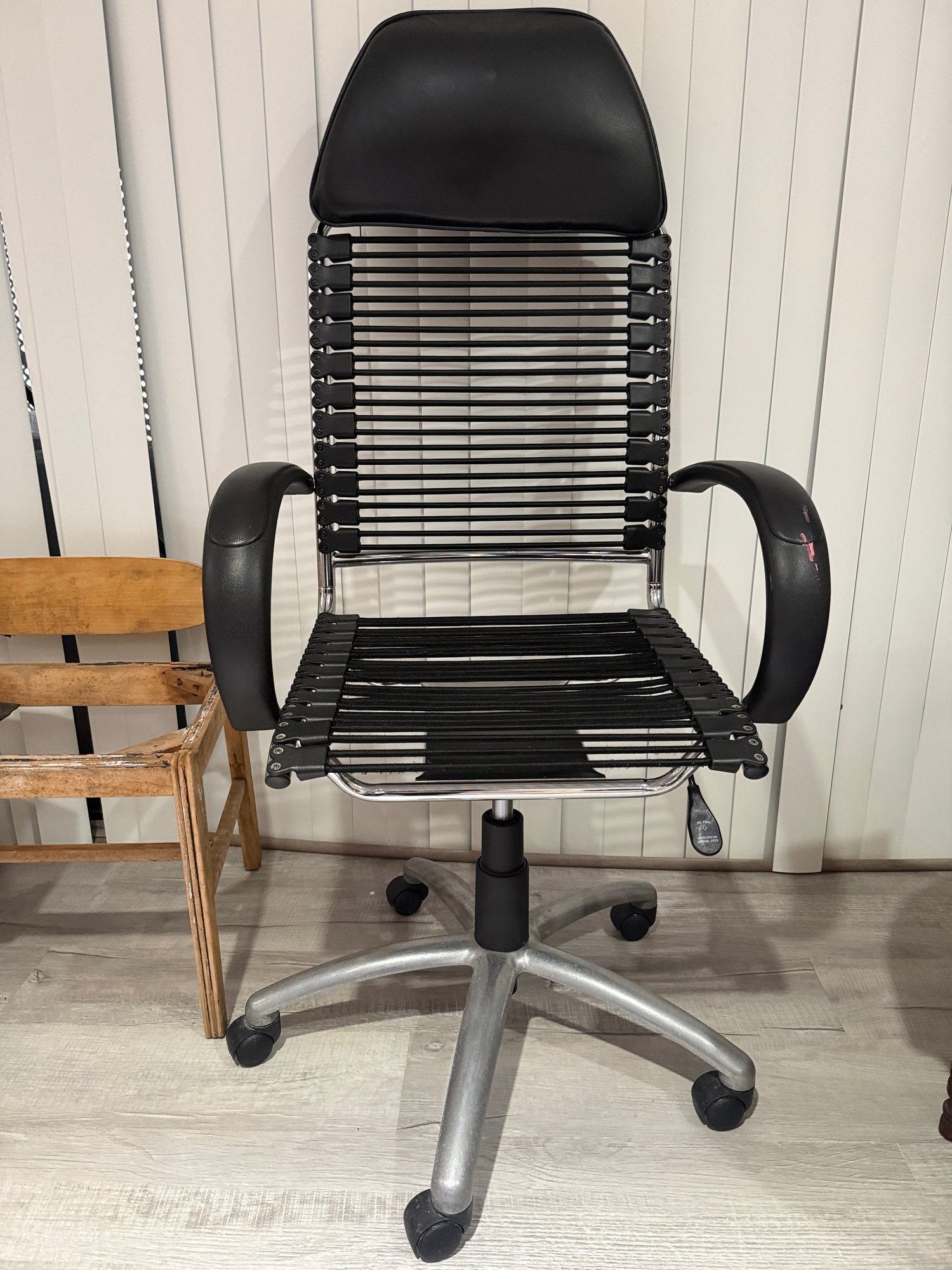 (BaseB-12) ROLLING BLACK STRAP OFFICE CHAIR - 26" BY 22" BY 52" BACK