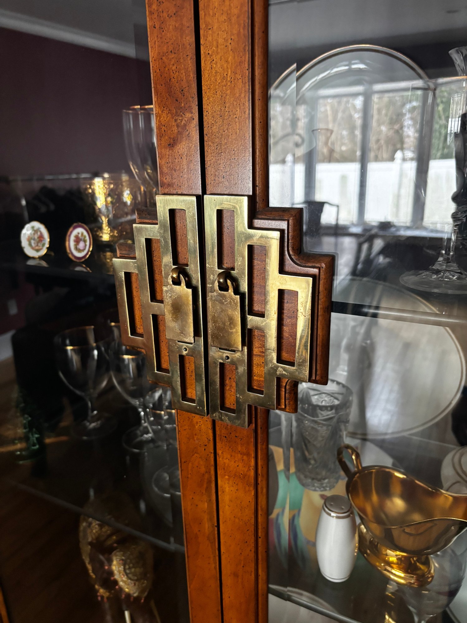 (DR) LARGE TWO TONED ASIAN STYLE CHINA CABINET- 83" BY 72" BY 17"