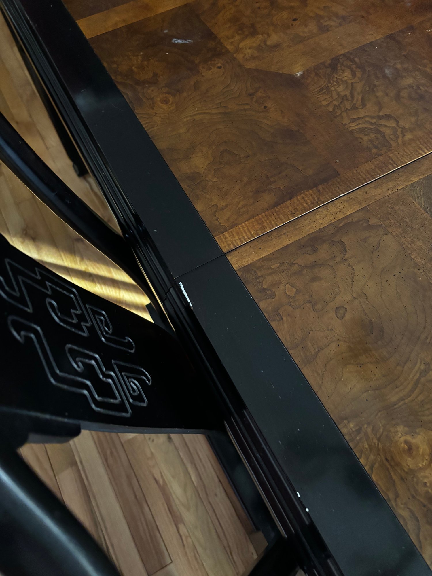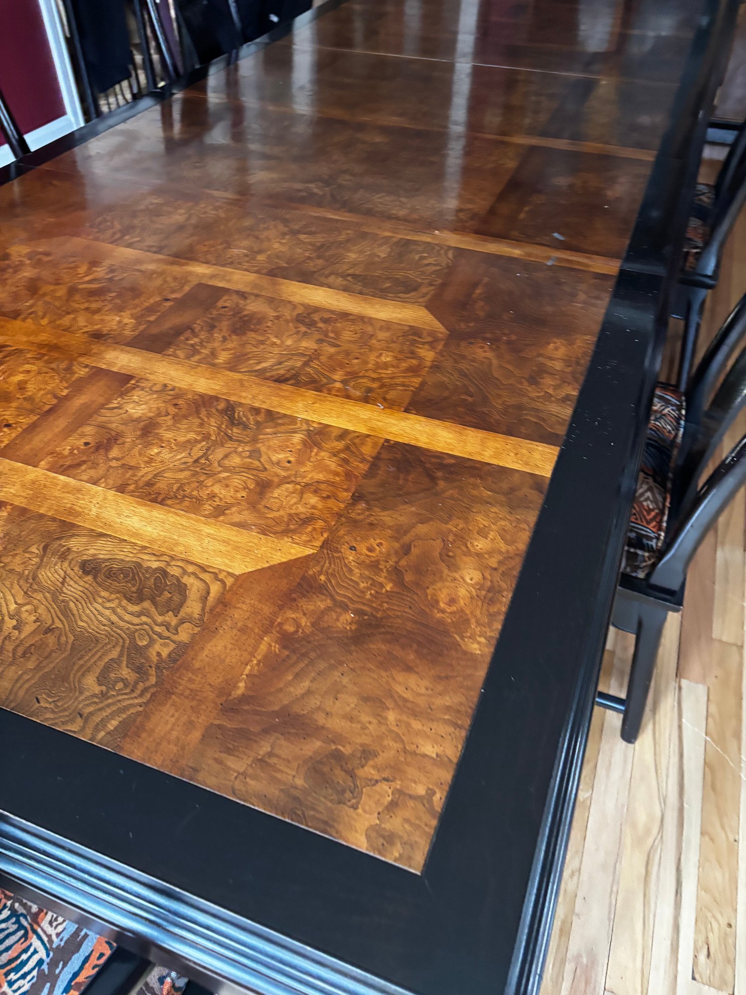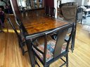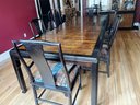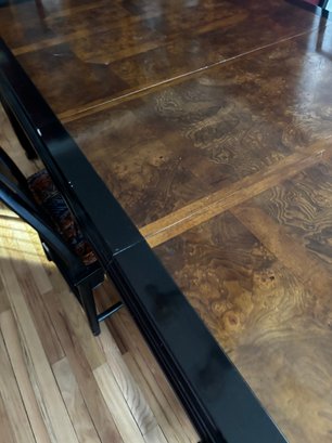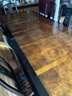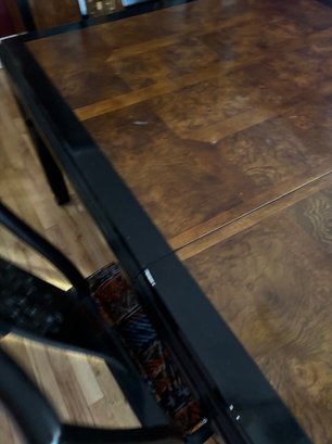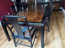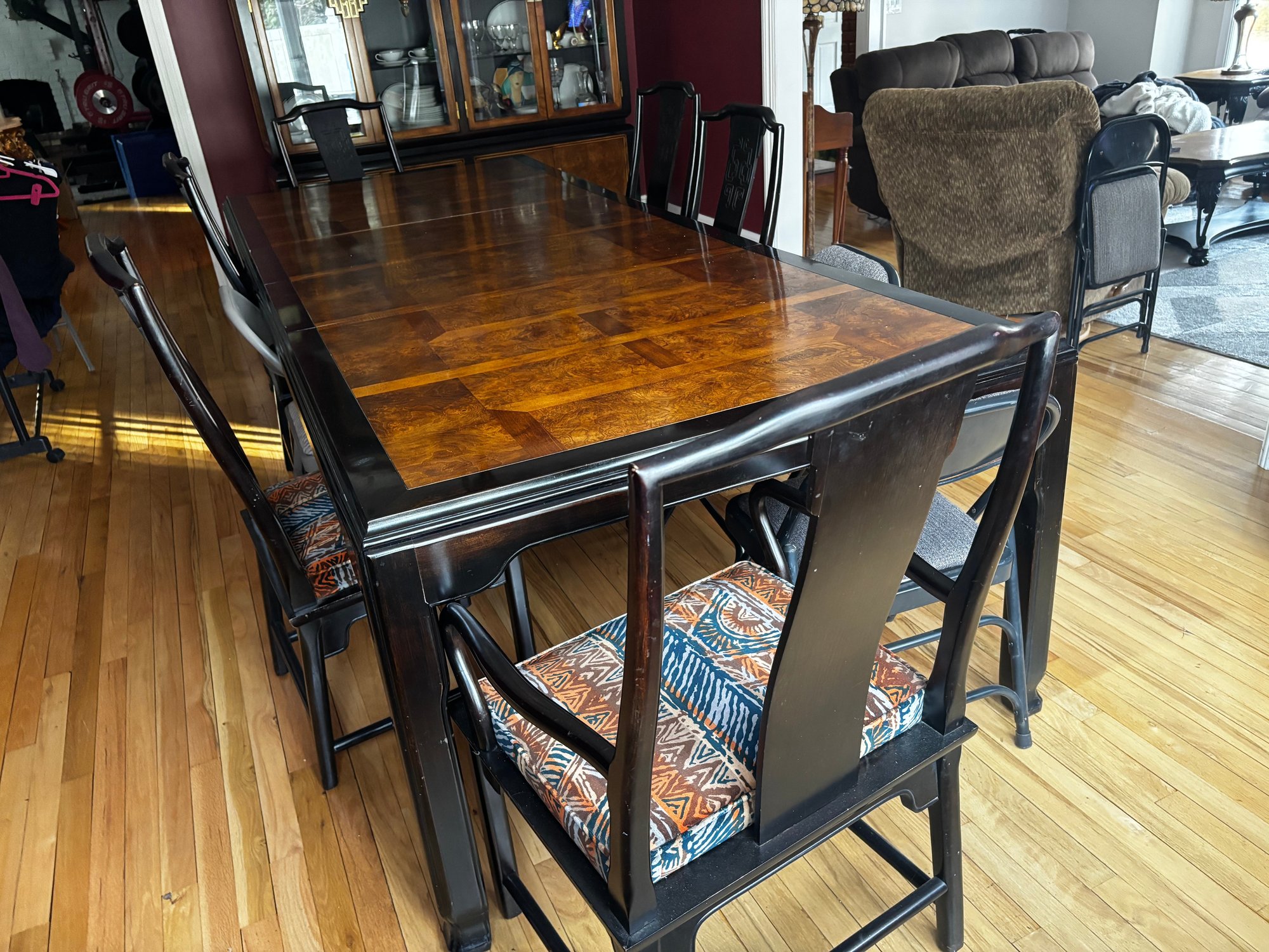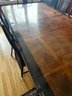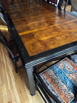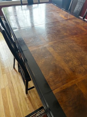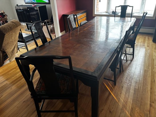 (DR) LARGE TWO TONED ASIAN STYLE DINING TABLE & SIX CHAIRS - 76" BY 46" BY 30" INCLUDING 2 18" LEAVES & PADS