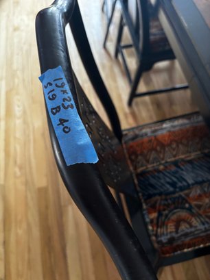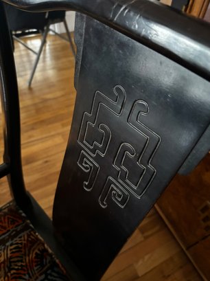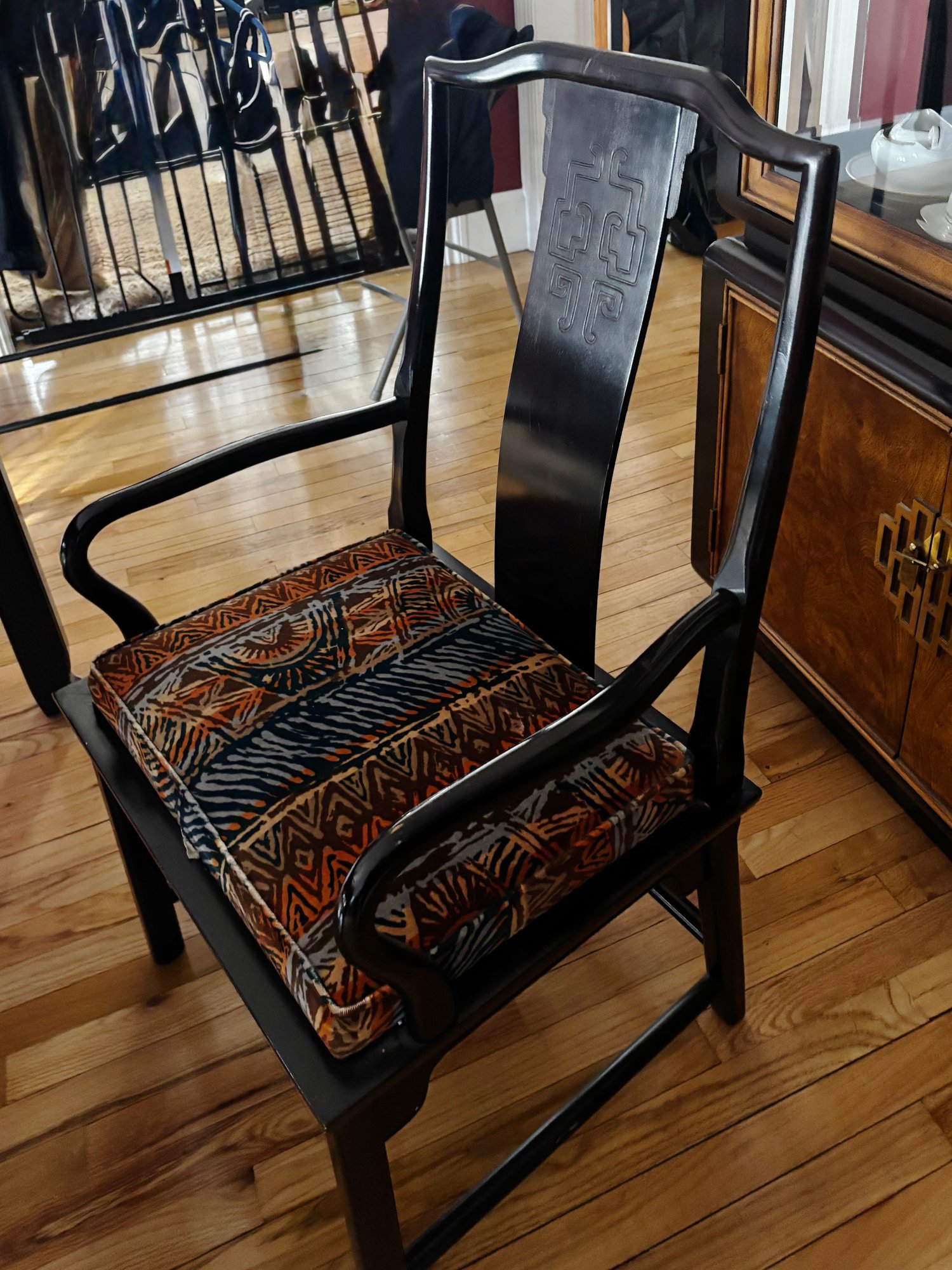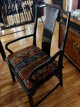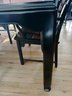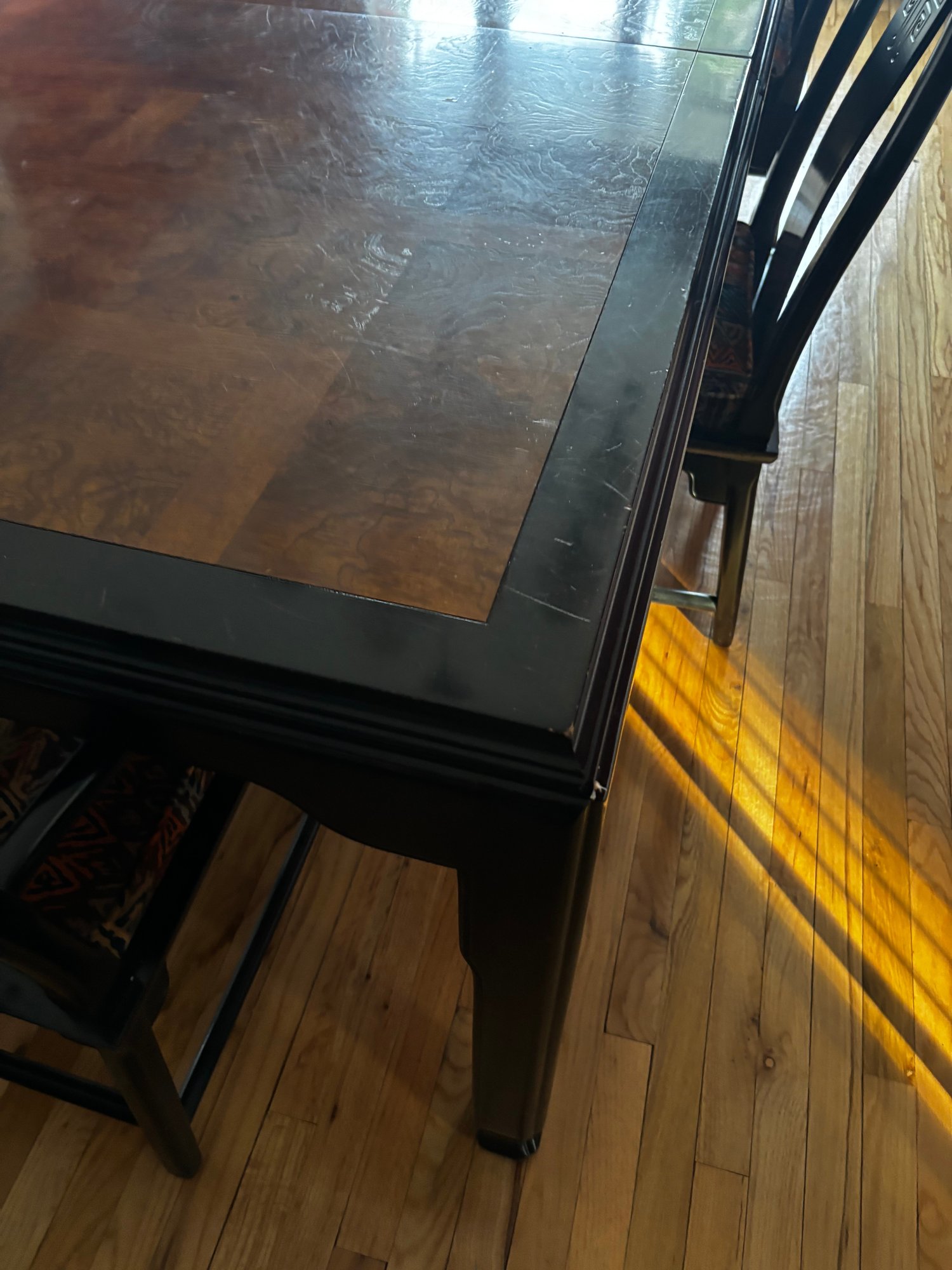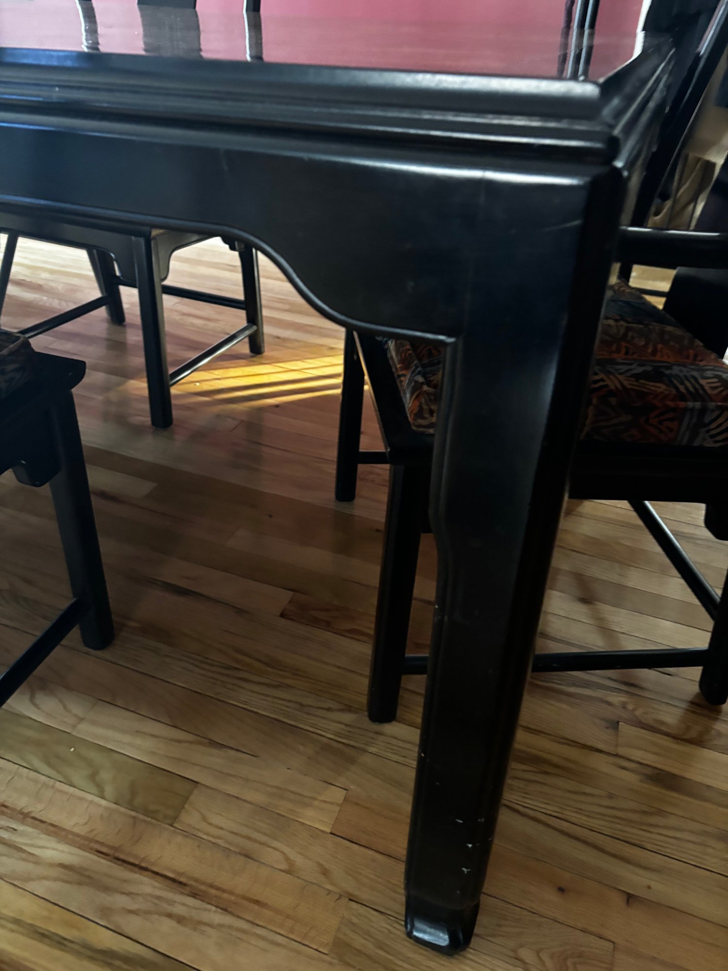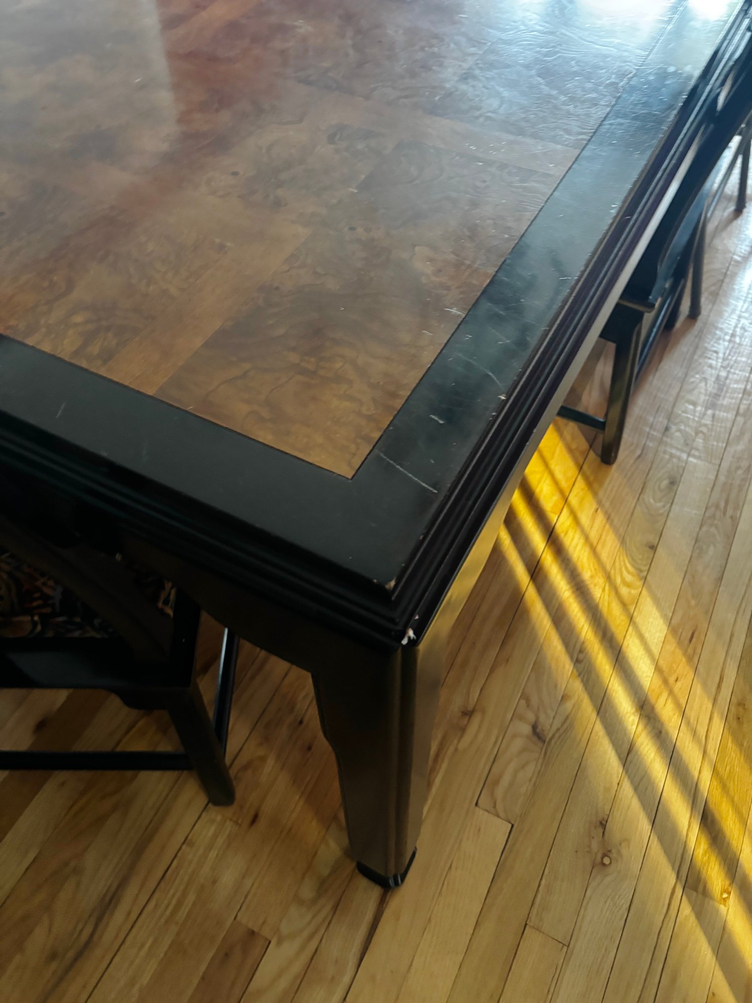 (DR) LARGE TWO TONED ASIAN STYLE DINING TABLE & SIX CHAIRS - 76" BY 46" BY 30" INCLUDING 2 18" LEAVES & PADS