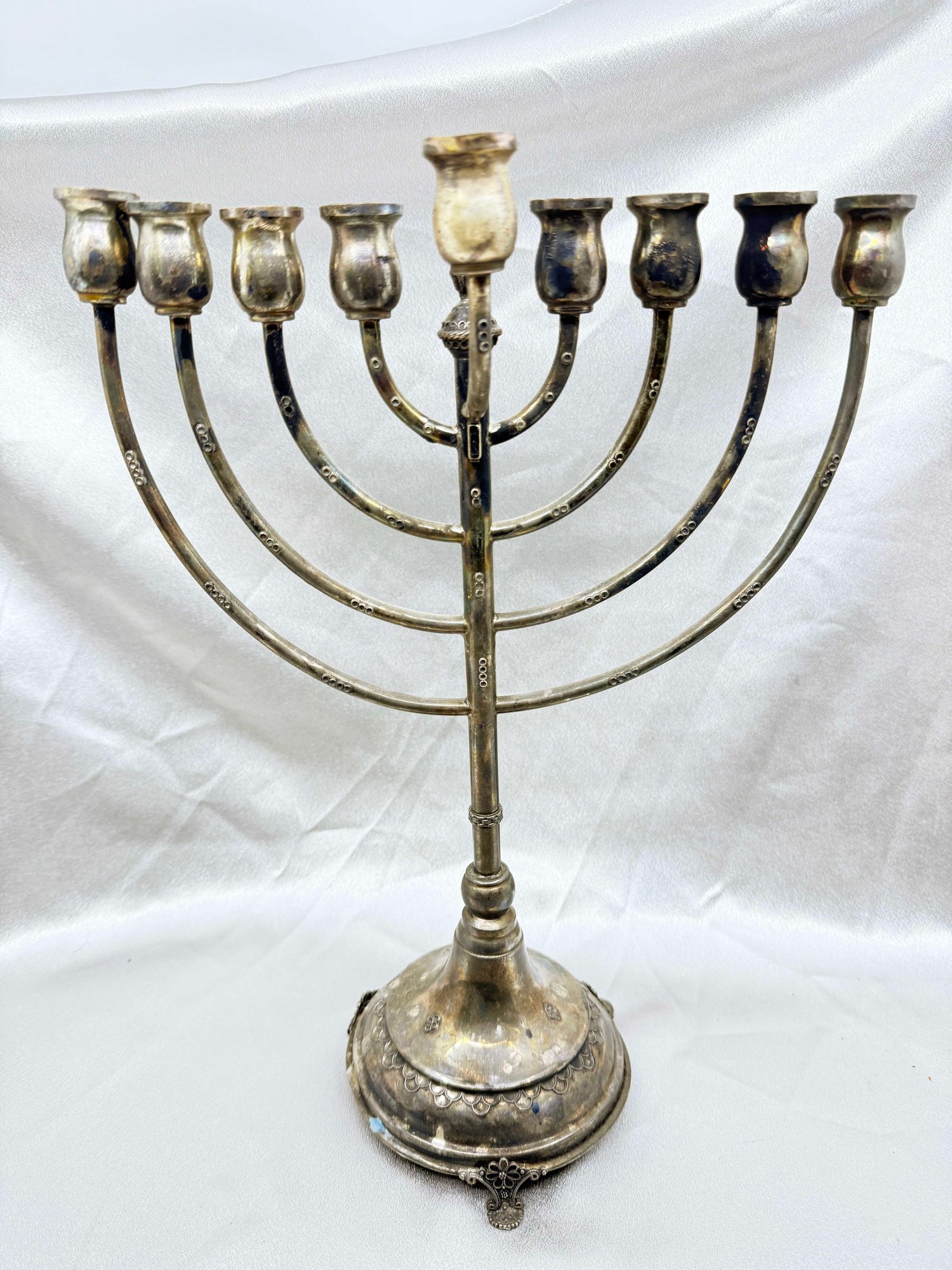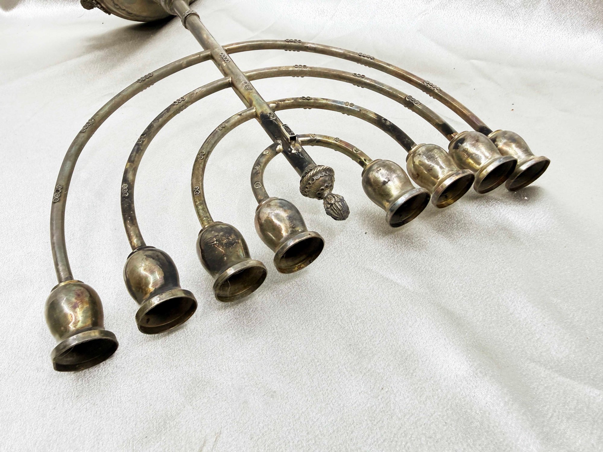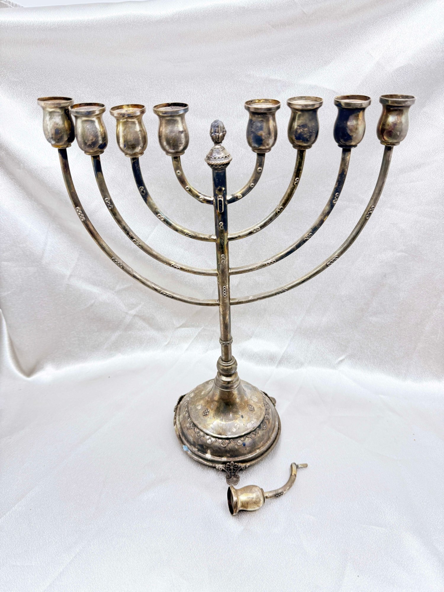 (J-30) VINTAGE SILVER JEWISH MENORAH WITH REMOVABLE CANDLE HOLDER-UNMARKED BUT TESTED SILVER
