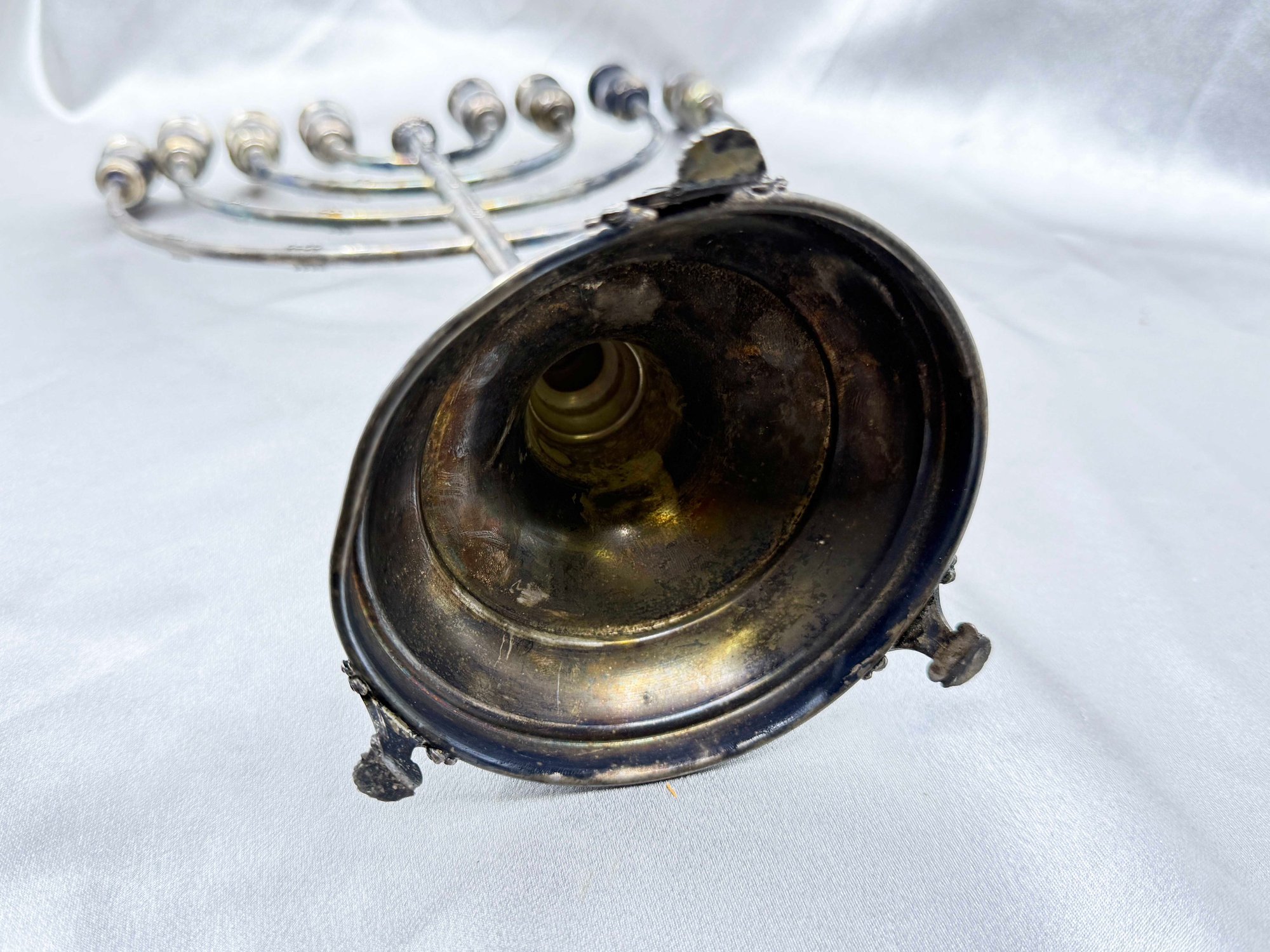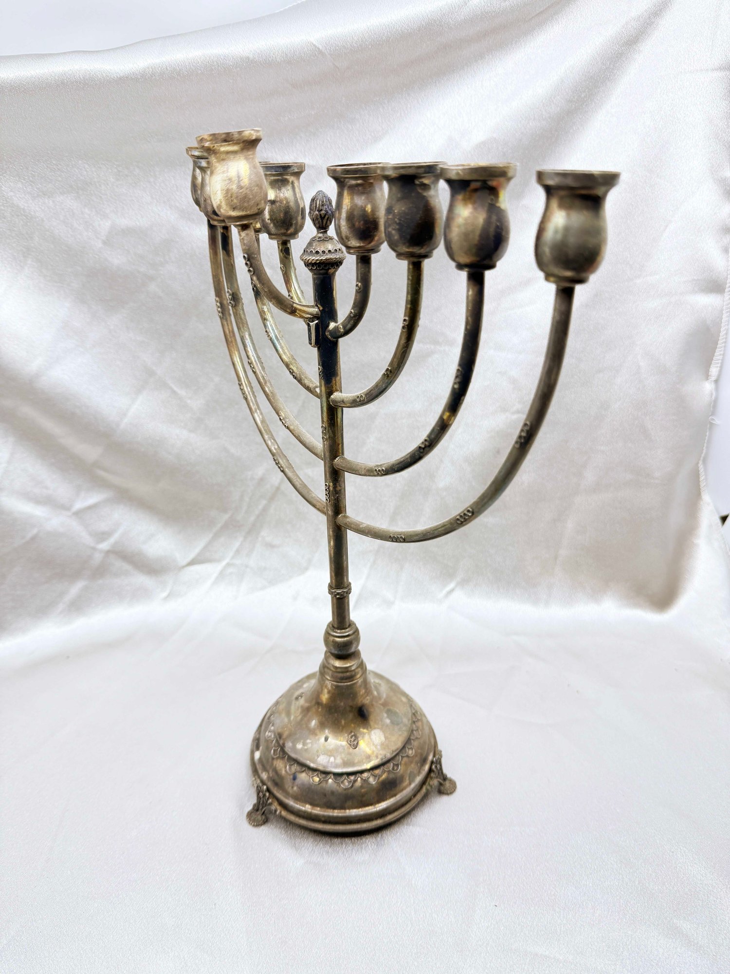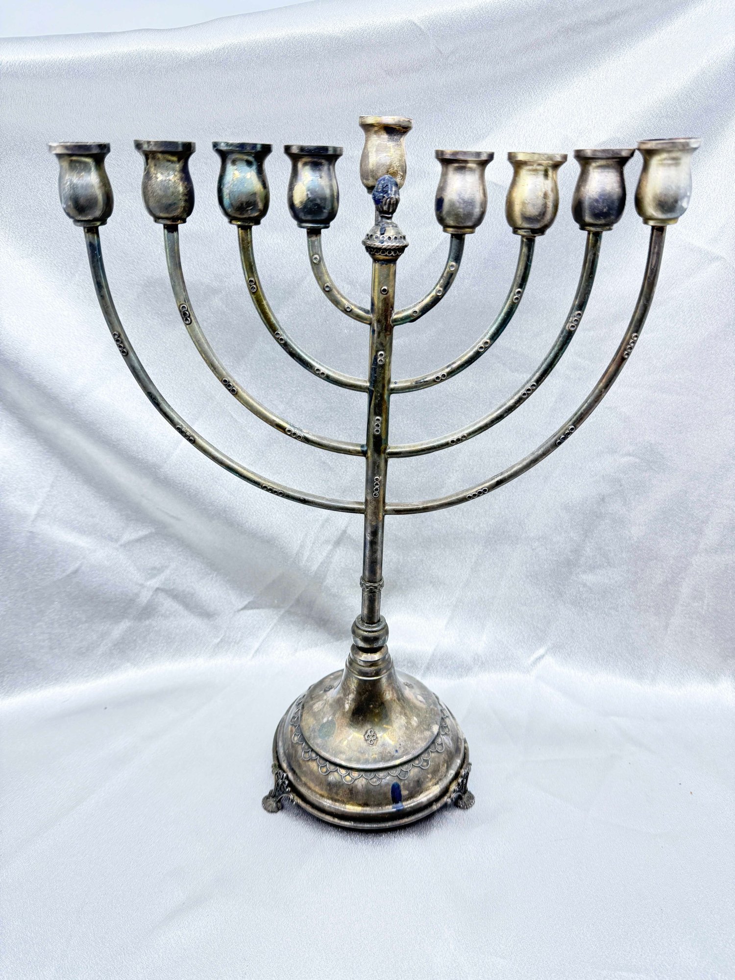 (J-30) VINTAGE SILVER JEWISH MENORAH WITH REMOVABLE CANDLE HOLDER-UNMARKED BUT TESTED SILVER