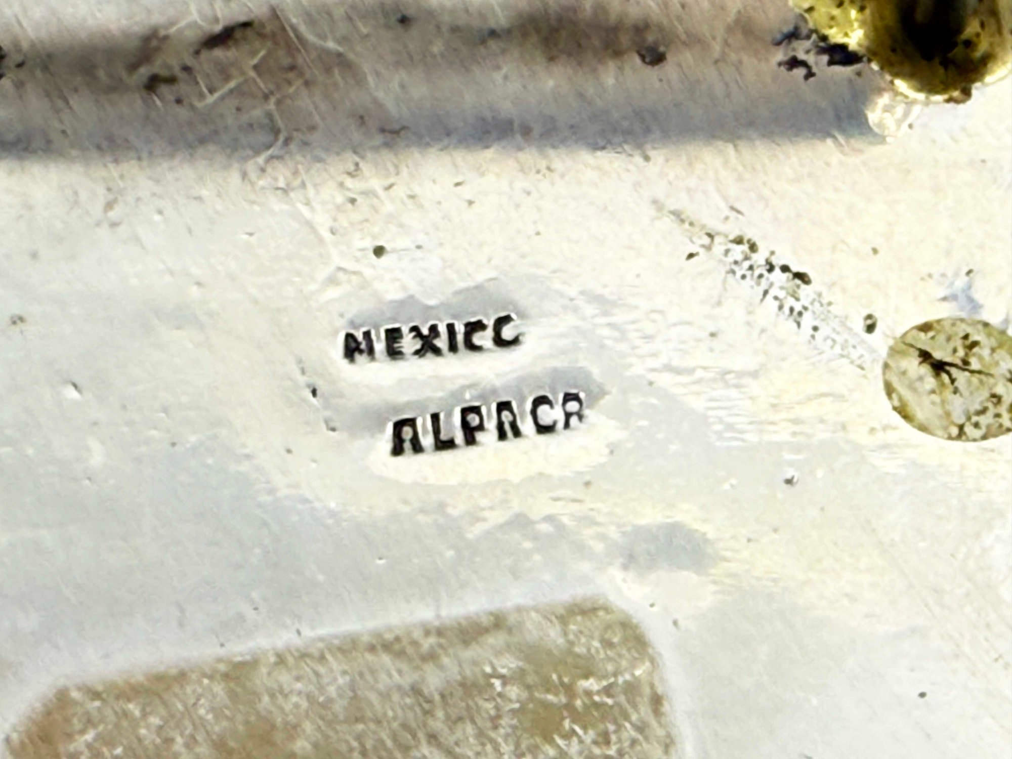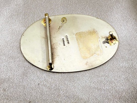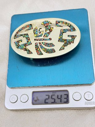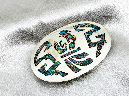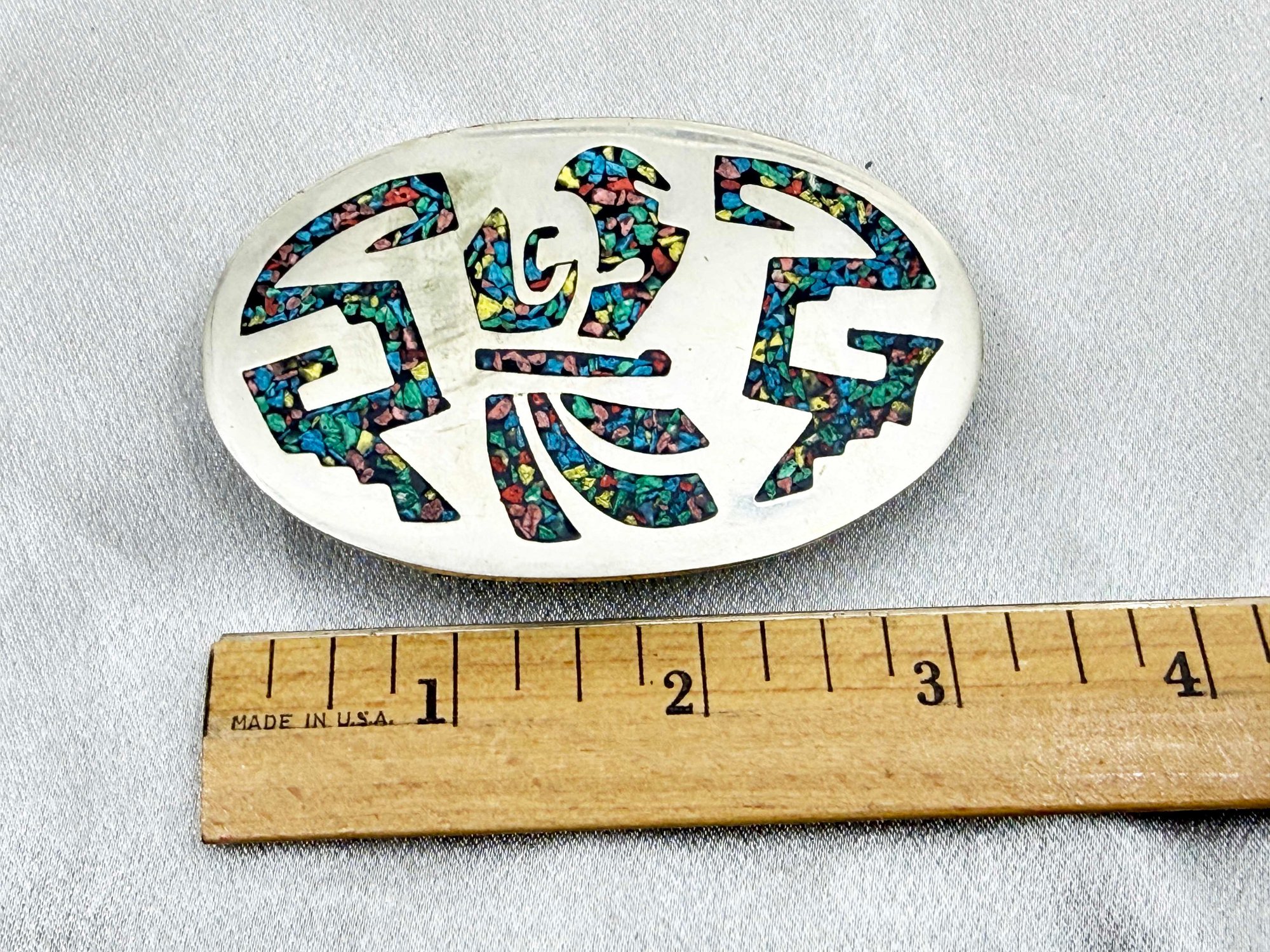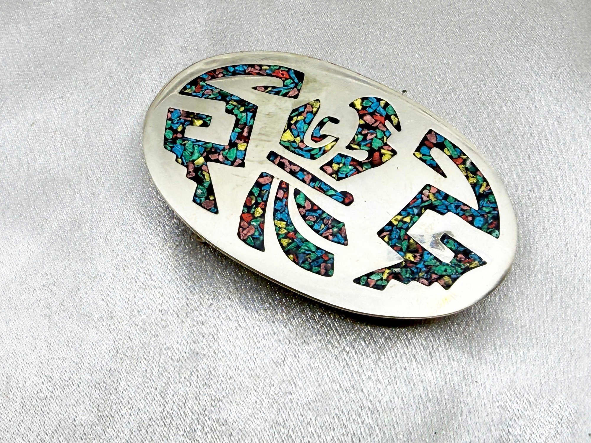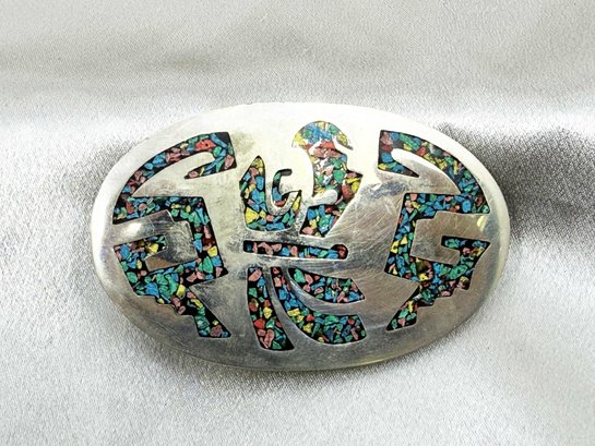 (J-7) VINTAGE MEXICAN STERLING SILVER AND CRUSHED STONE INLAY BELT BUCKLE-ALPACA