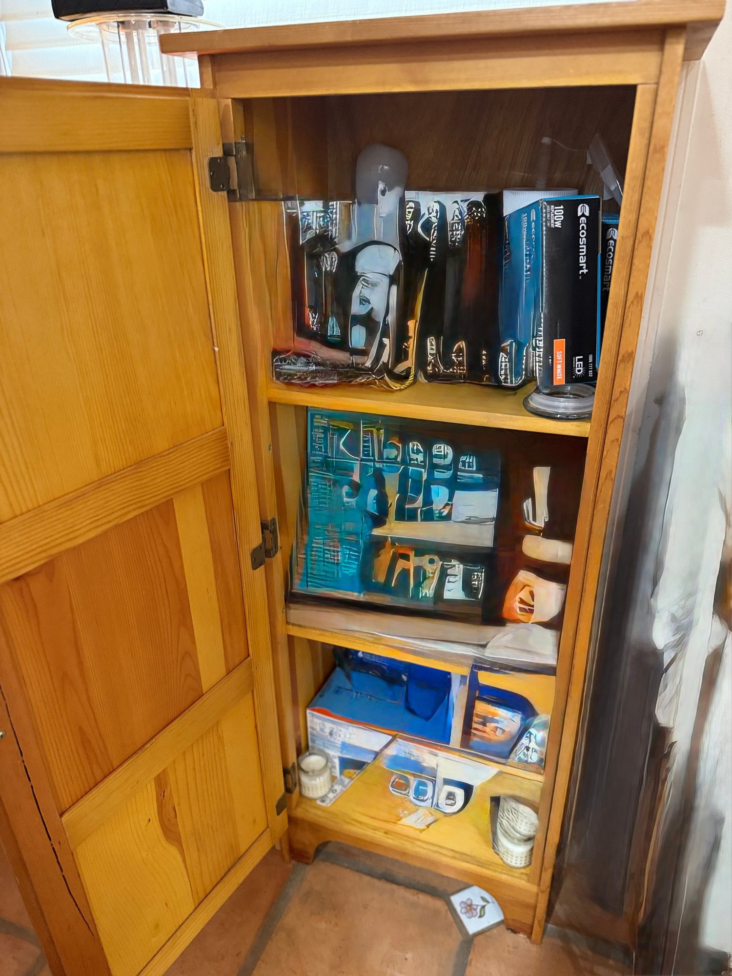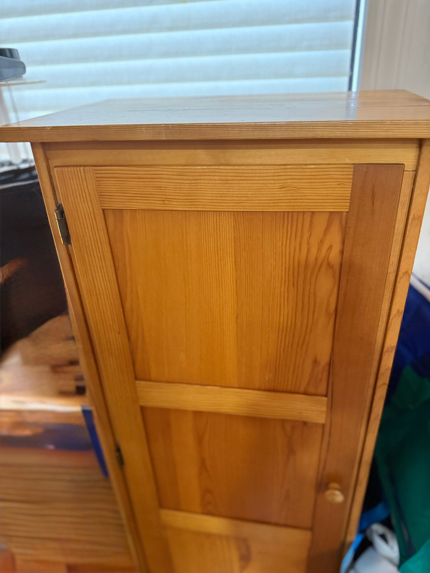 (K) OAK WOOD TALL STORAGE CABINET - CONTENTS NOT INCLUDED - 49" BY 20" BY 13"