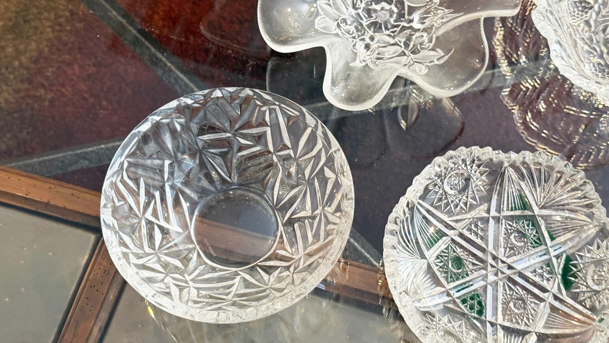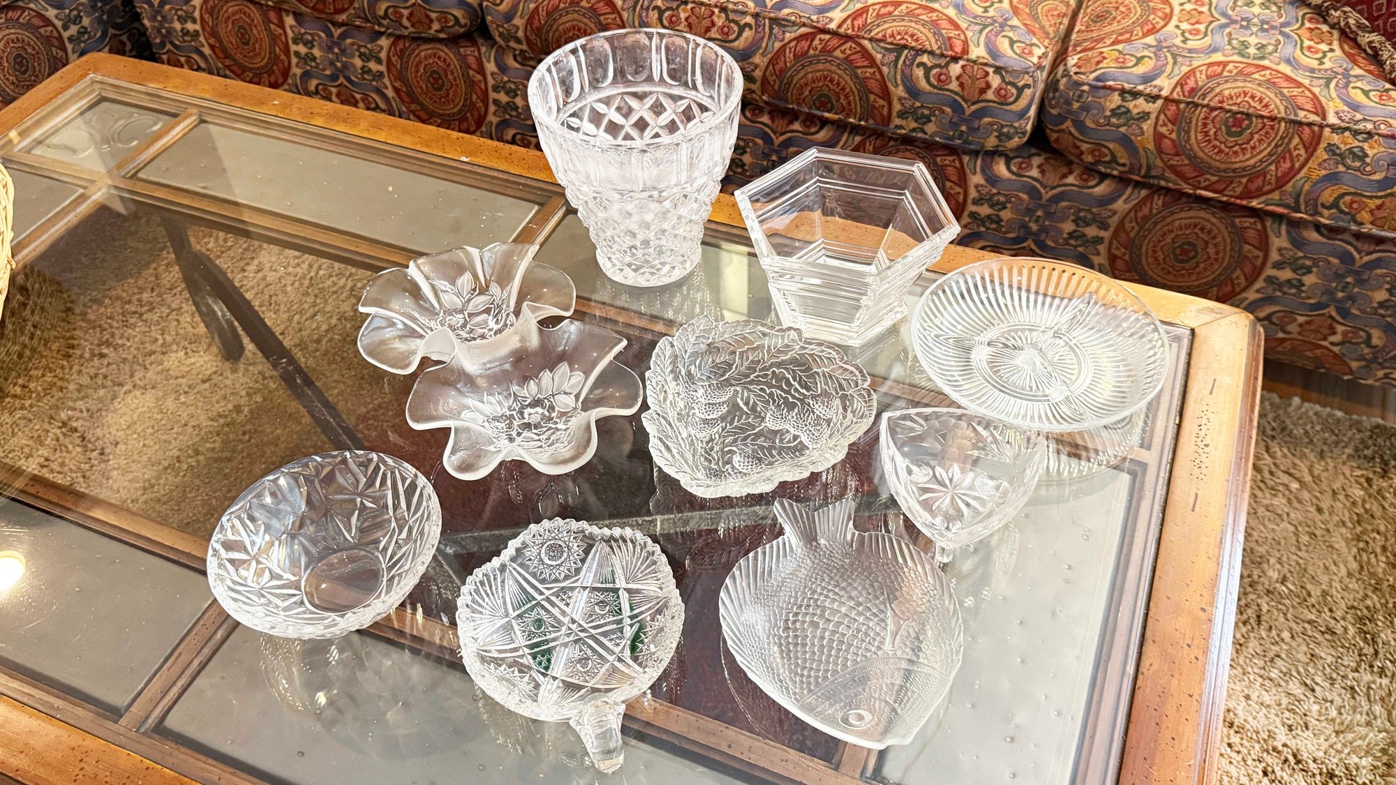 (LR-15) VINTAGE SET OF 9 PIECES OF CUT GLASS ITEMS AS SHOWN