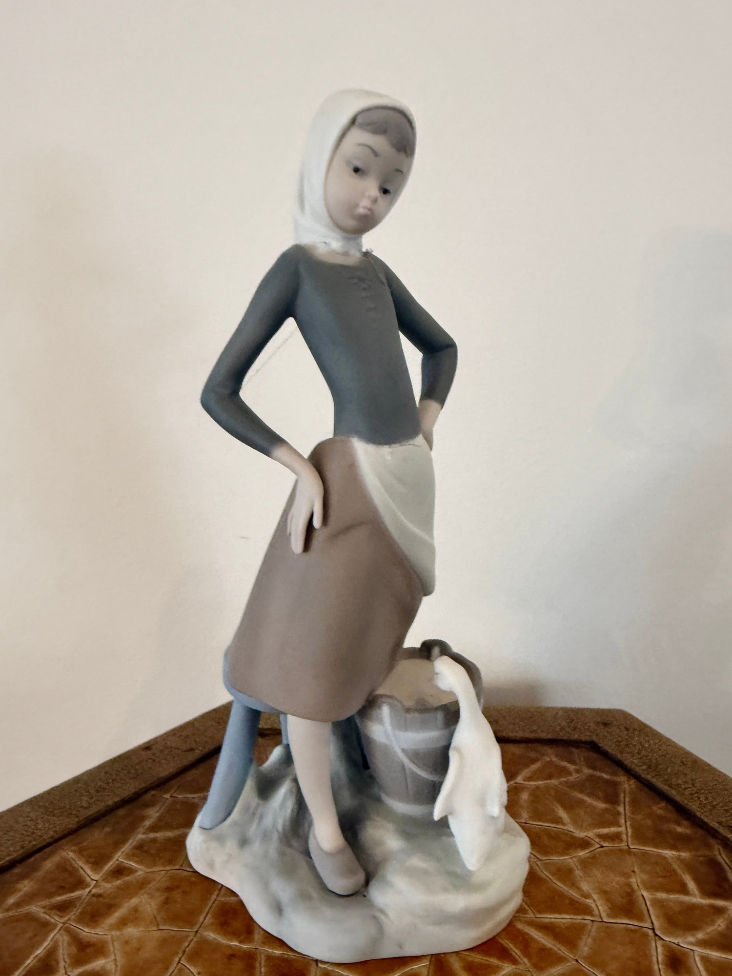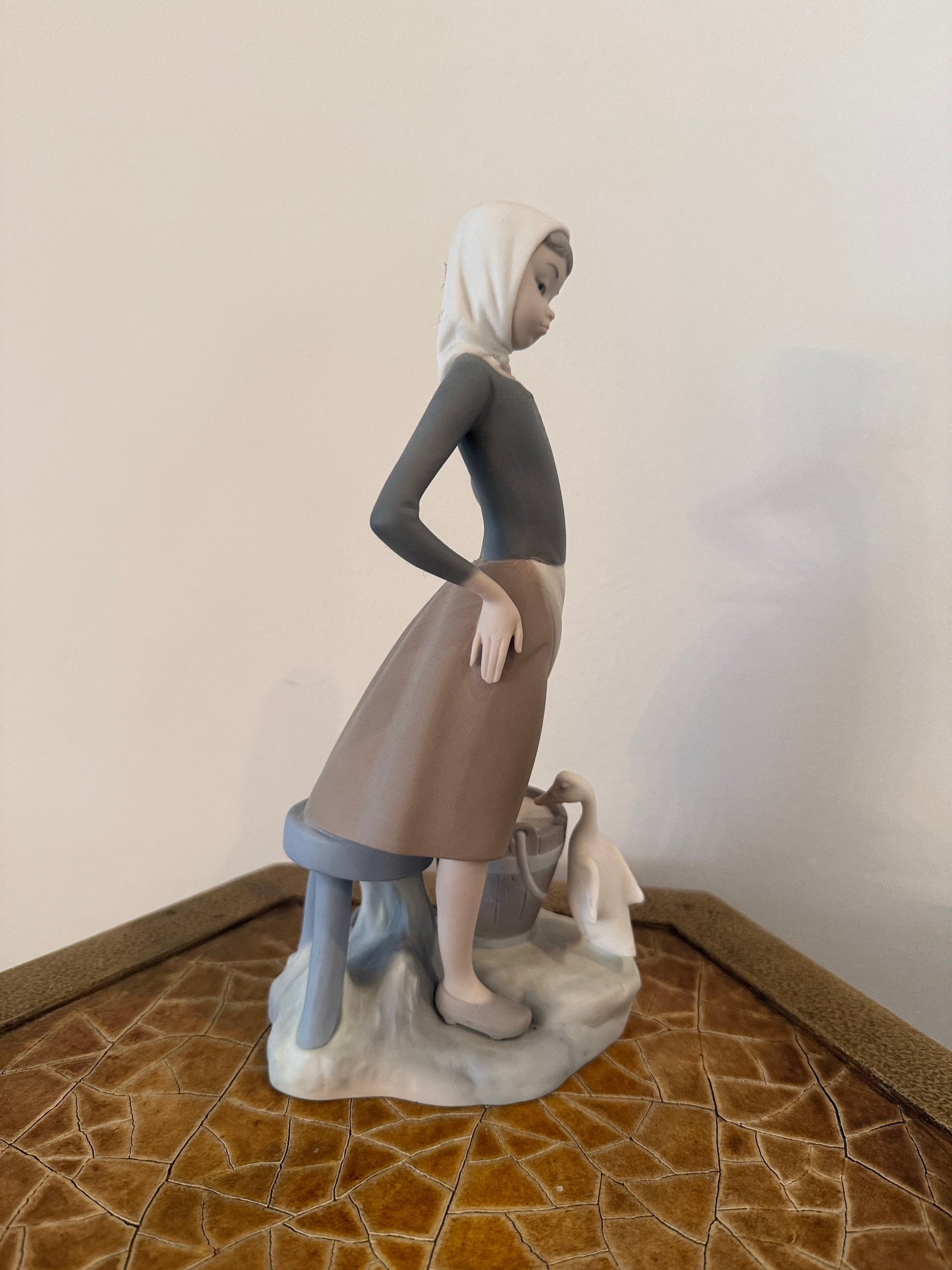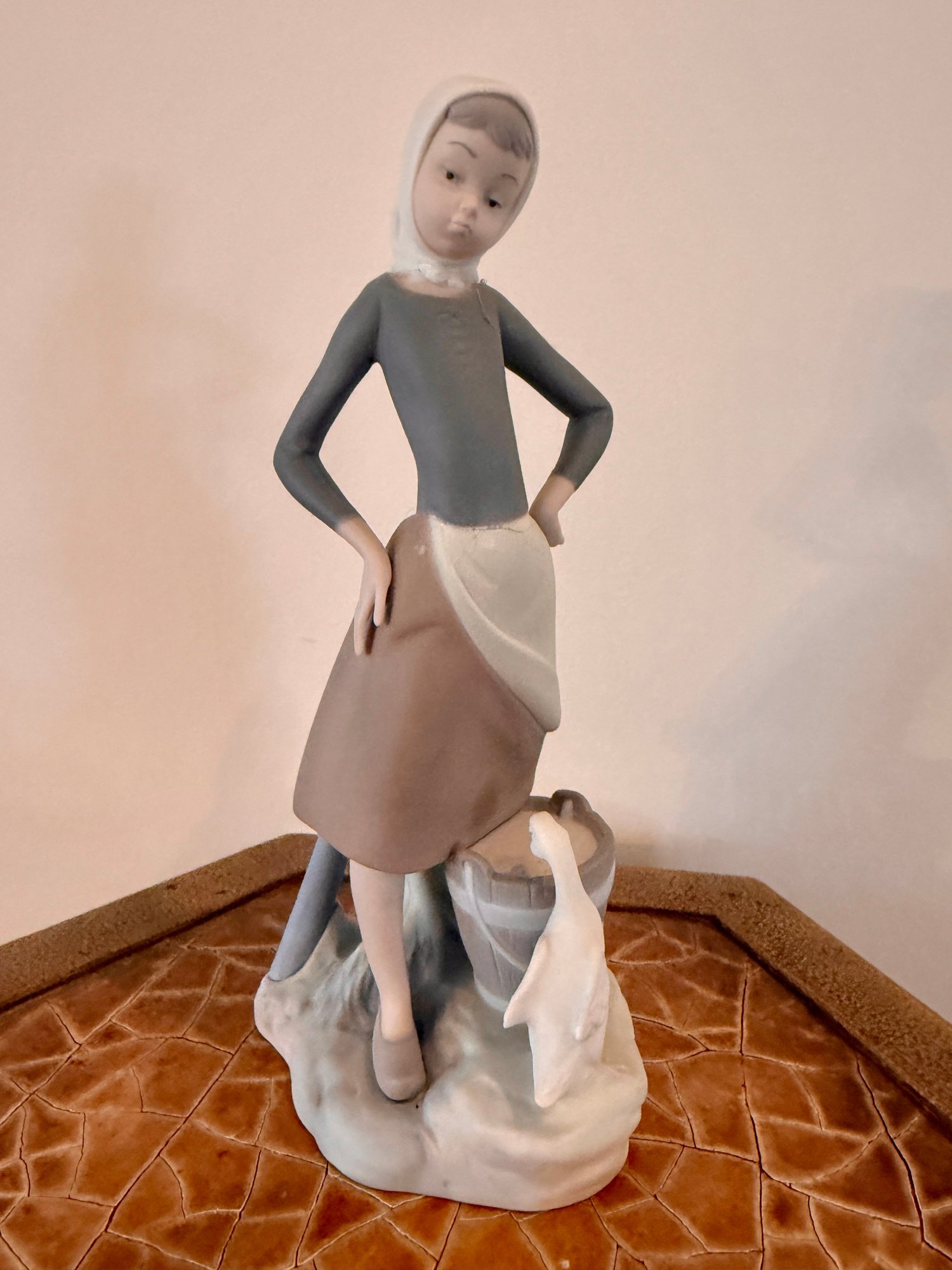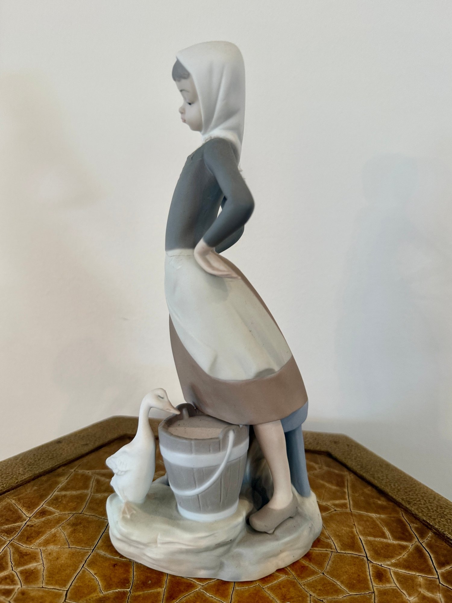 (LR-99) LLADRO "GIRL WITH GOOSE & MILK PAIL" FIGURINE - 9"