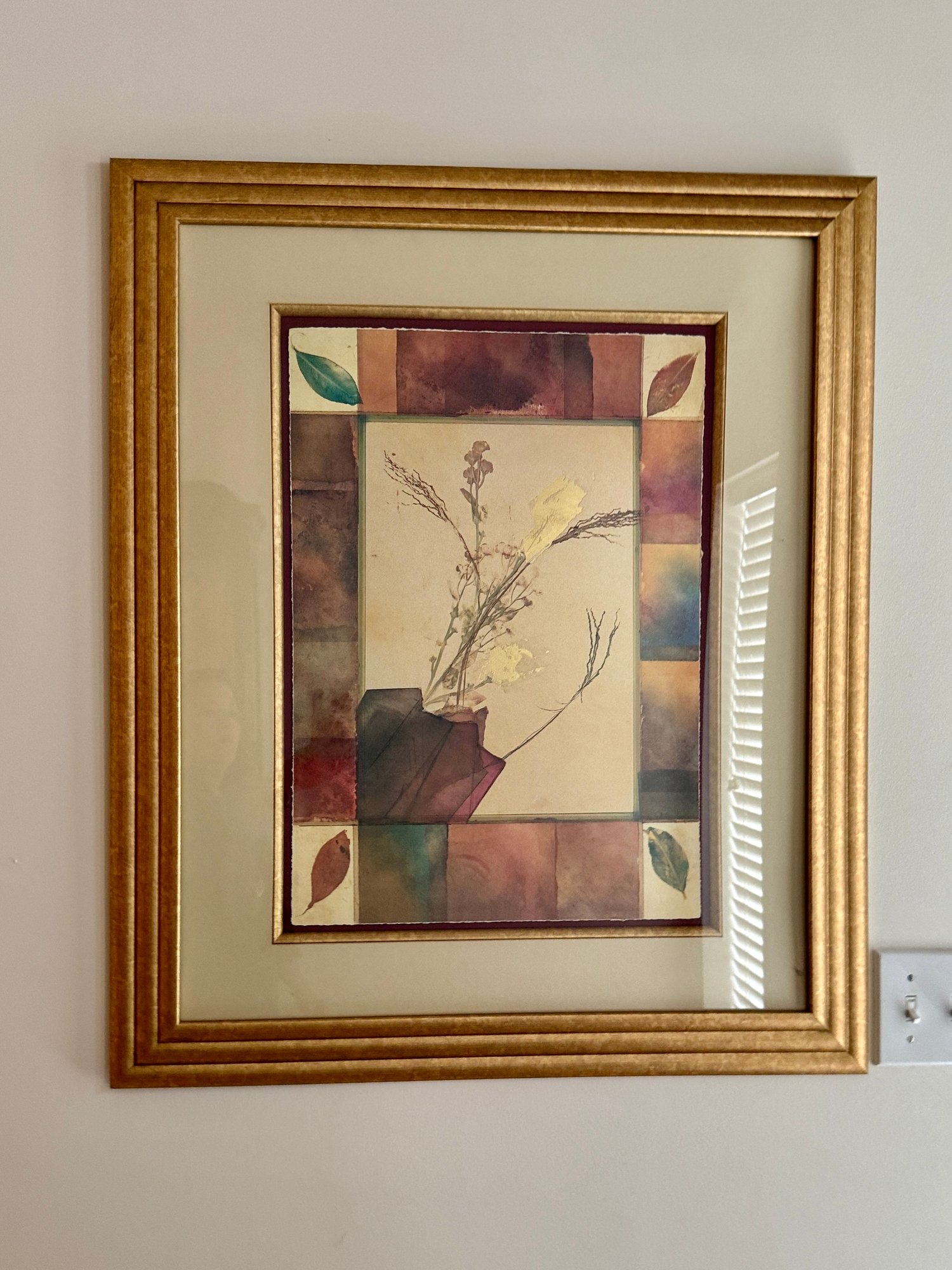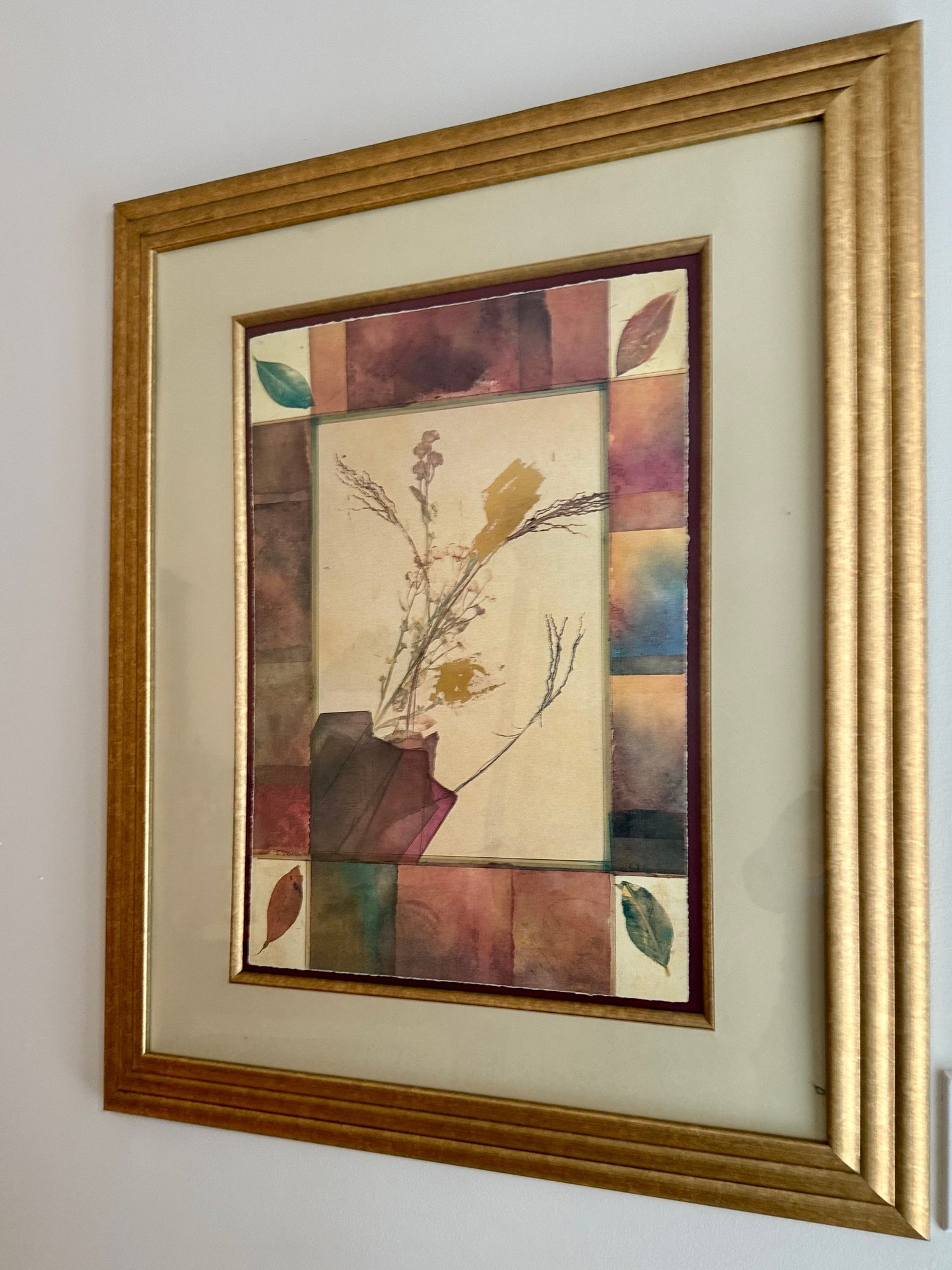 (LR) VINTAGE BOTANICAL PRINT FRAMED IN GOLD - 29" BY 34"