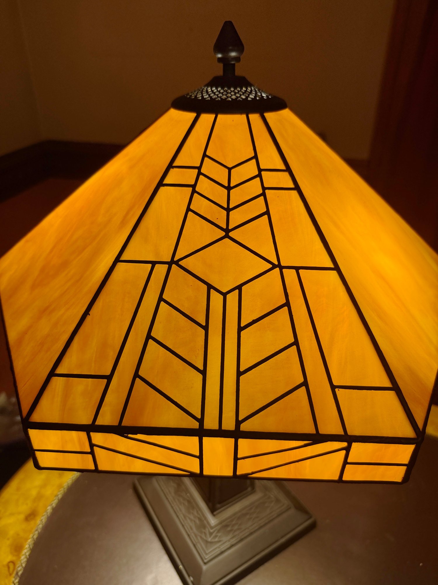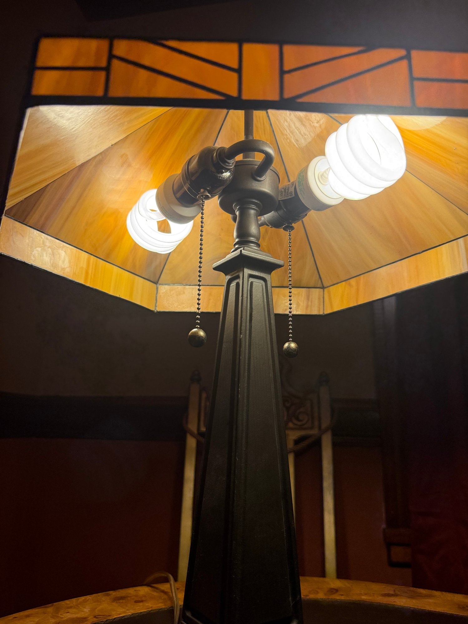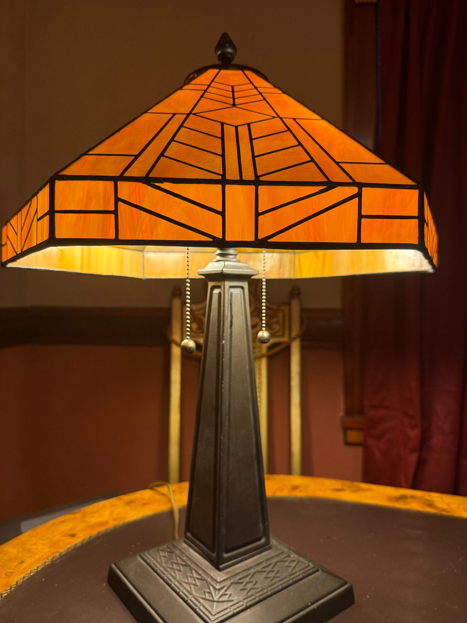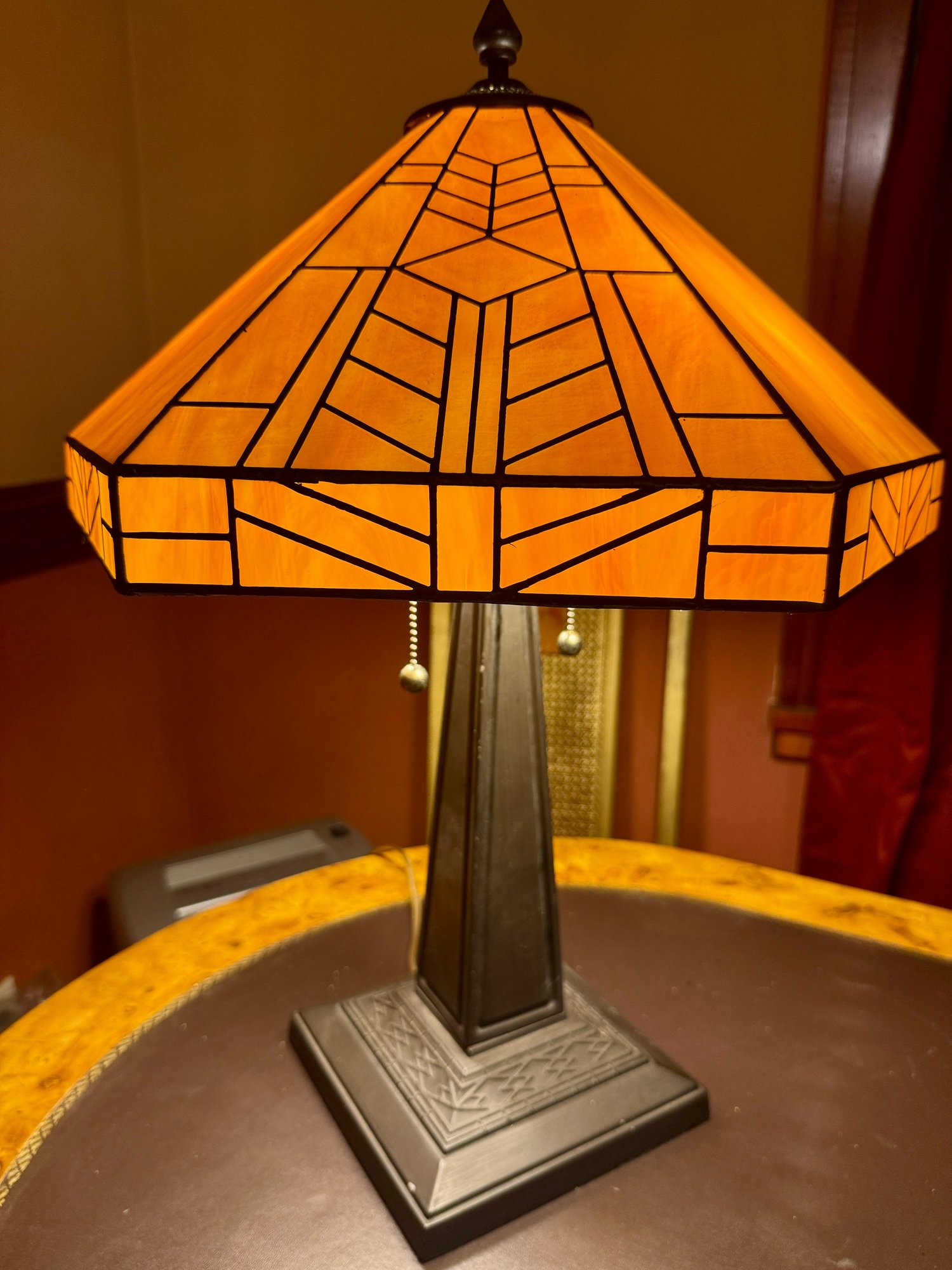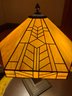 (O) VINTAGE ARTS & CRAFTS, MISSION STYLE STAINED GLASS TABLE LAMP - 24"