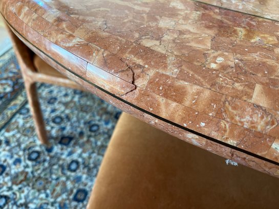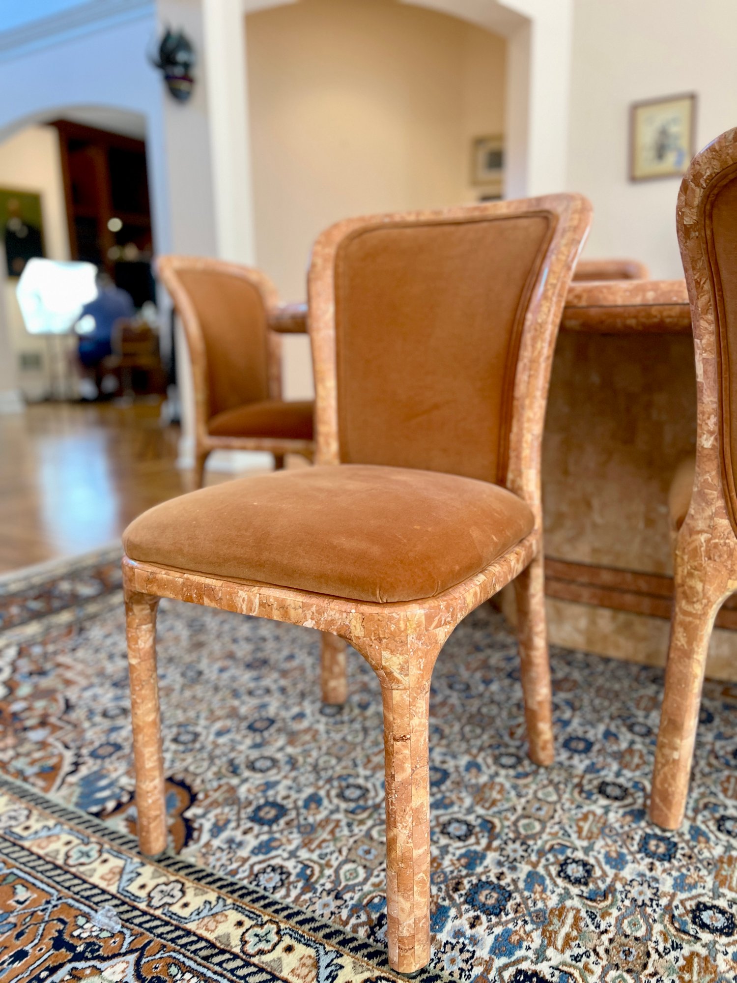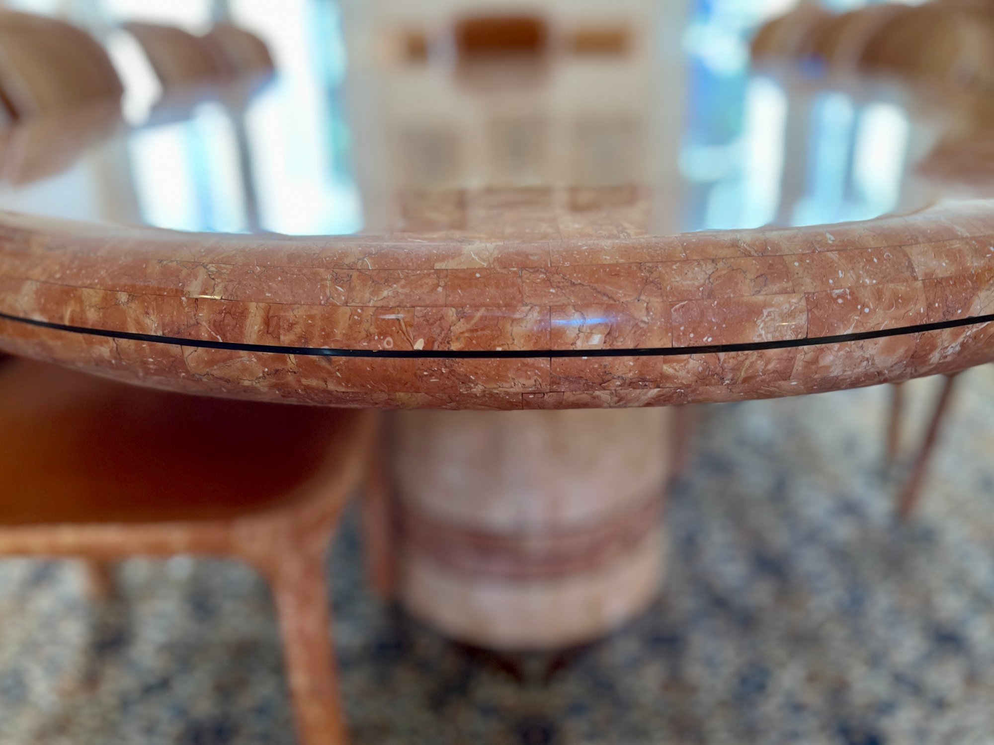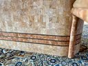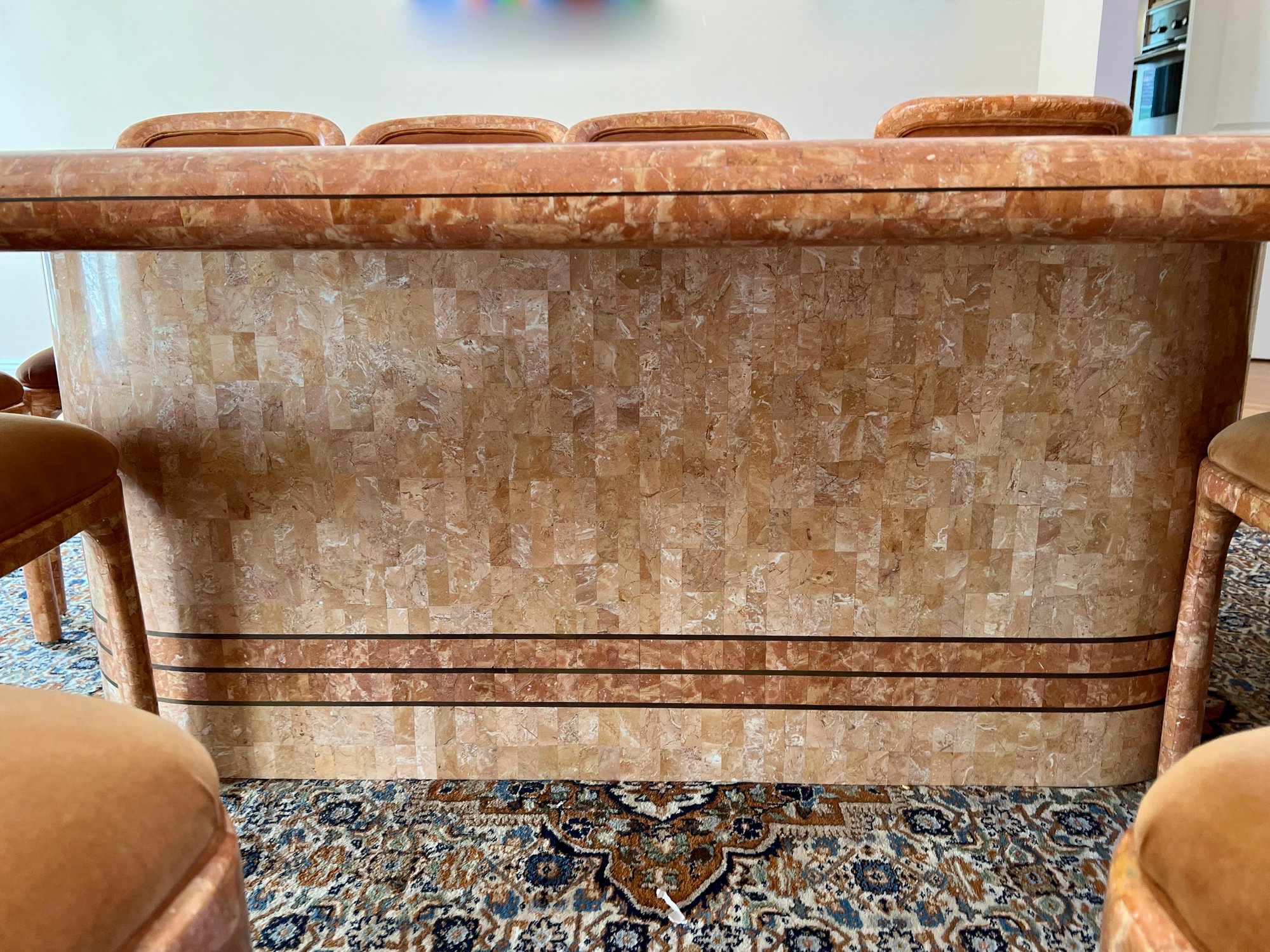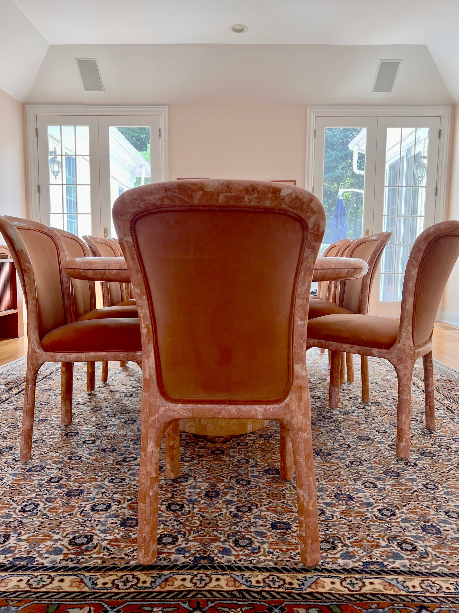 POLISHED HAND INLAID REAL SEASHELL DINING TABLE & TWELVE CHAIRS CUSTOM BUILT & IMPORTED FROM THE PHILIPPINES - TABLE IS: 8'9" BY 4' BY 30" HIGH, CHAIRS ARE: 19" BY 18" BY 35"H