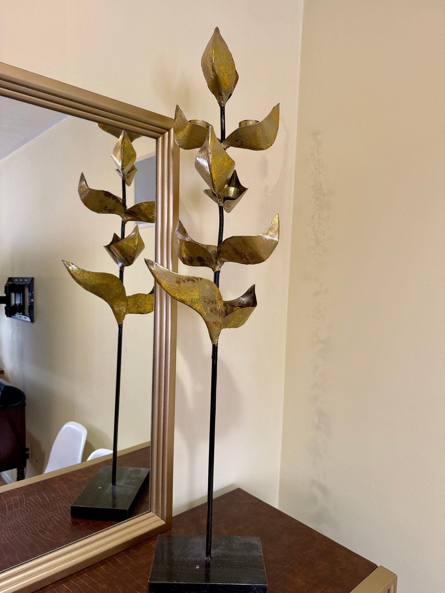 (U-23) TALL GOLD MULTI CANDLE HOLDER ON METAL BASE - 34"