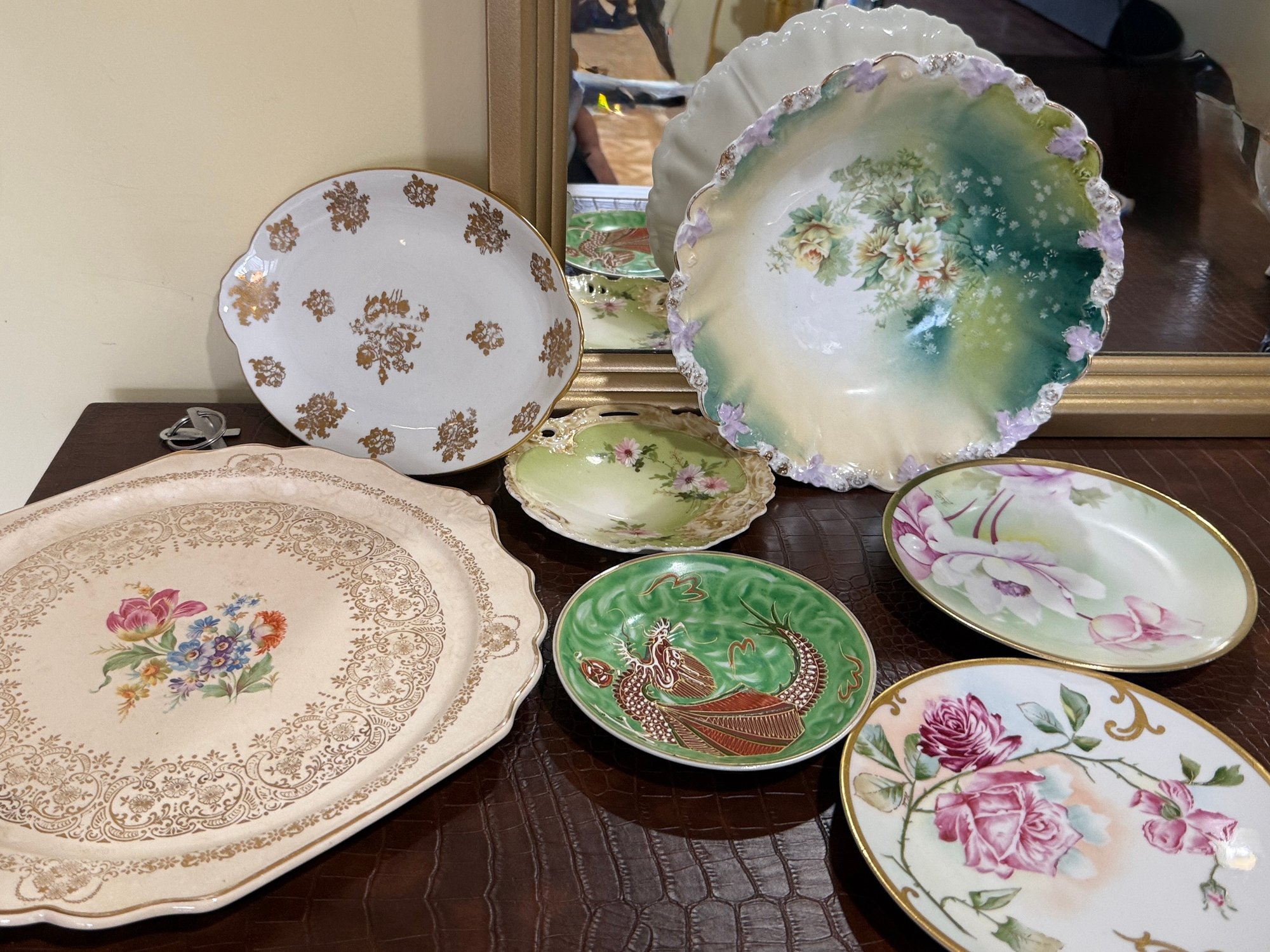 (U-25) COLLECTION OF SEVEN VINTAGE PORCELAIN PLATES ALL INCLUDED -10"-12"