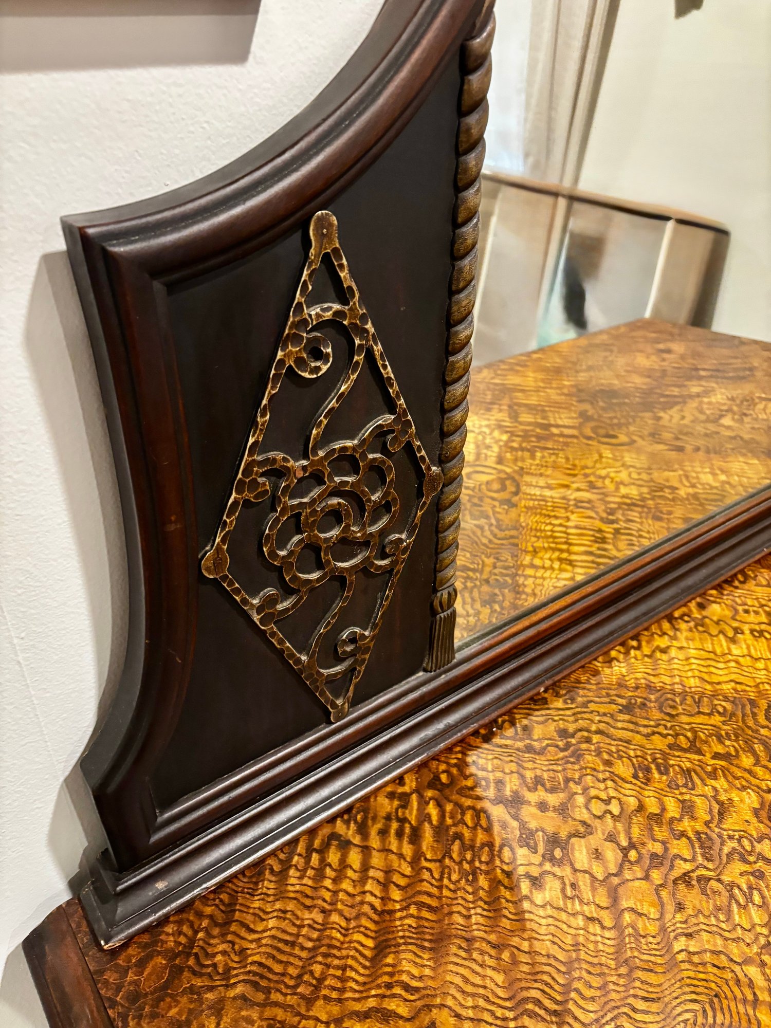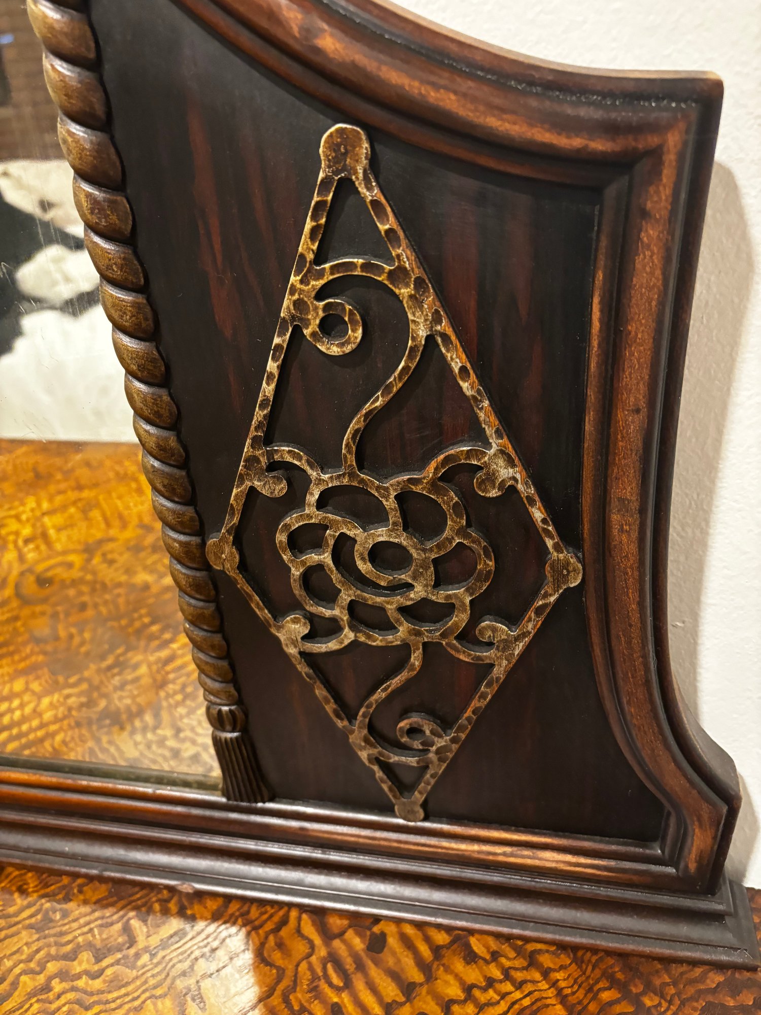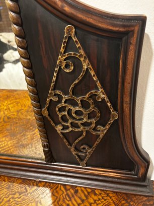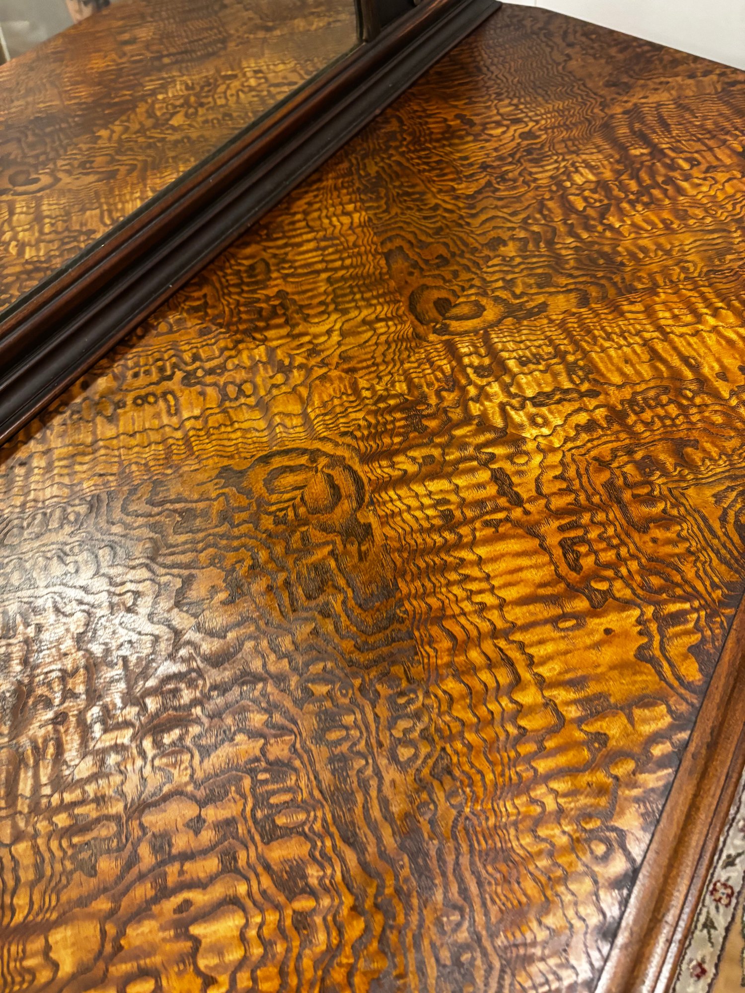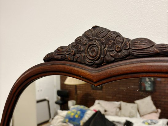 (UPBR) ANTIQUE INLAID & CARVED TIGER OAK DRESSER WITH MATCHING MIRROR- 54" BY 35" BY 23"