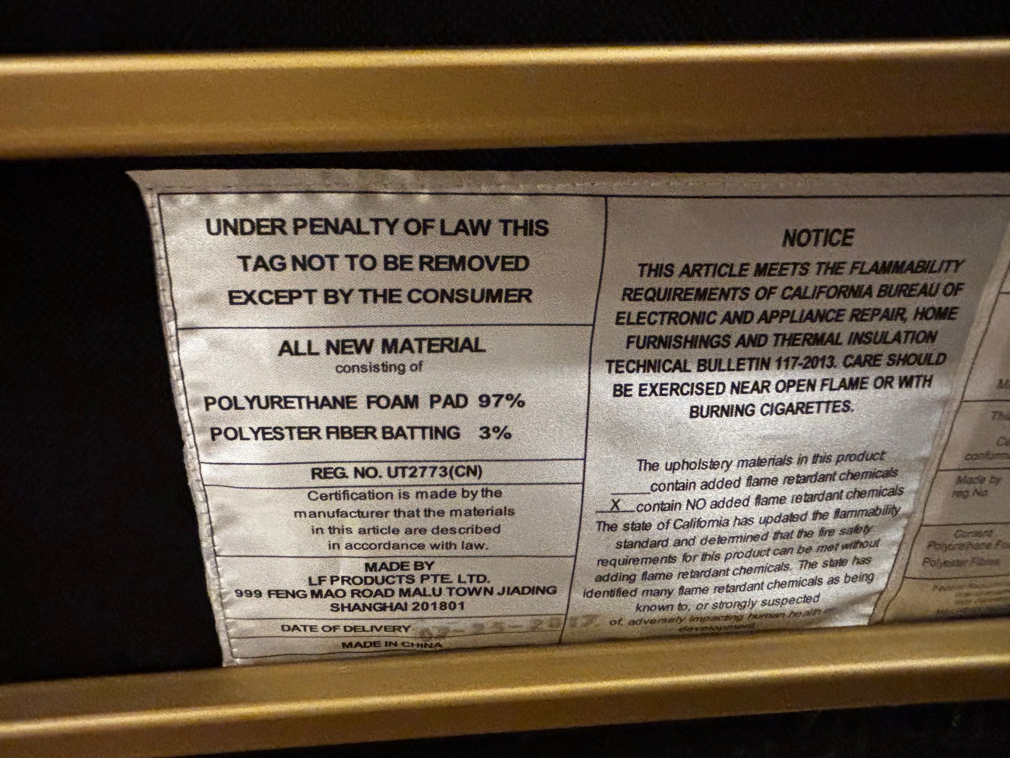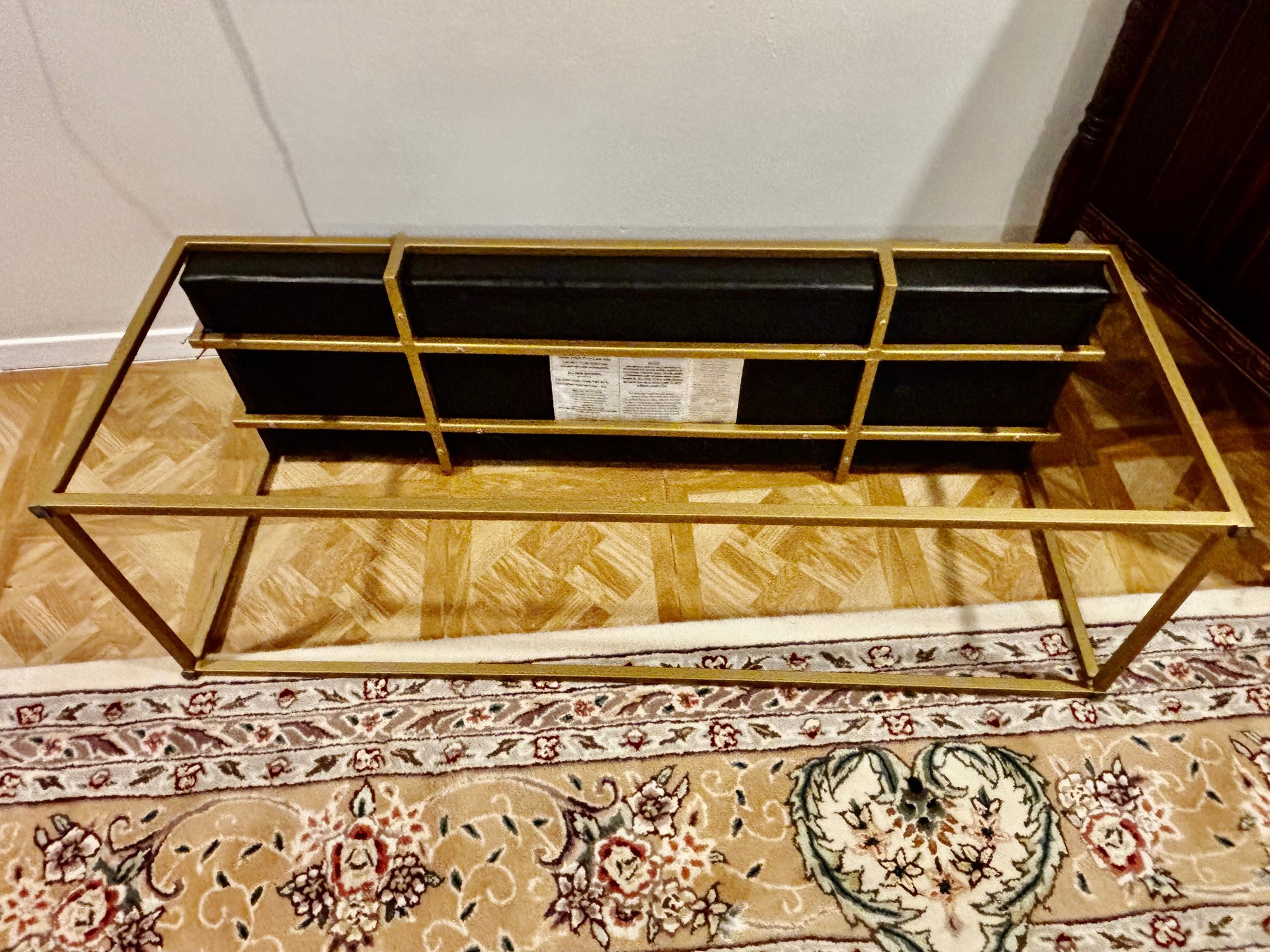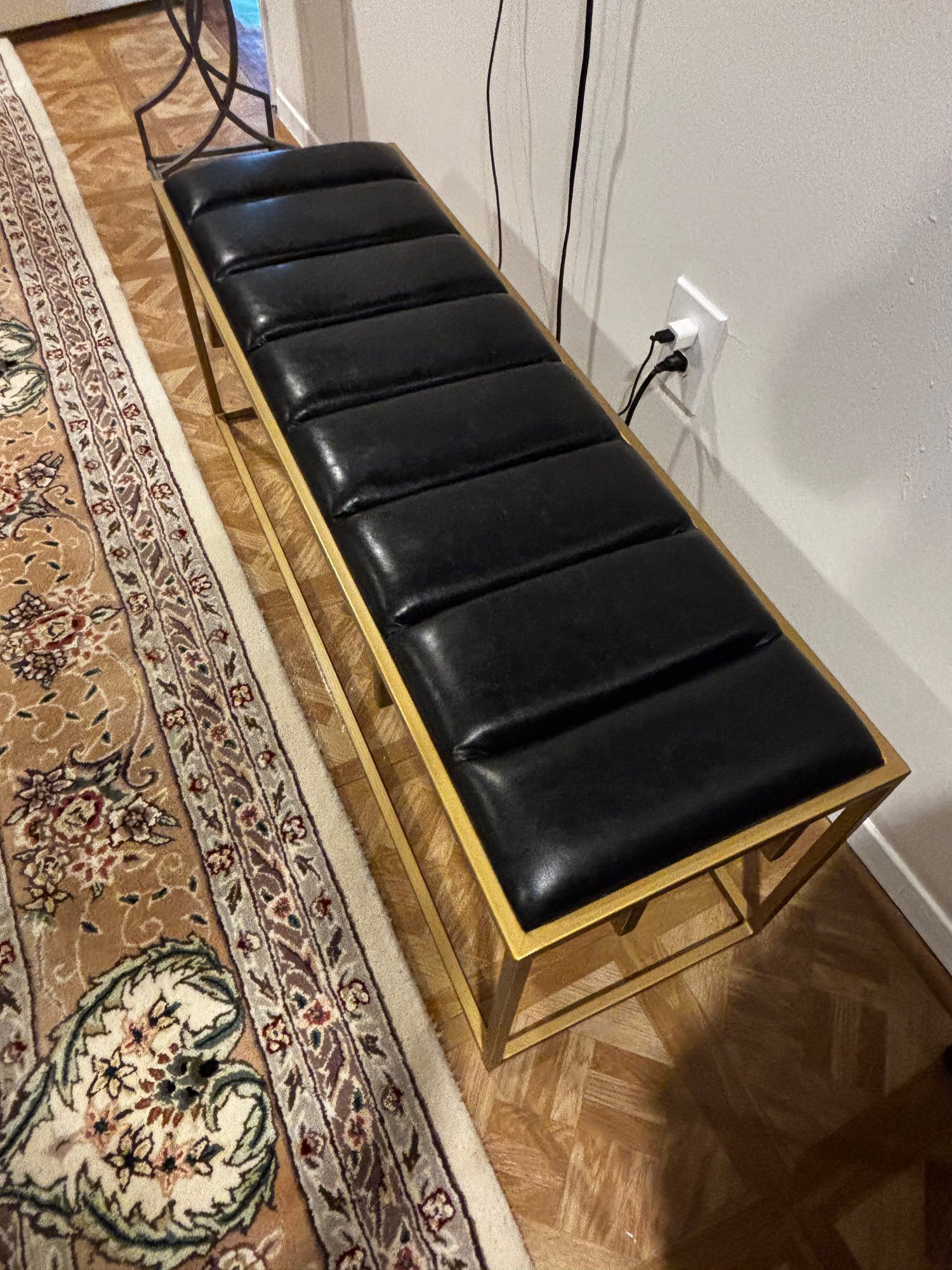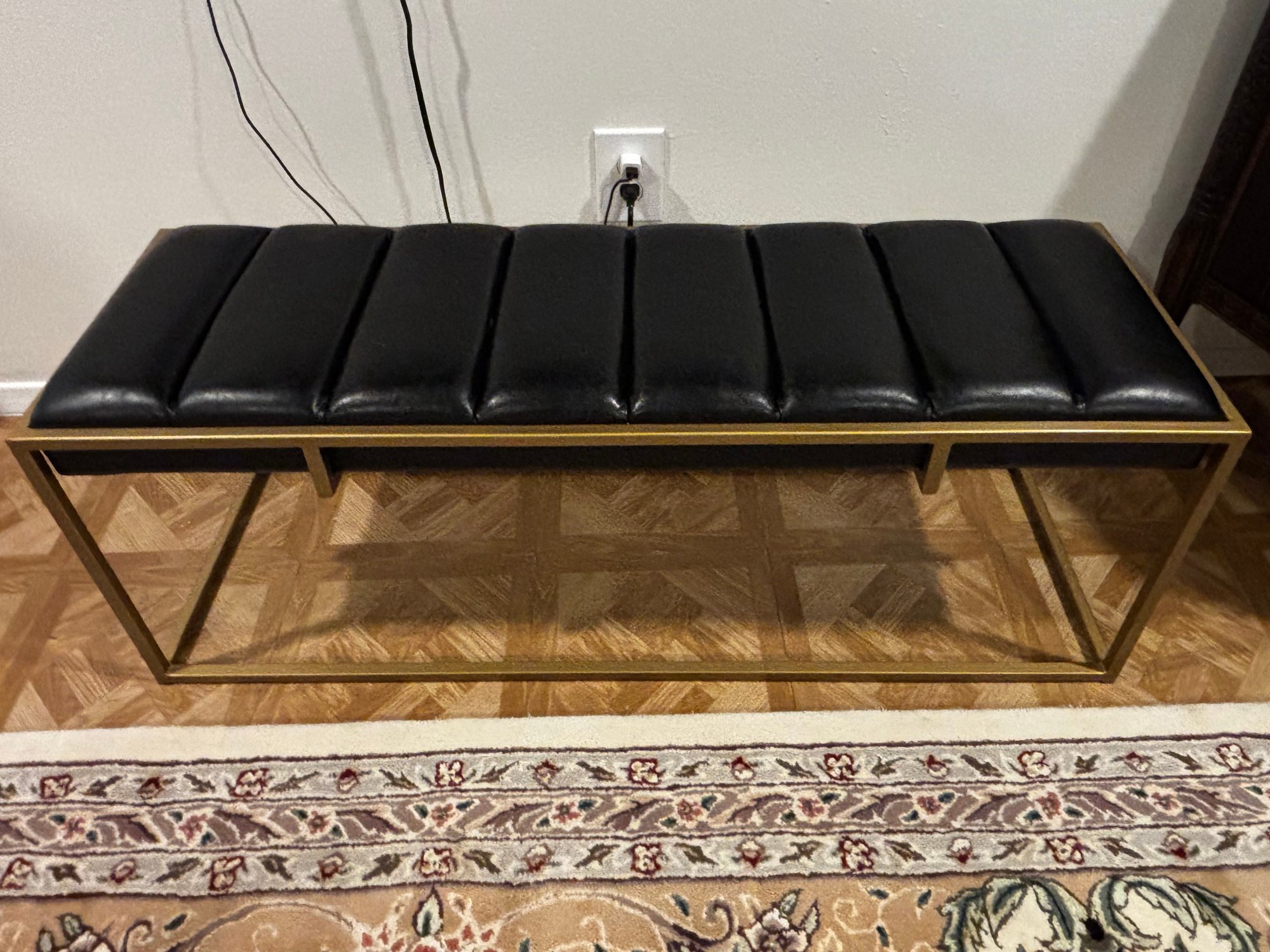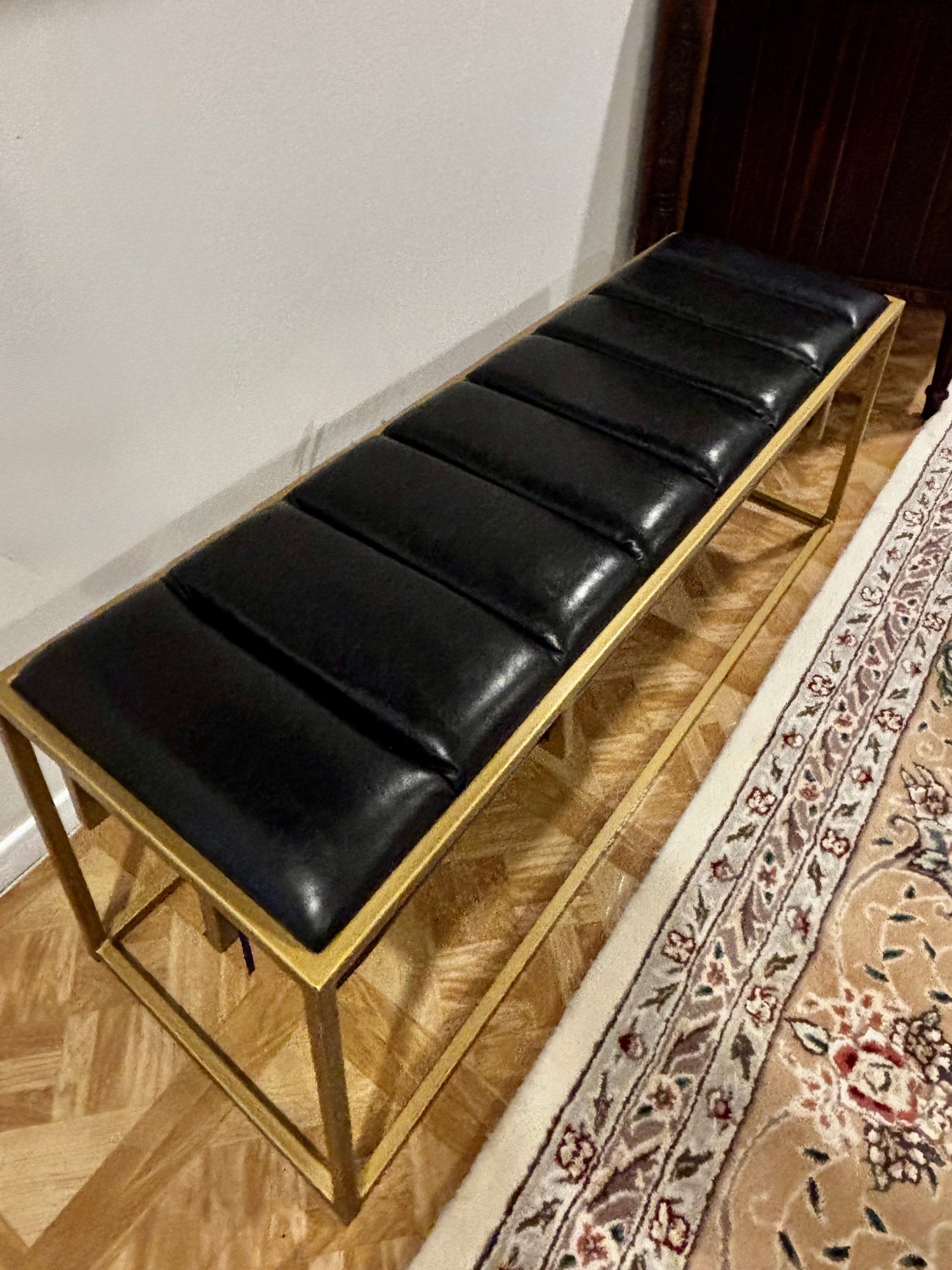 (UPBR) CONTEMPORARY BLACK VINYL ACCENT BENCH WITH GOLD FRAME - 43" BY 17" BY 14"