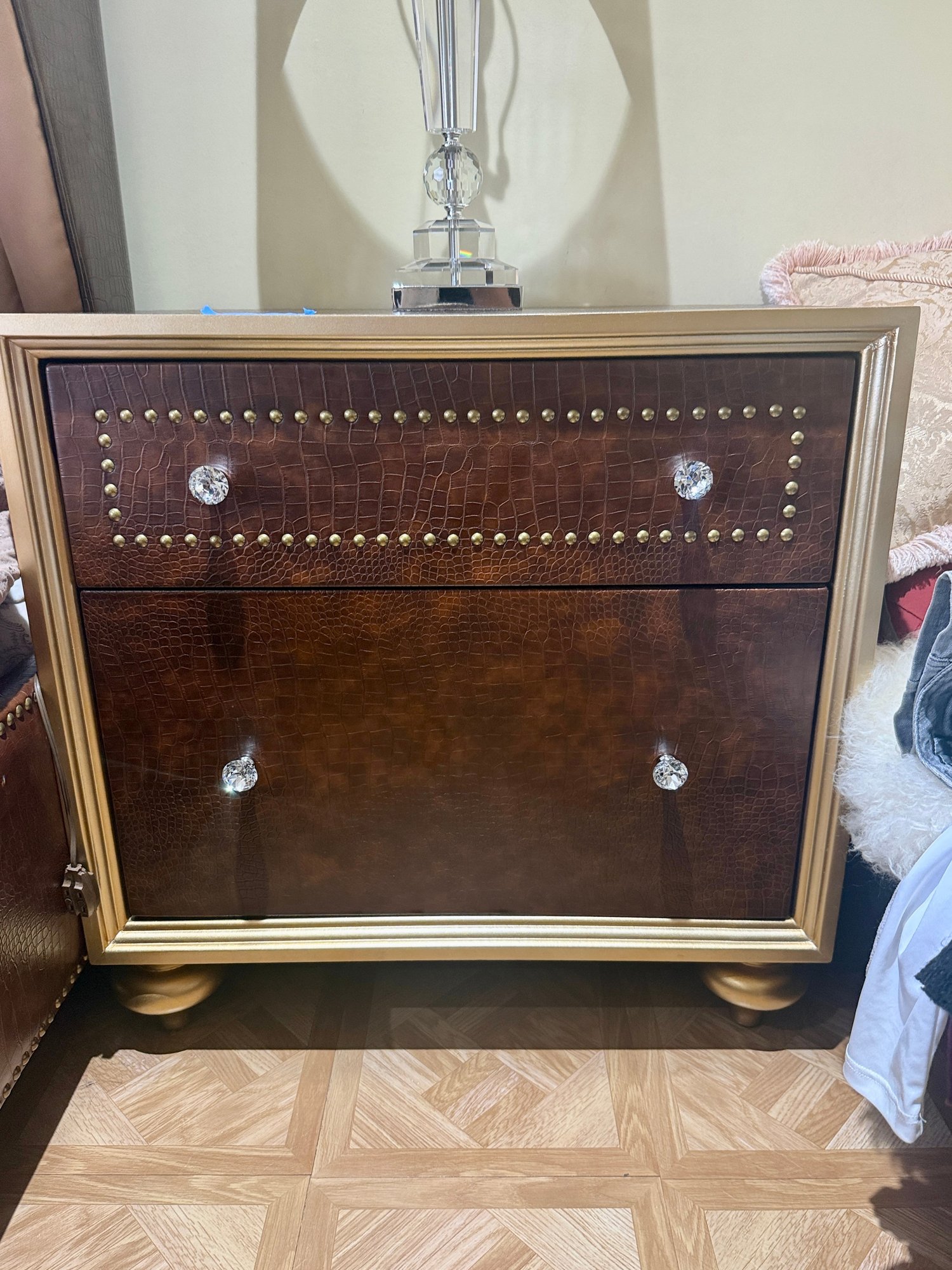 (UPBR) EIGHT DRAWER DRESSER WITH FAUX LEATHER SURFACE & SIDES - 28" BY 28" BY 18"