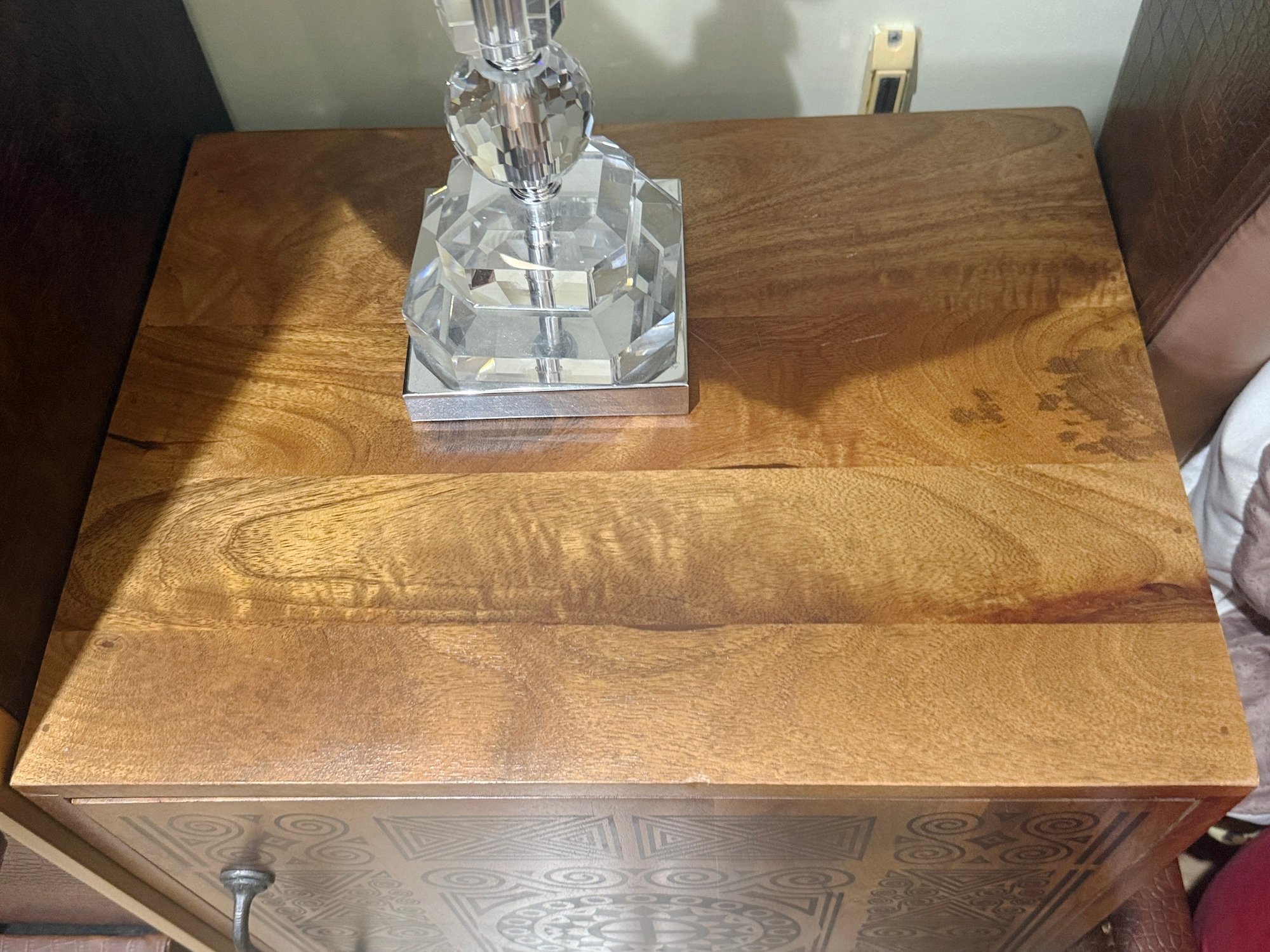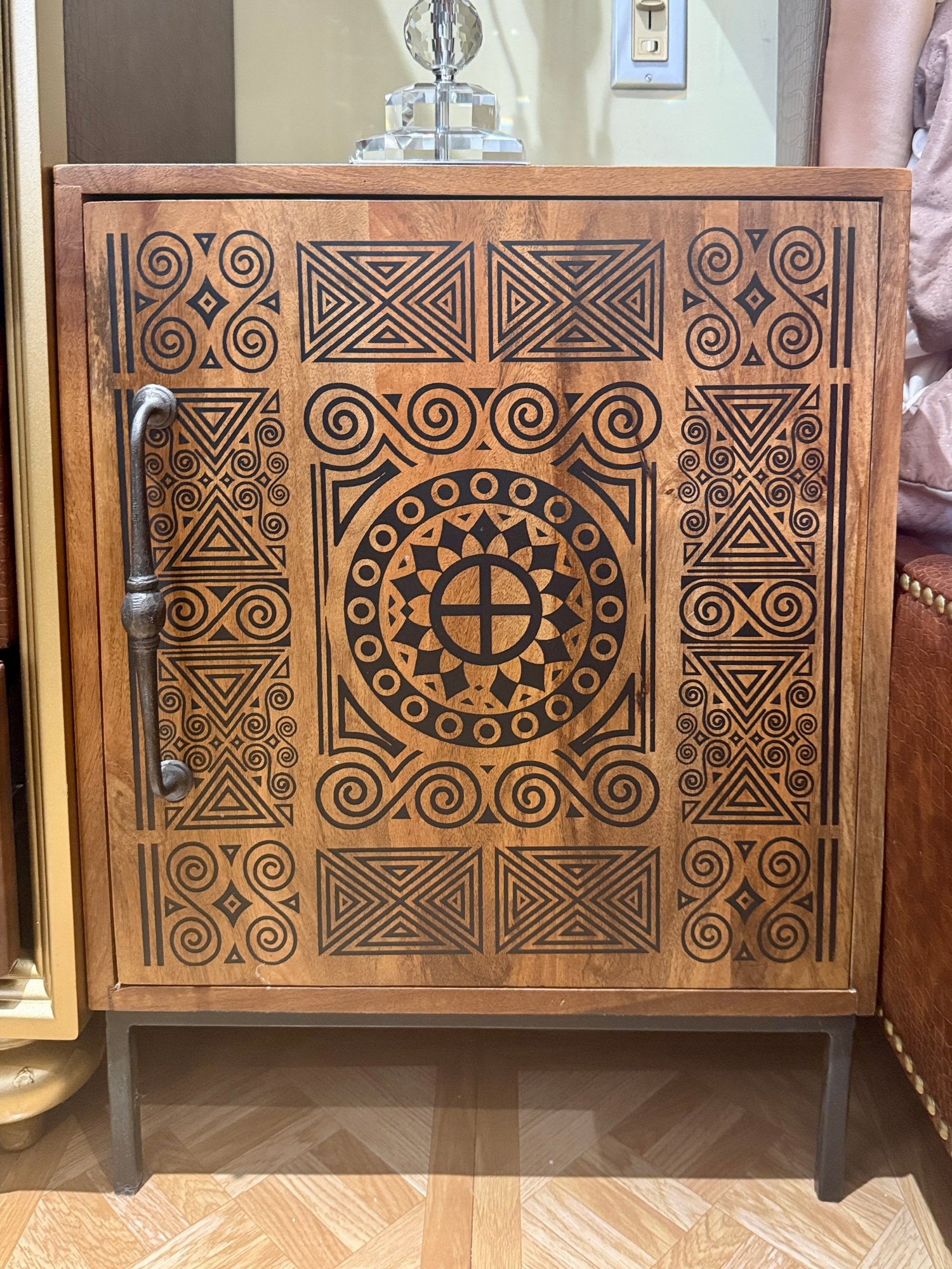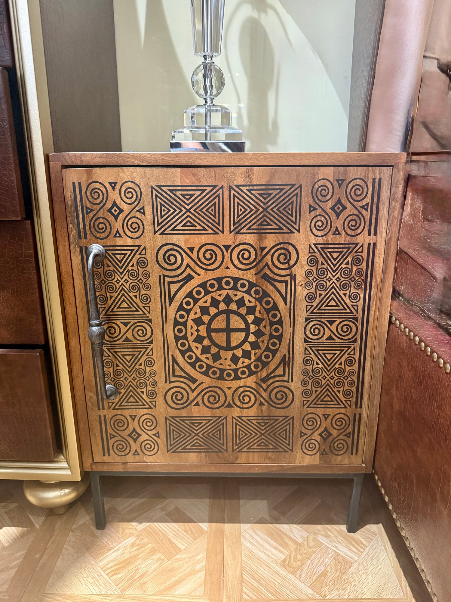 (UPBR) SMALL DECORATED WOOD ACCENT CABINET END TABLE - 25" BY 19" BY 16"