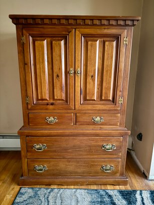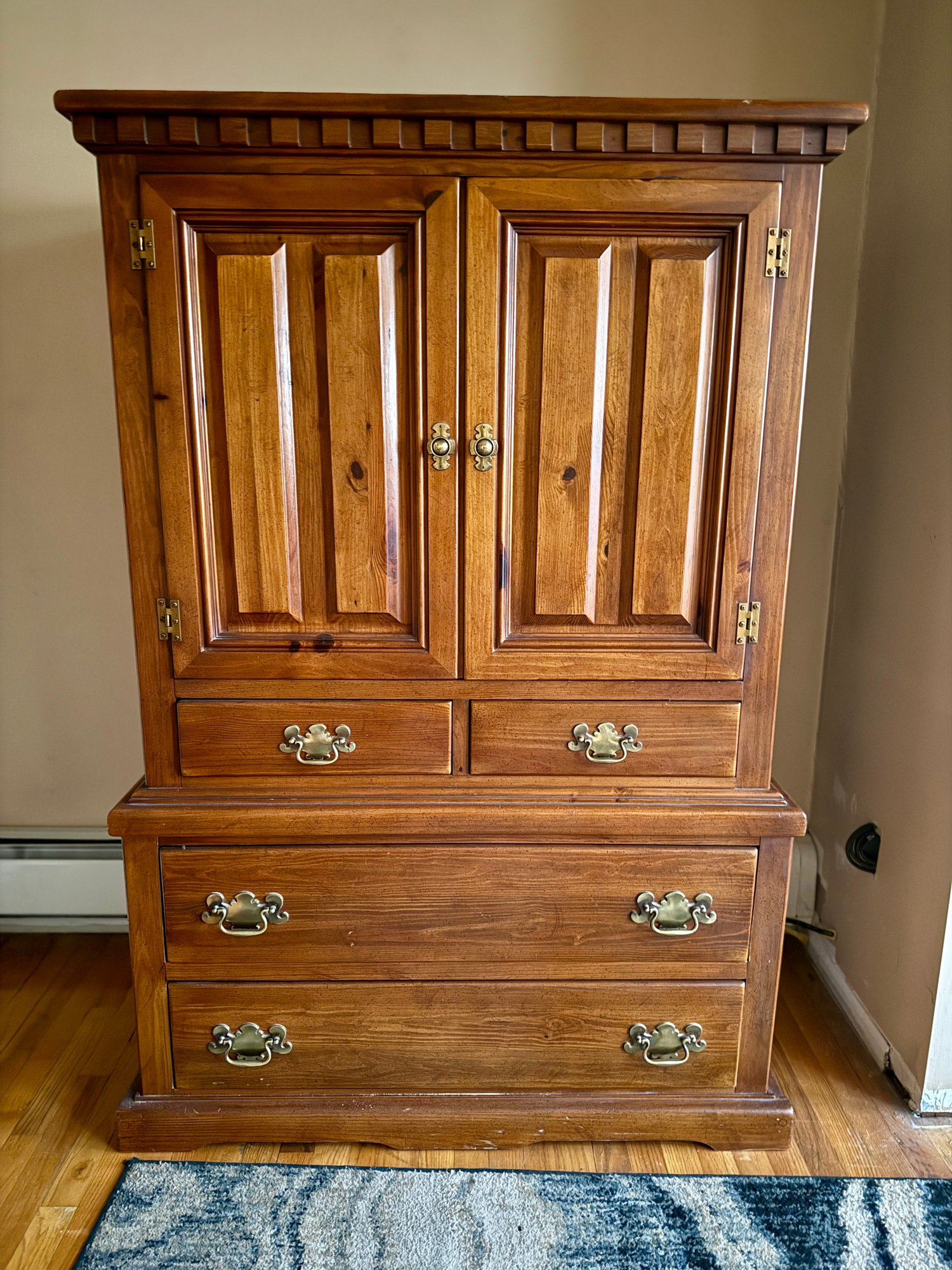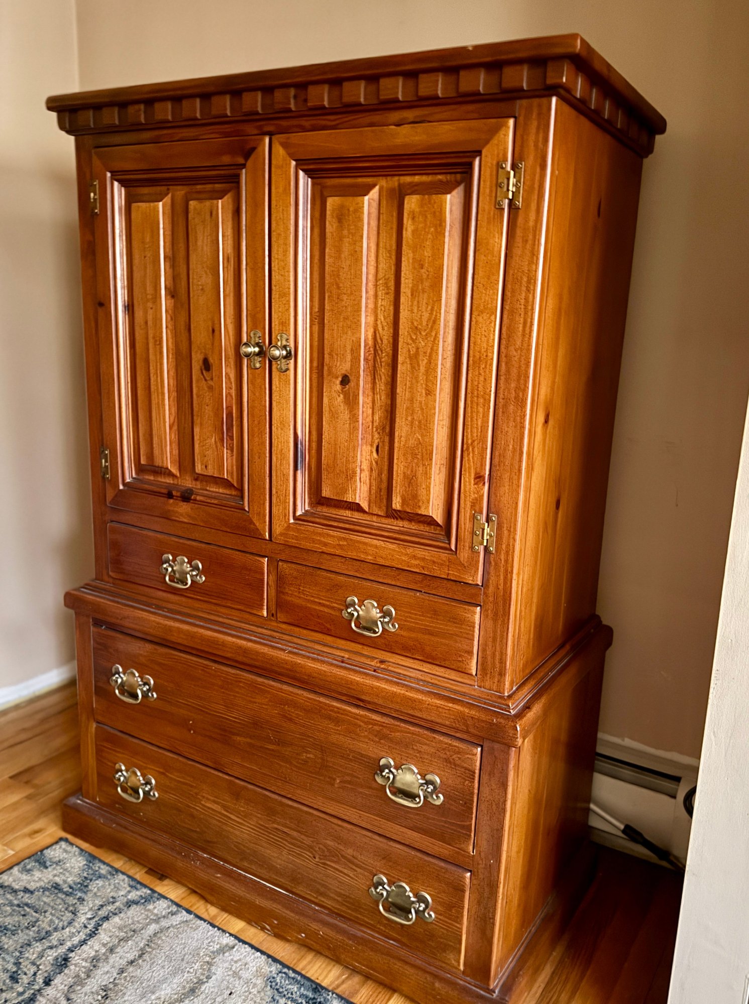 (UPBR) VINTAGE COLONIAL PINE ARMOIRE DRESSER -SOLID WOOD