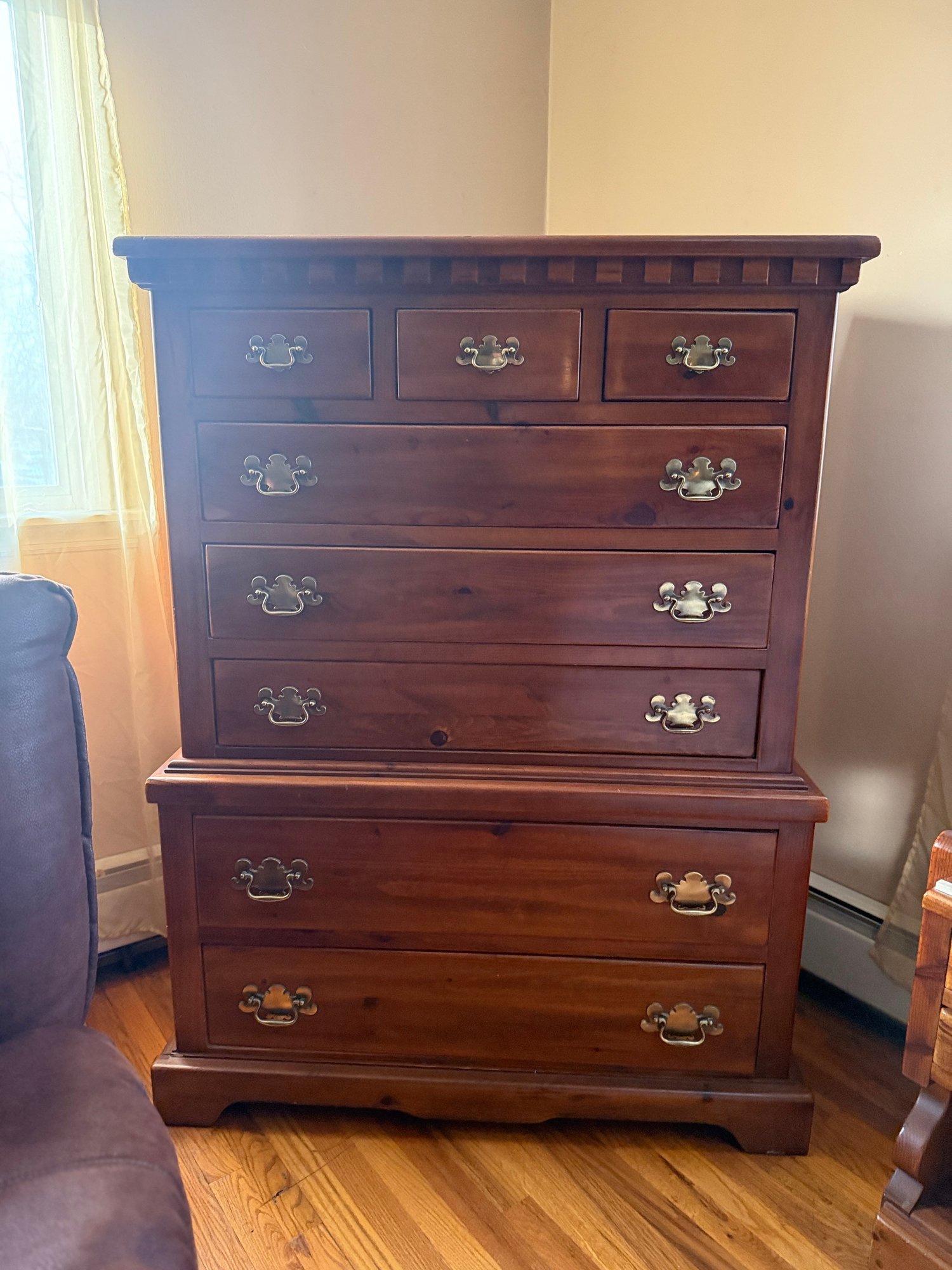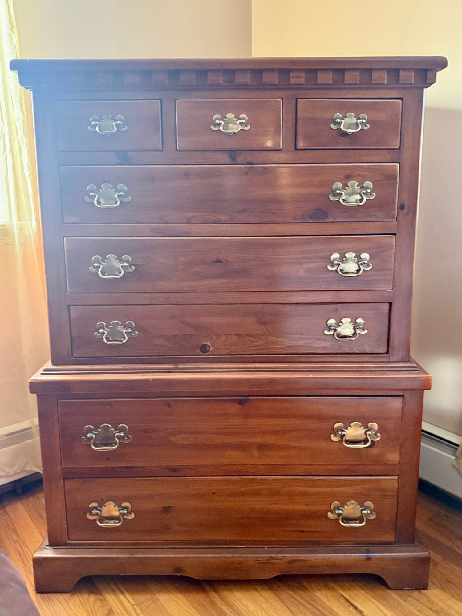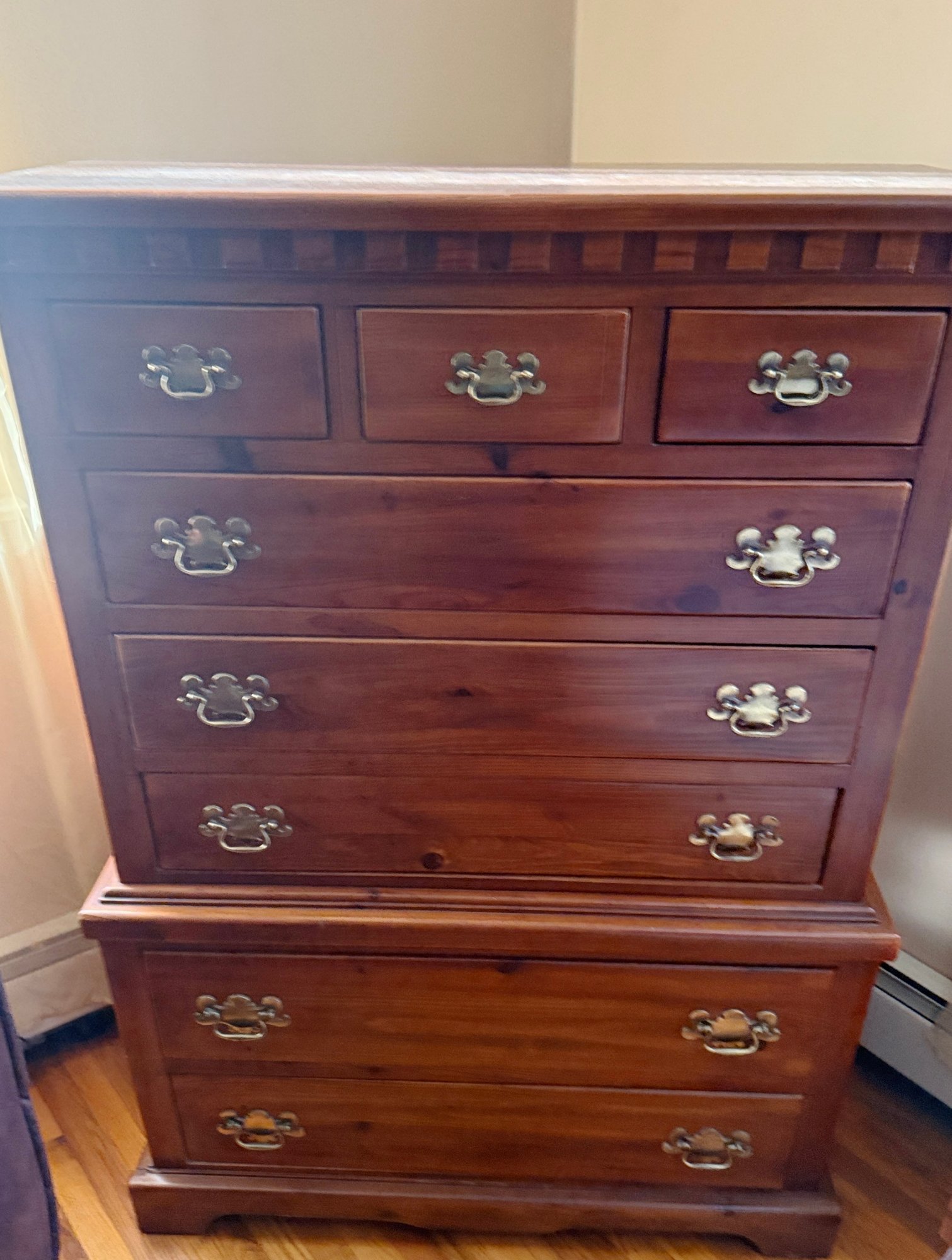 (UPBR) VINTAGE EIGHT DRAWER COLONIAL PINE SOLID WOOD GENTLEMAN'S CHEST -38" BY 57"