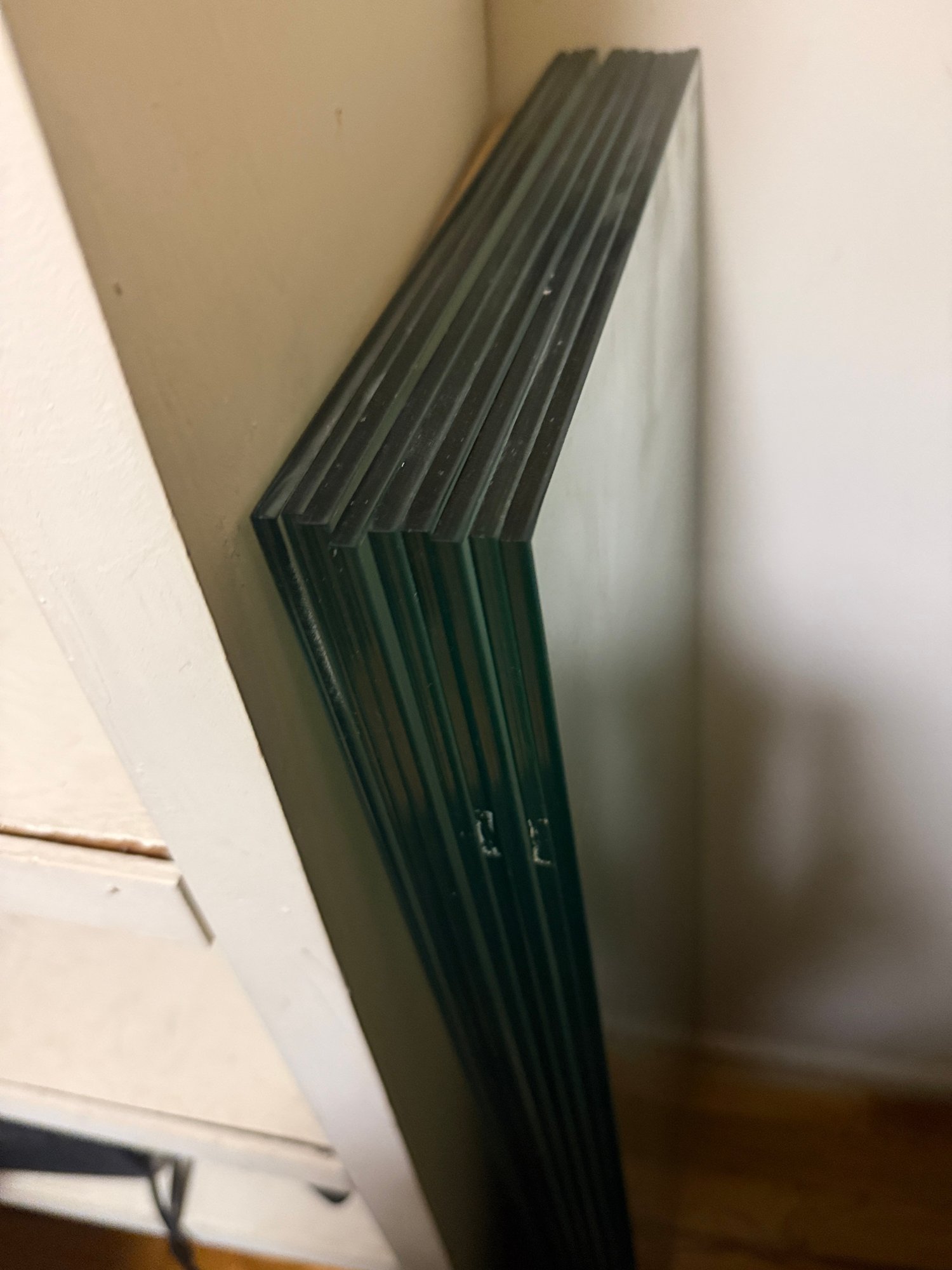 (UPBR) VINTAGE GLASS FRONT DISPLAY CABINET WITH EIGHT GLASS SHELVES- APPROX: 76" BY 44"