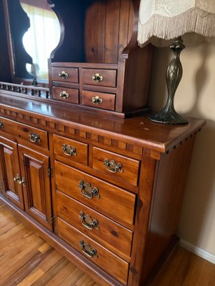 (UPBR) VINTAGE NINE DRAWER COLONIAL PINE DRESSER WITH 2 CABINETS & HUTCH SOLID WOOD