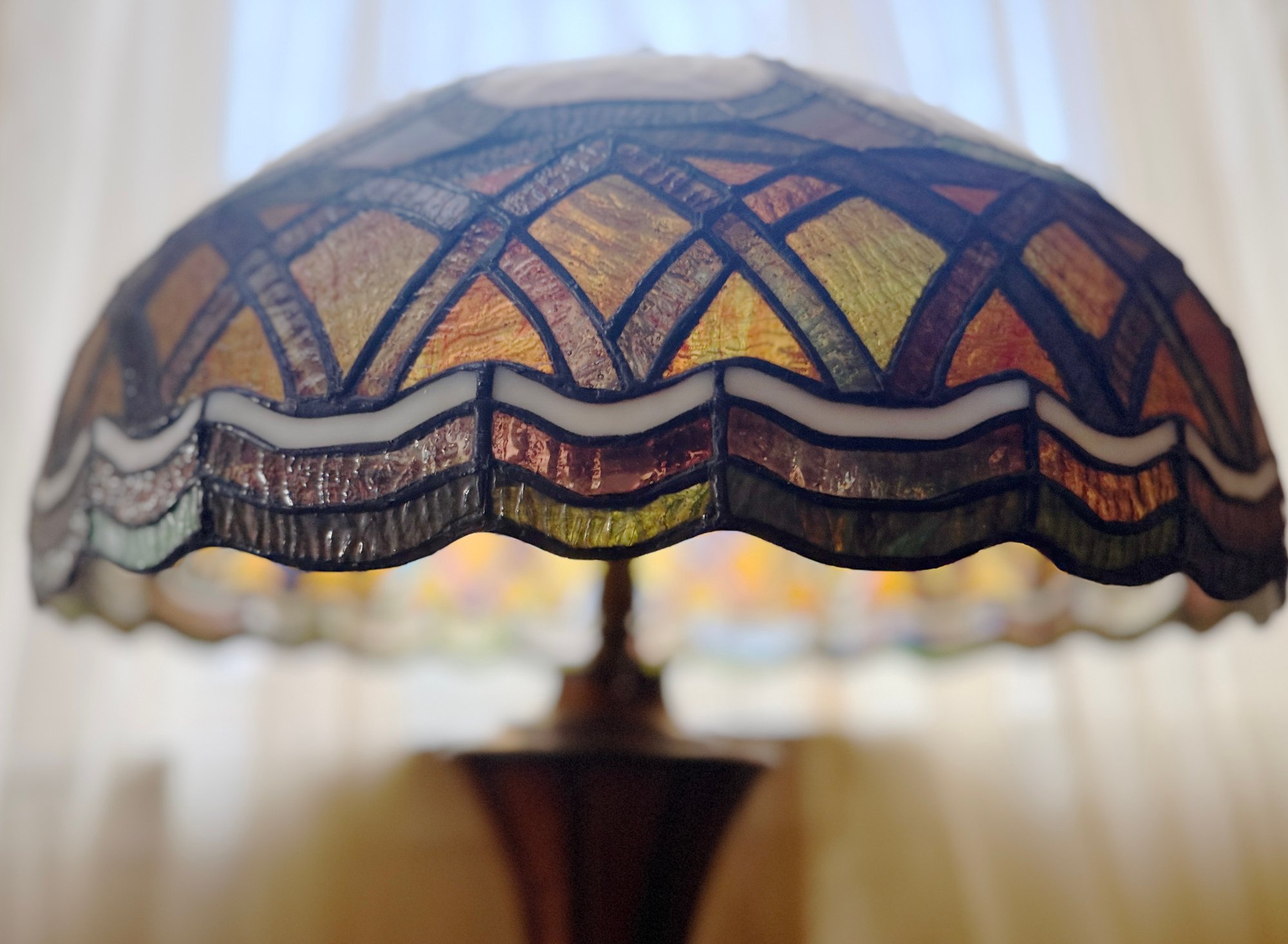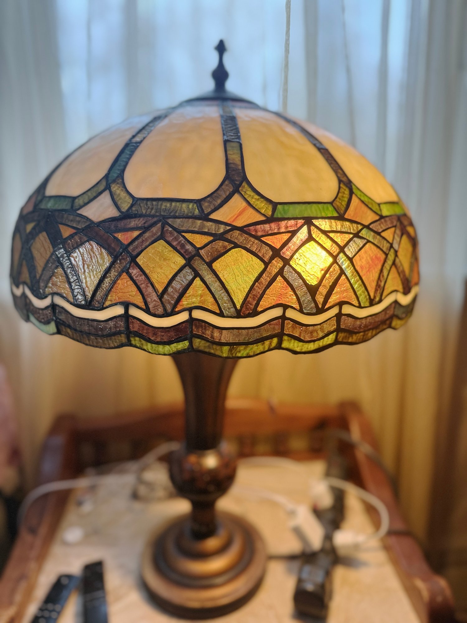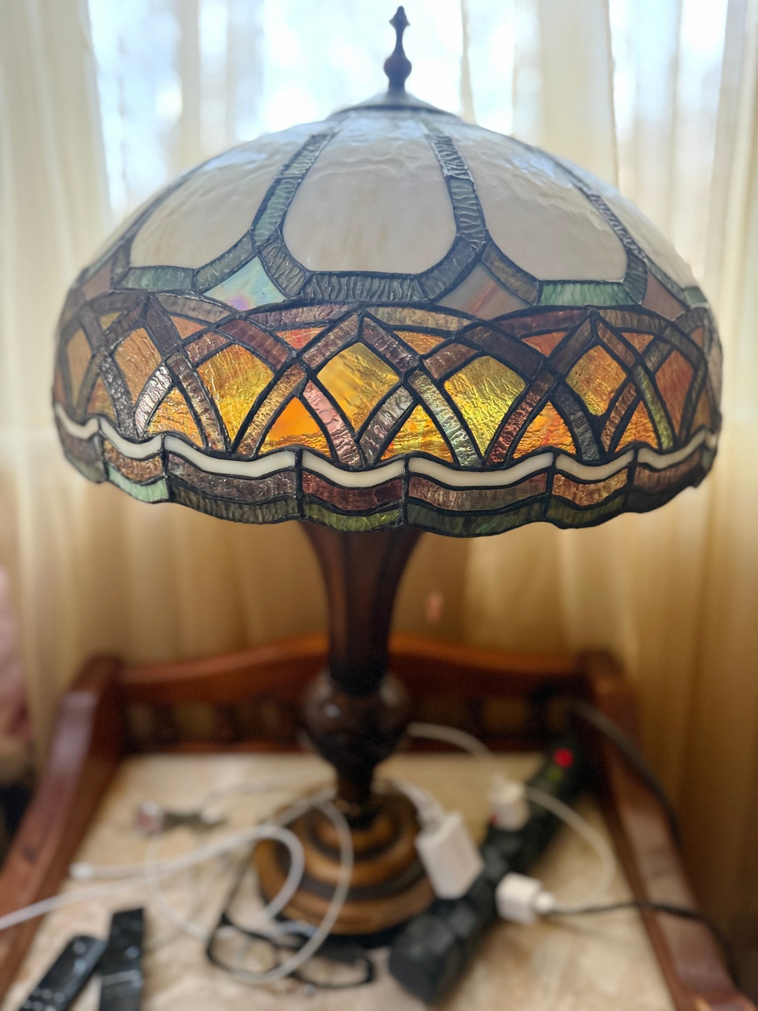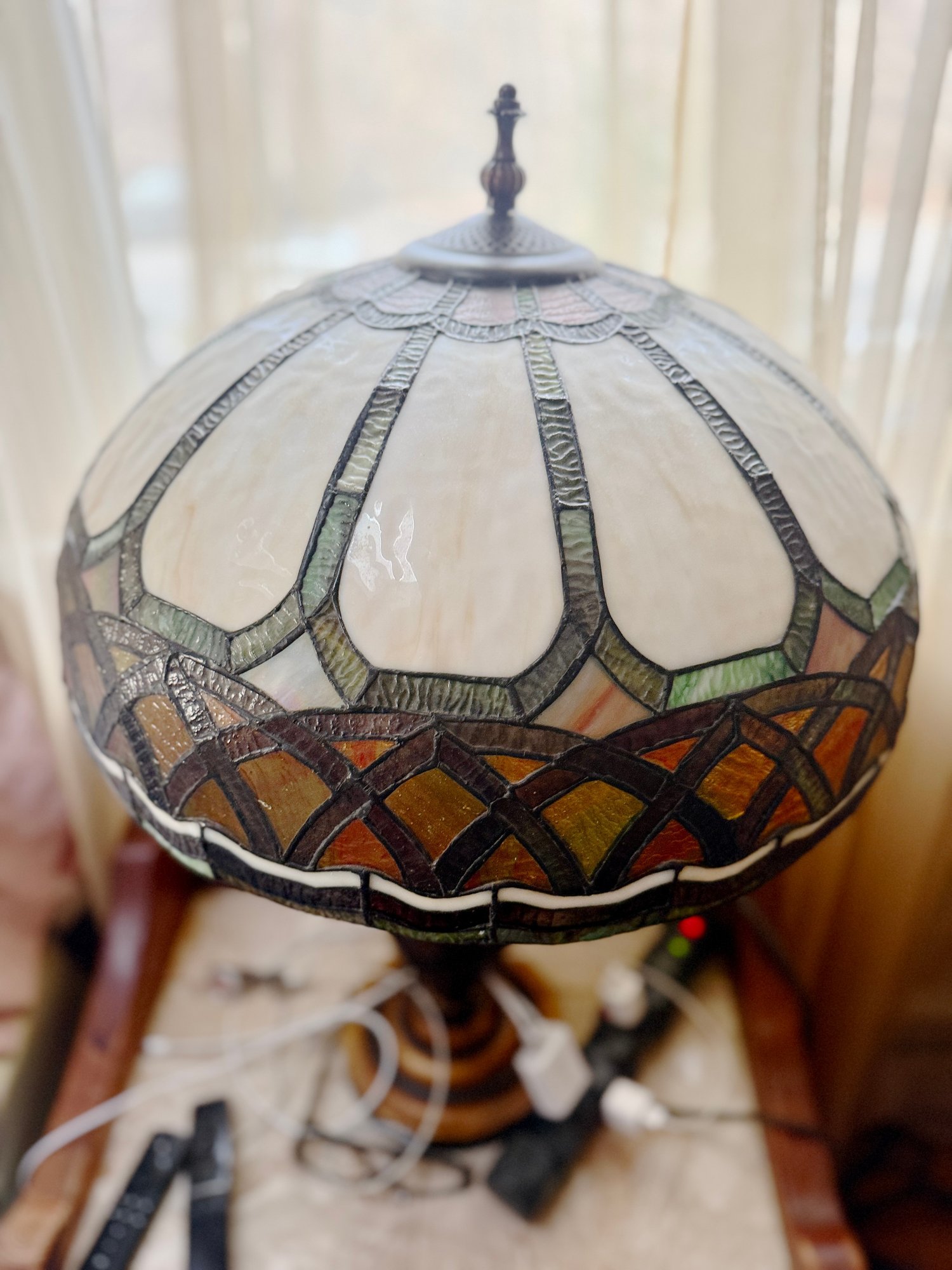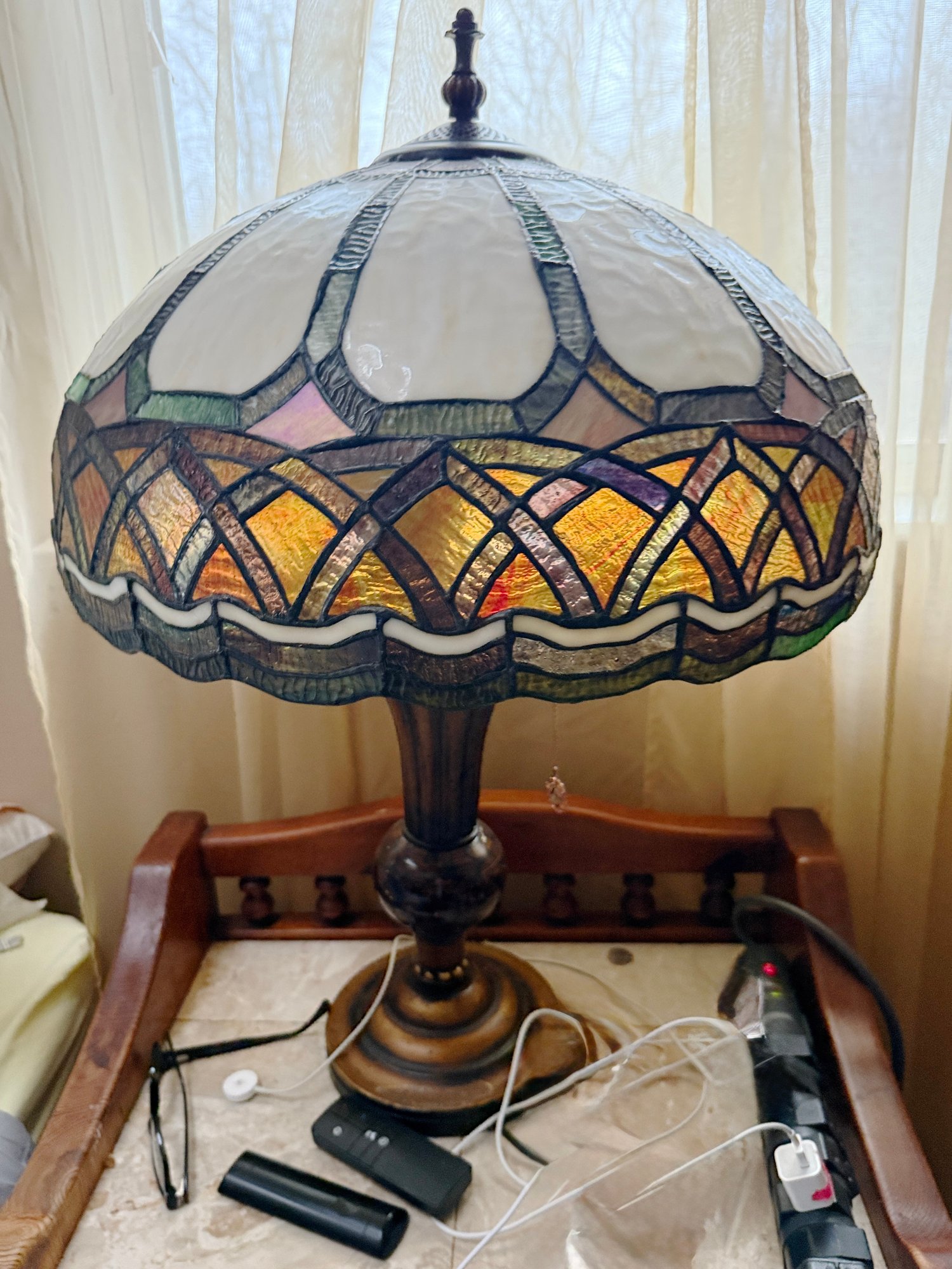 (UPBR) VINTAGE STAINED GLASS TABLE LAMP TIFFANY STYLE, WORKING -30"