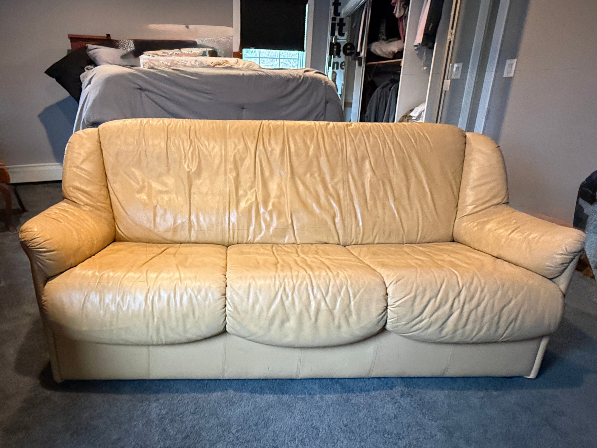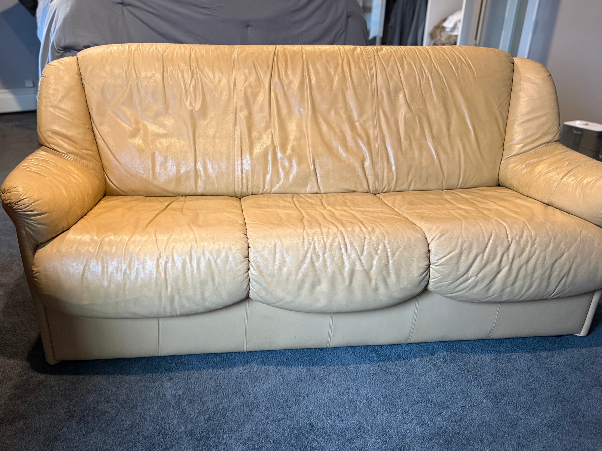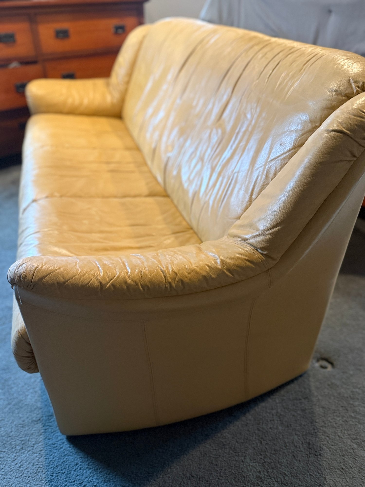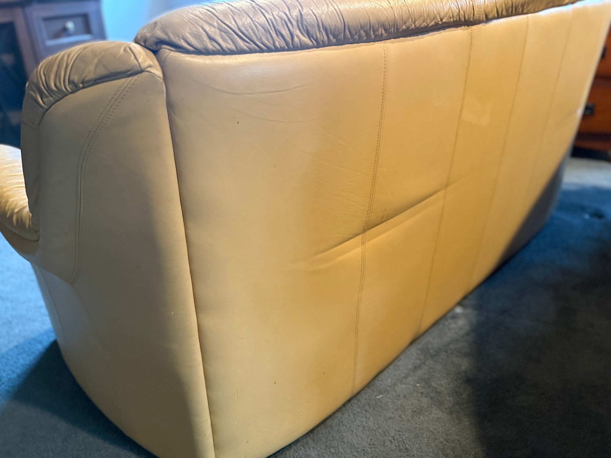 (UPBR) VINTAGE YELLOW LEATHER THREE SEAT SOFA - 72" BY 33" BY 39"