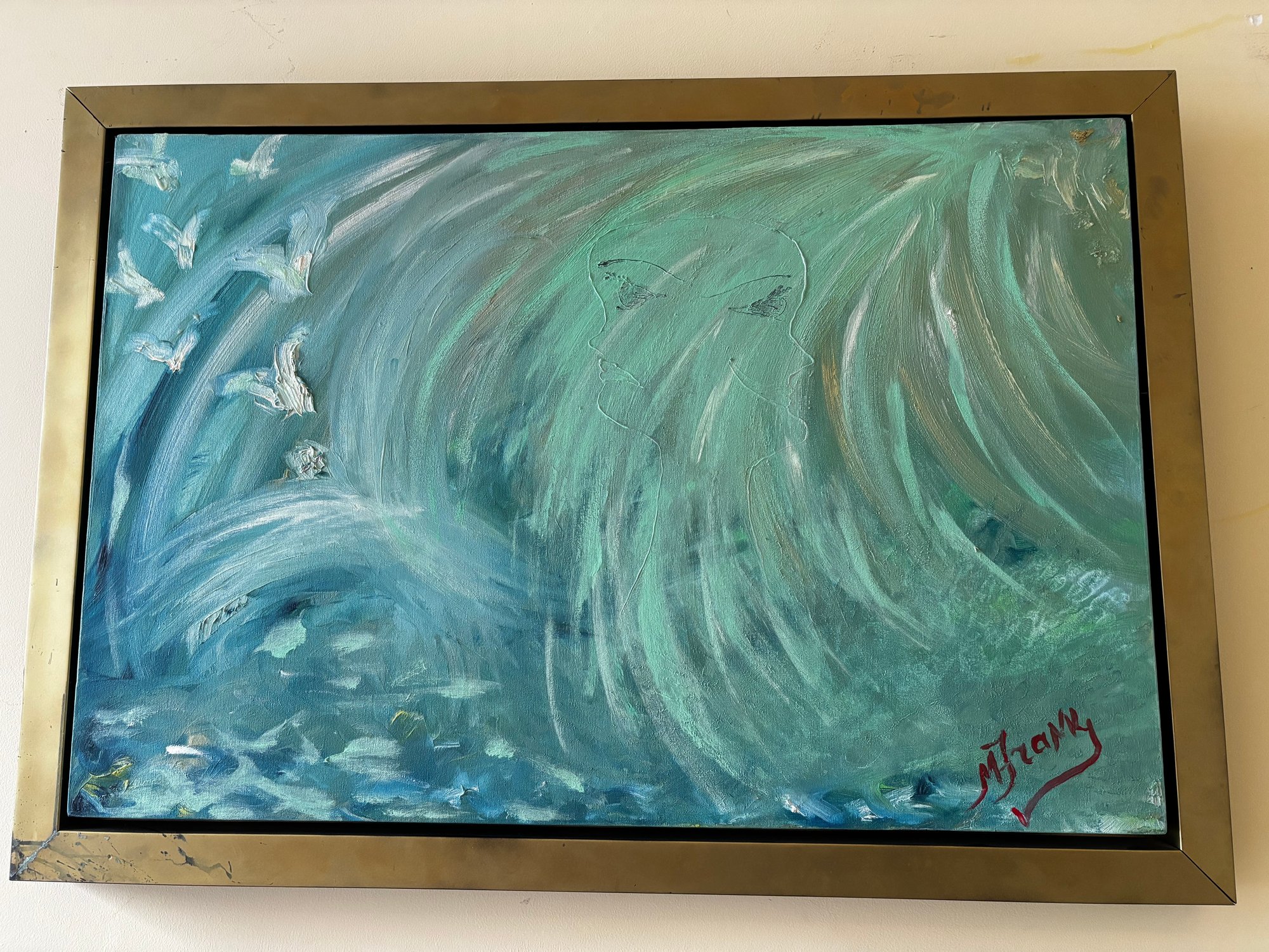 (UpHall) FRAMED ORIGINAL OIL ABSTRACT PAINTING ON CANVAS - 40" BY 28" - PICK UP ONLY