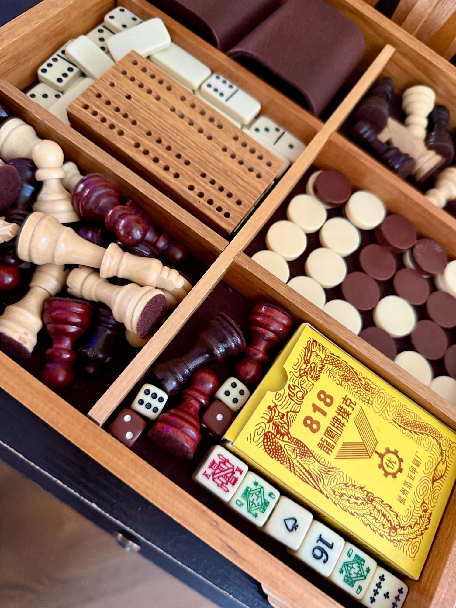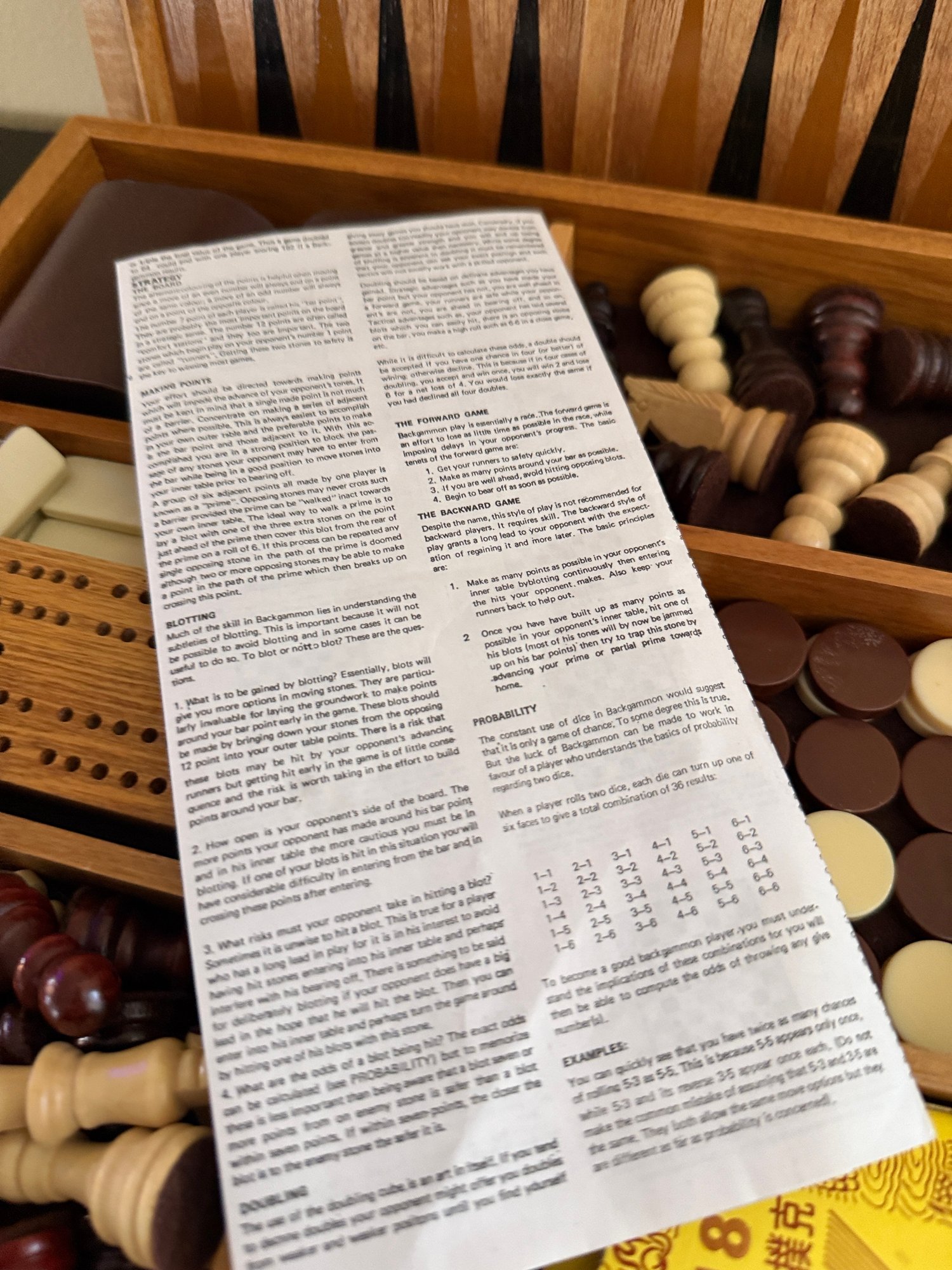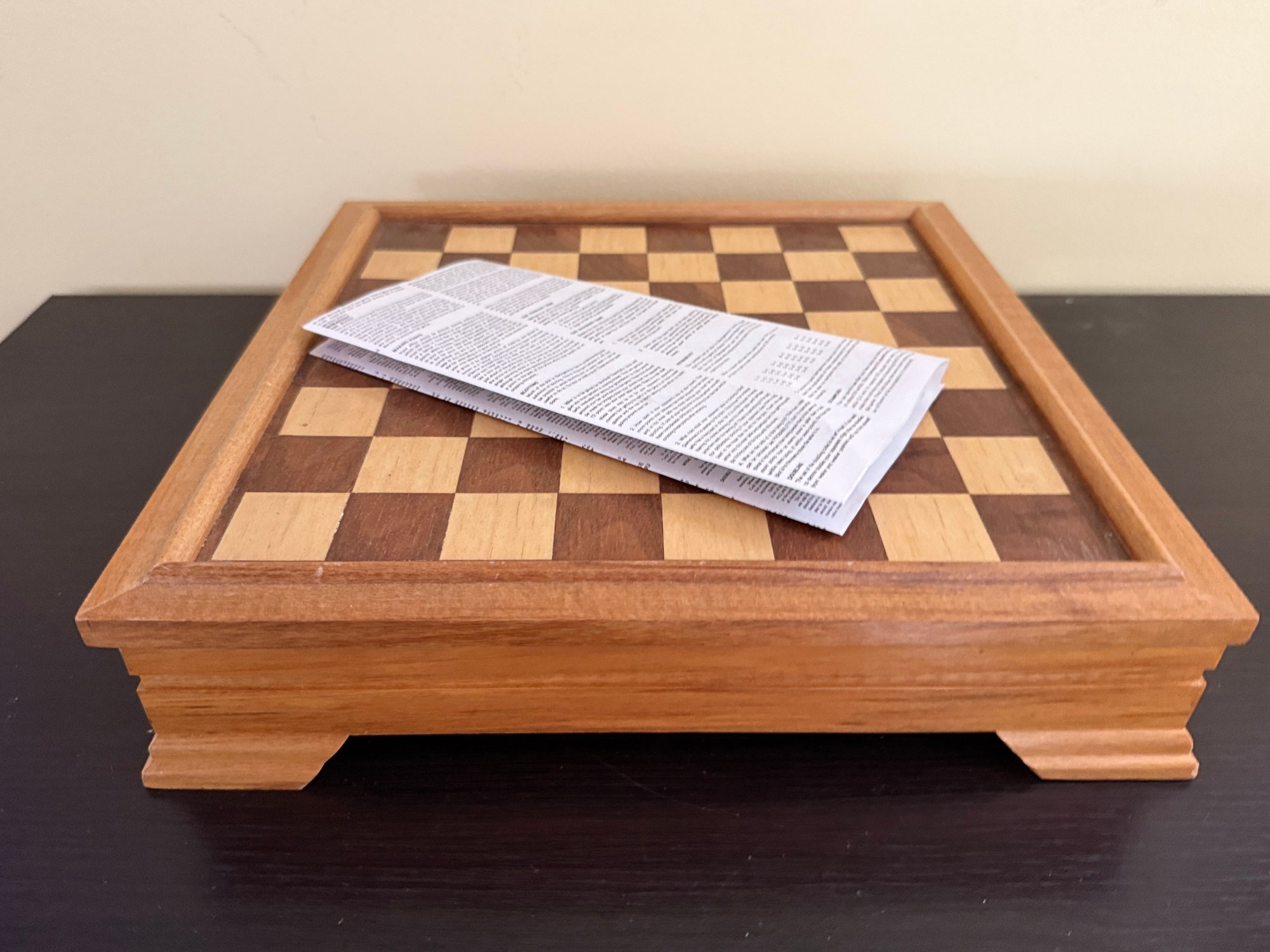 (P) WOOD CHESS / BACKGAMMON / CHECKERS SET WITH STORAGE FOR PIECES -15"
