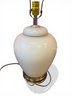 Awesome white lamp with floral design from the 70s/80s. No lampshade. Works. Matches the pink lamp (available as separate auction item) -- makes a slightly eclectic pair!