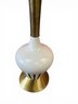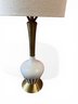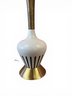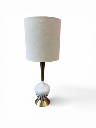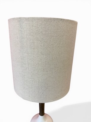 This cute, petite table lamp still has the original lampshade in good vintage condition! Works. Very cool little decor piece. Mid century modern.