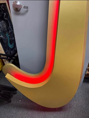 Vintage 5-feet long Nike Swoosh advertising/store display signs. Gold with red LED lighting.