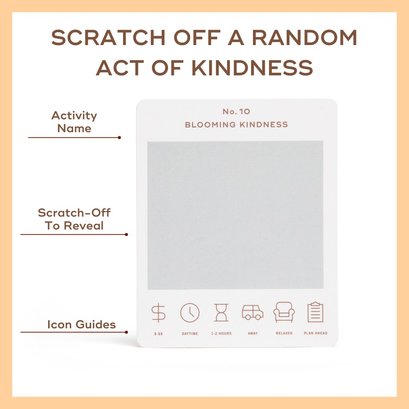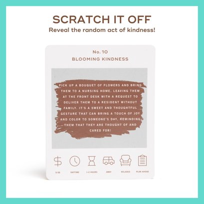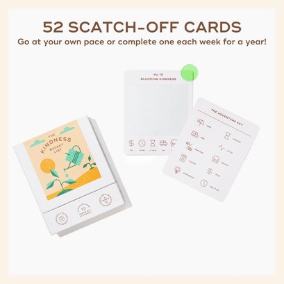 Embark on a journey of compassion and connection with "The Kindness Bucket List"! This beautifully crafted box is your guide to spreading joy and warmth in the world around you. It contains 52 unique scratch-off cards, each with an inspiring act of kindness. From small gestures like writing a heartfelt note to a mail carrier, to larger things like dropping off flowers at a nursing home for someone who doesn’t have family, each card offers a new opportunity to make a positive impact. Let's spread kindness together!