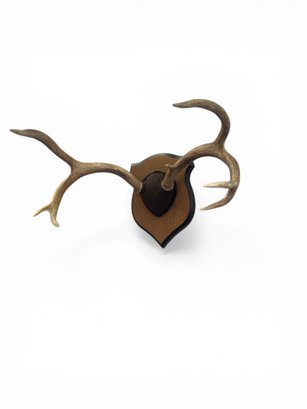 Notes: Good overall vintage condition with natural wear consistent with age. Antlers are secure; plaque shows minor surface wear.