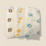 Super sweet swaddle blankets from Aden & Anais. Lightweight muslin fabric, and a great size for easy swaddling. Versatile, too — hang one over the stroller to dim the sunlight for a sleeping baby, or use them as a burp cloth in a pinch. Contains one monkey, one lion, and one giraffe design. Good condition, pre-loved.