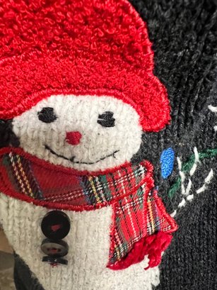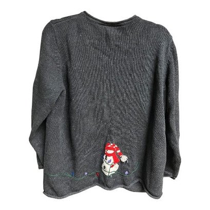 Crazy Horse by Liz Claiborne brand holiday cardigan sweater. Zips up the front, and has little pearl embellishments (snowflakes!). Three dimensional snowmen with scarves and Christmas lights on both front and back. No tags, but fits L/XL. So fun!