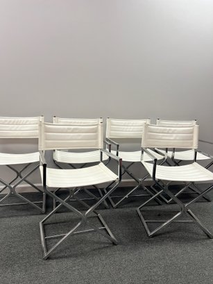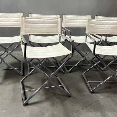 Featuring sleek chrome frames with white leather sling seats and backs, these chairs strike that perfect balance between utilitarian and refined.