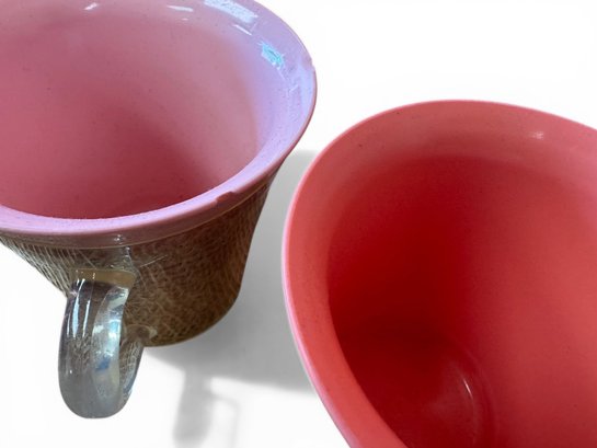 Notes: 5 of the 6 are in good, pre-owned vintage condition. One mug (pink) has a chip as shown.