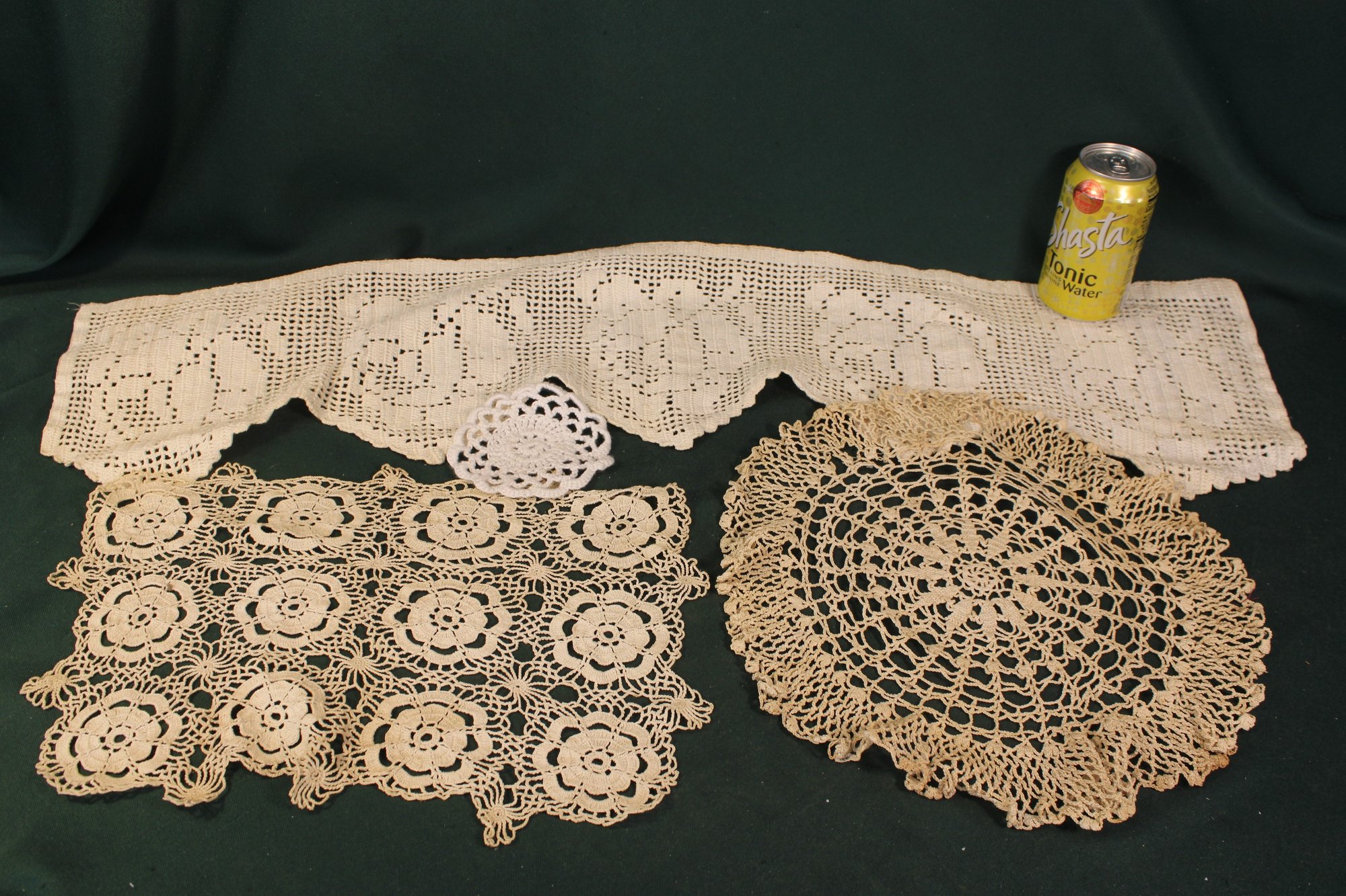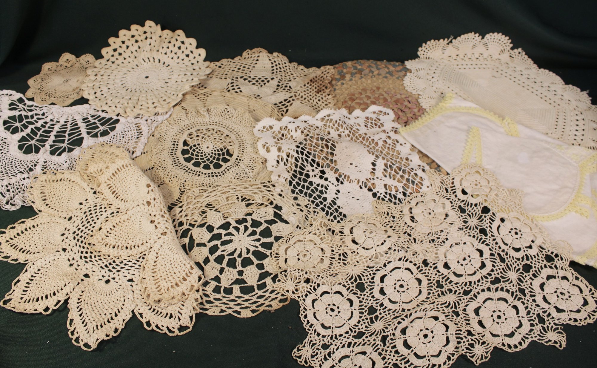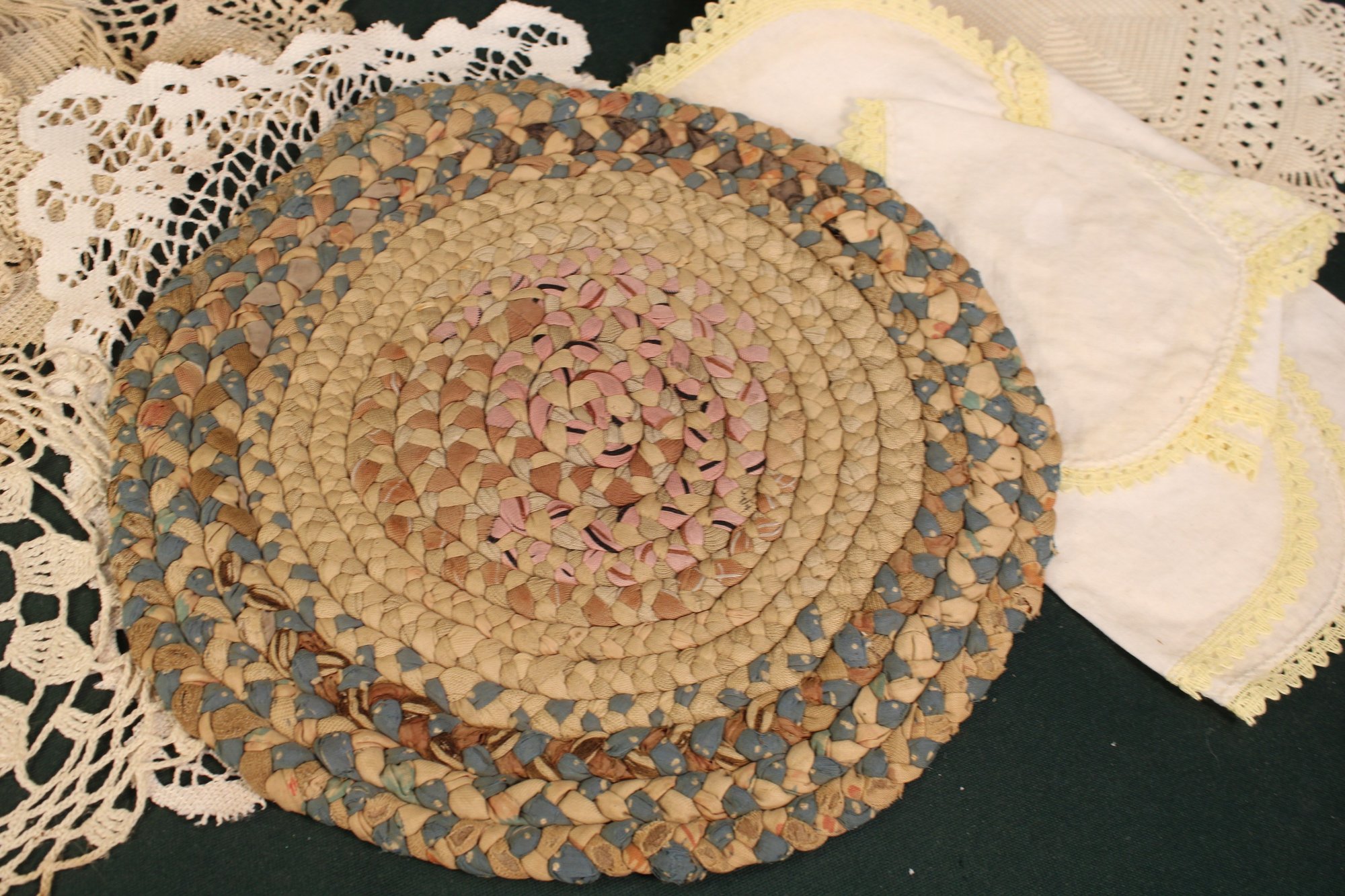 1876 Commemorative Textile & Doilies, Braided Seat Pad, Linens (286)