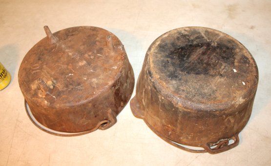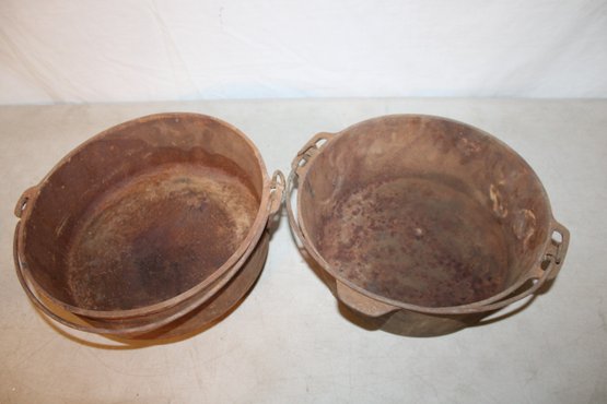 2 Cast Iron Handled Kettles, One W/3 Feet #10, 10"D (310)