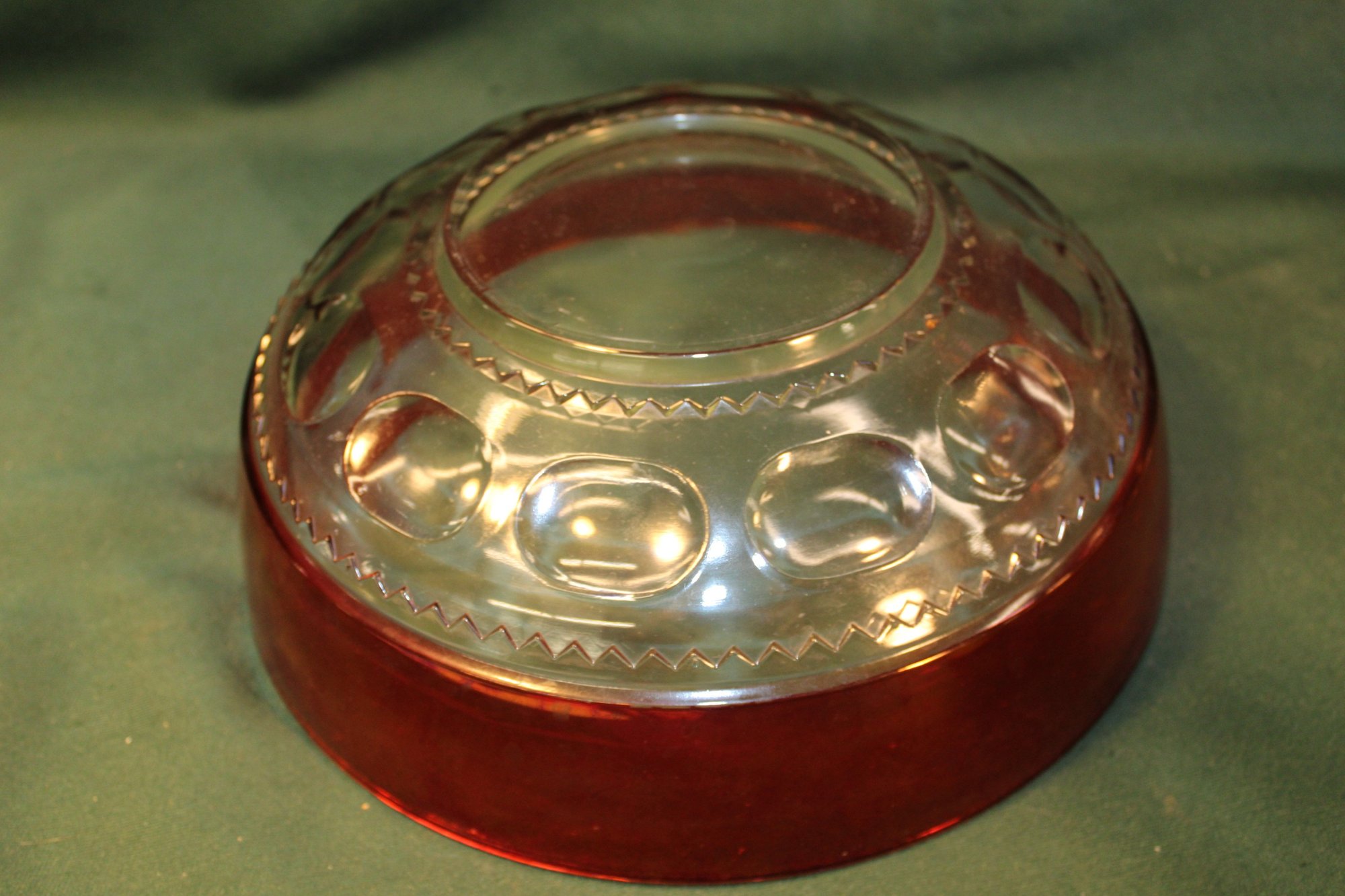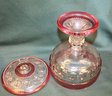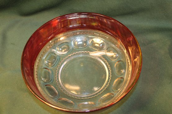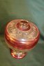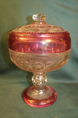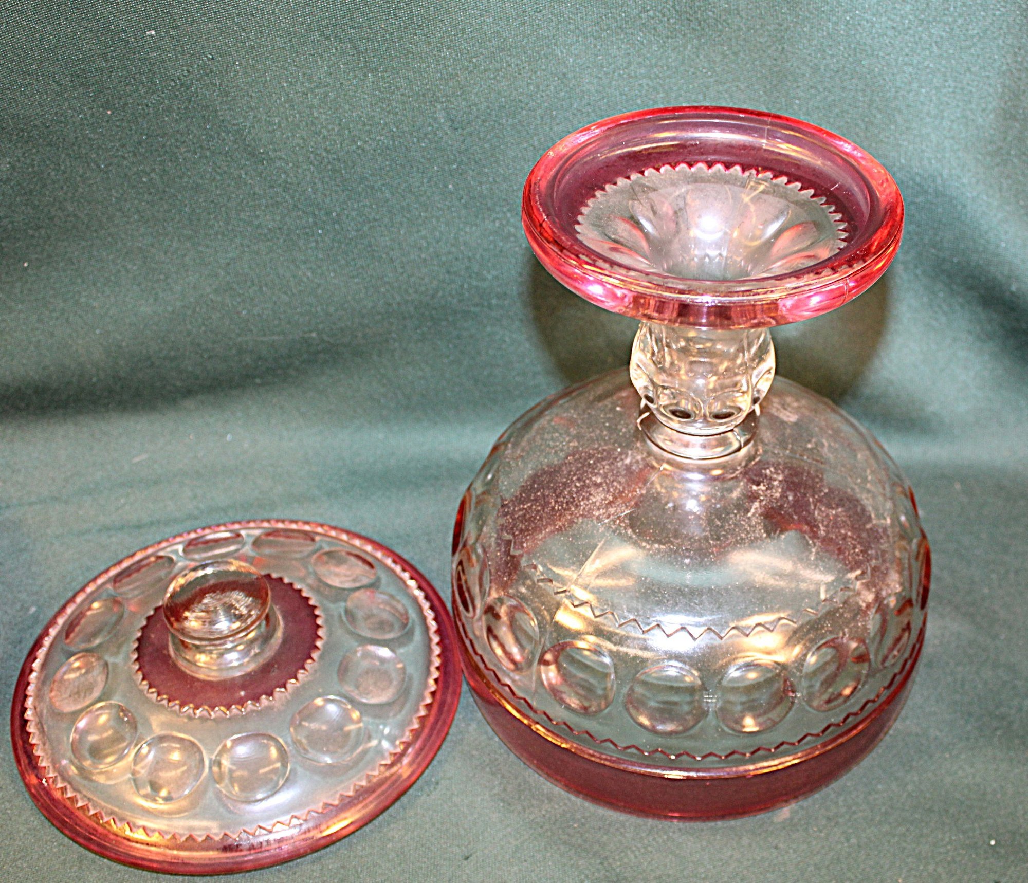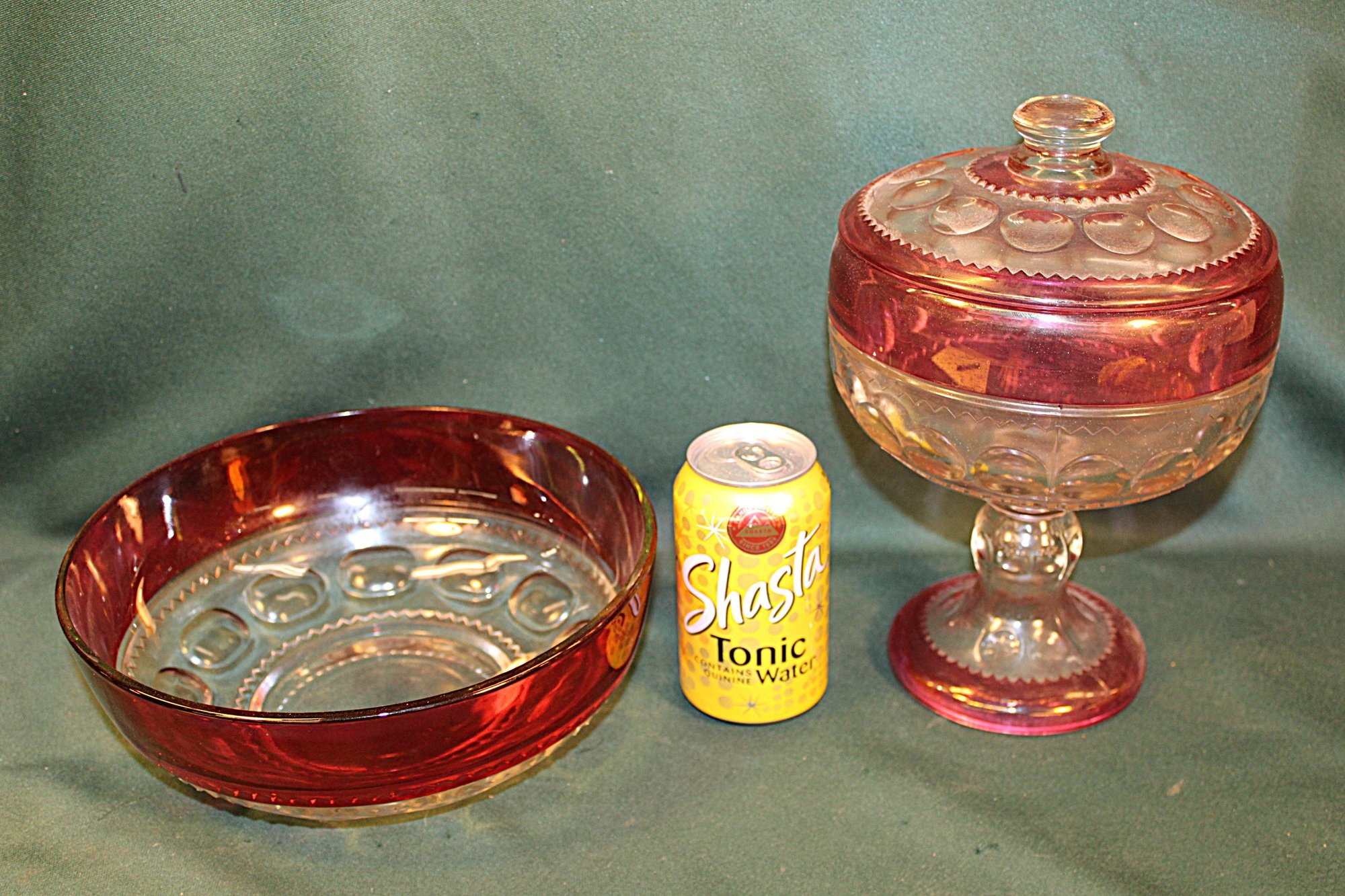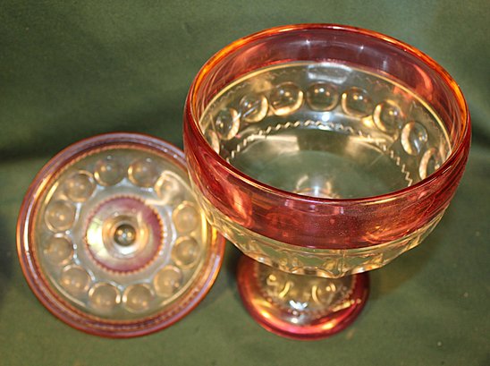 2 Large Pieces Kings Crown Thumbprint Glass - 10" Red Flash Bowl & 10" Lidded Pedestal Cranberry Compote (13)