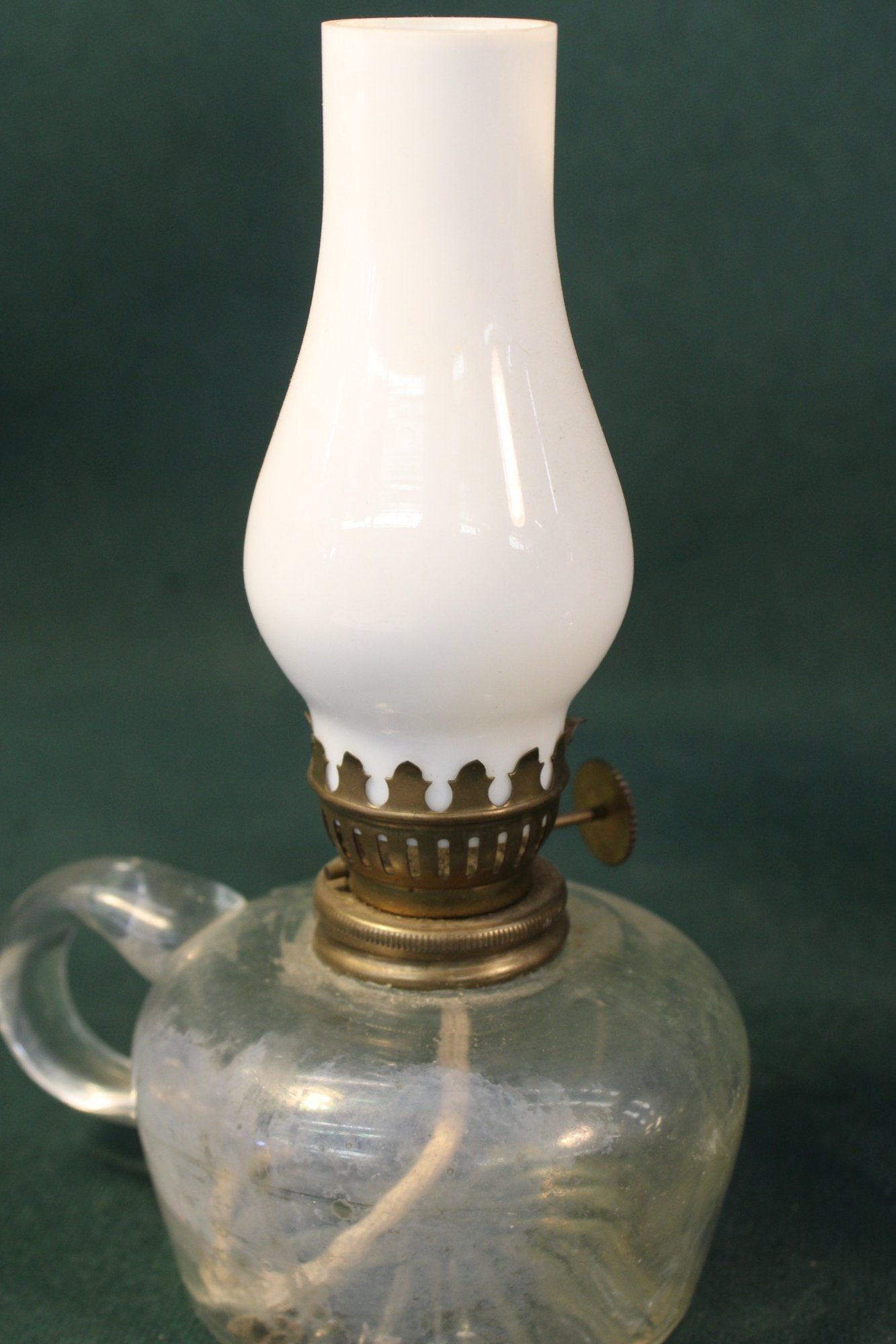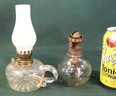 2 Miniature Antique Glass Oil Lamps, 5"&7"H (21)