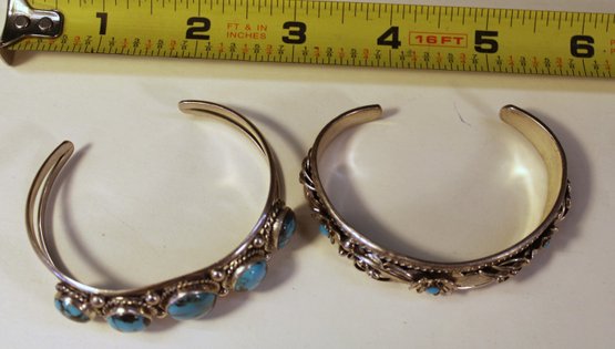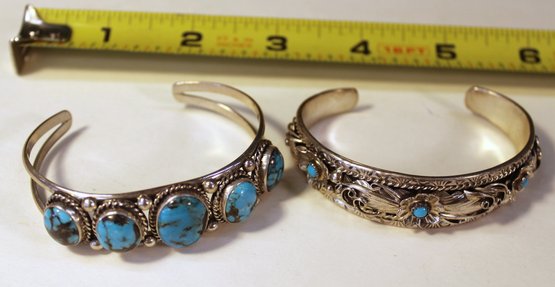 2 Native American Sterling & Turquoise Bracelets, Artist Signed RB & BJ, 1.63 OZT (215)